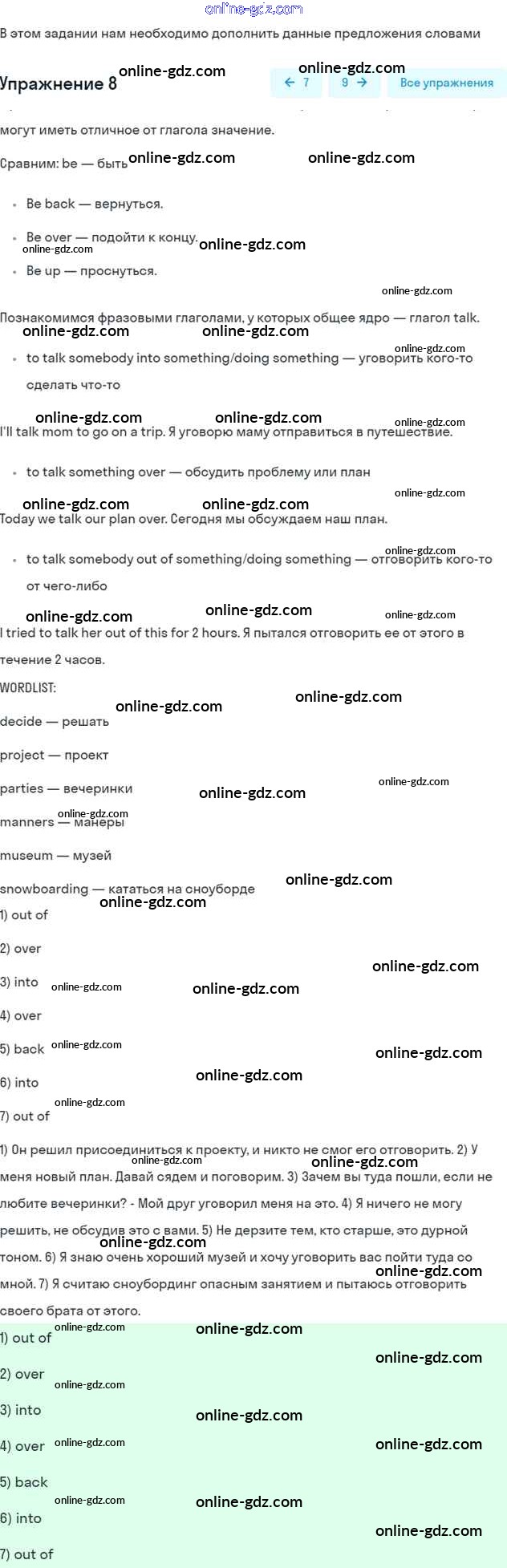Готовые домашние задания по Английскому языку за 7 класс Учебник Афанасьева, Михеева Rainbow 2019 - Step 8 UNIT 1. SCHOOLS AND SCHOOLING. 8