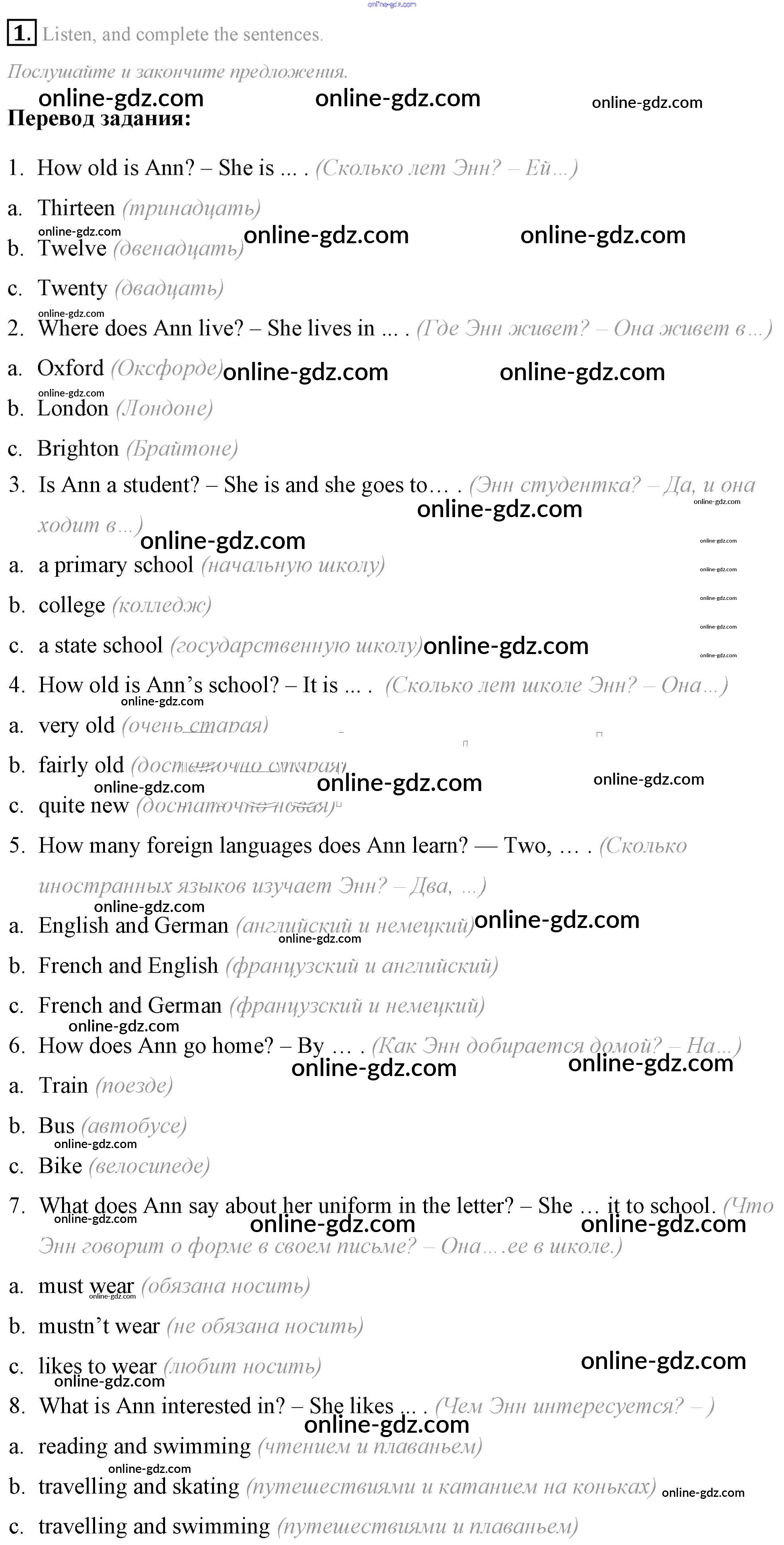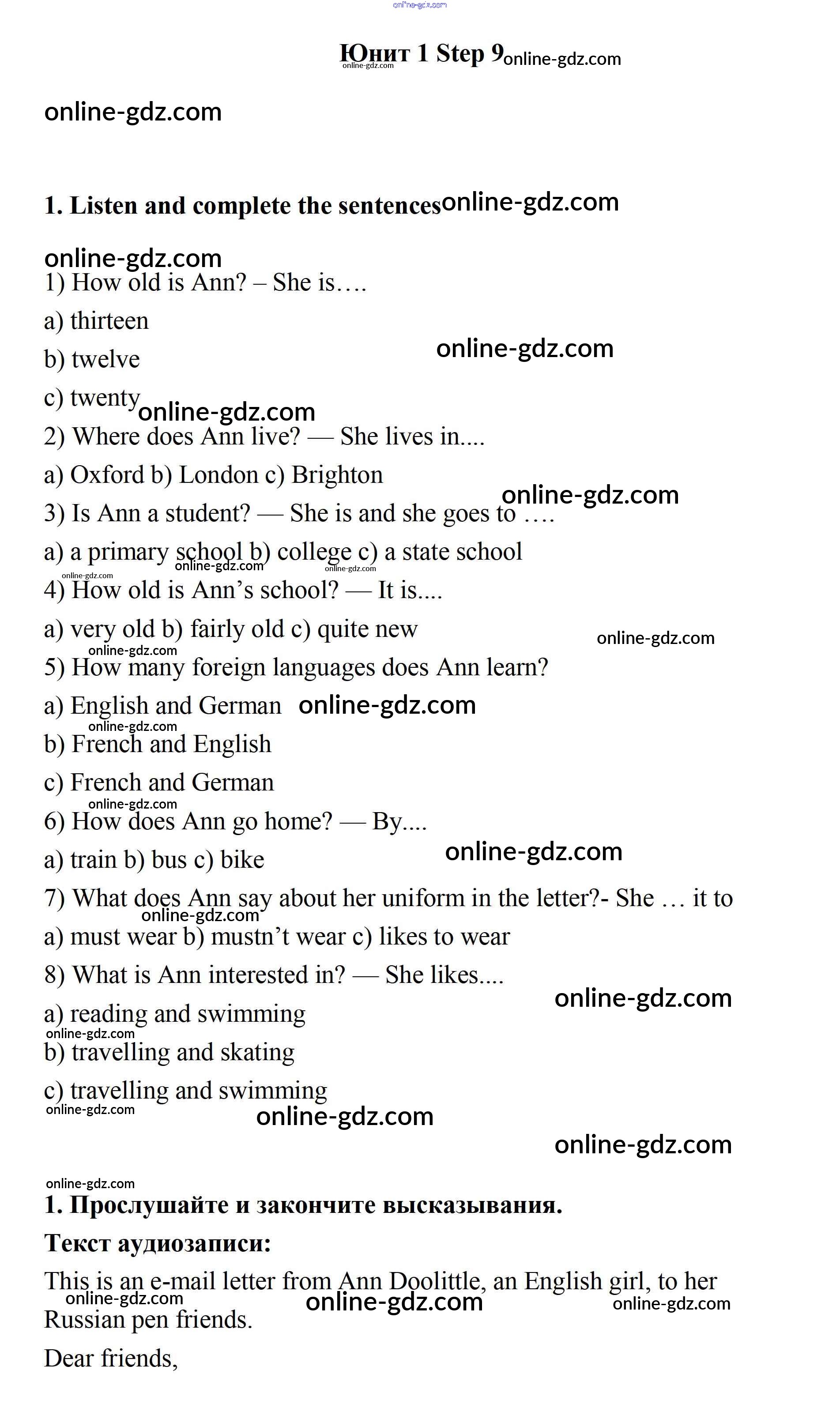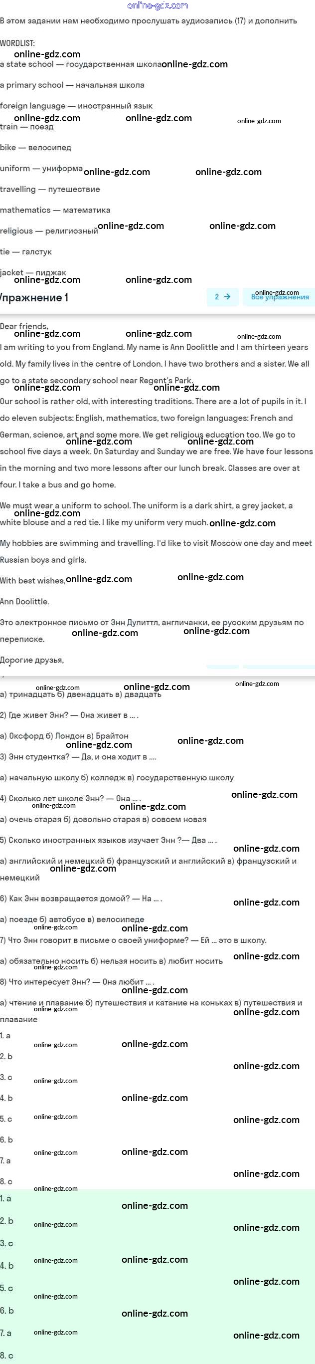 Готовые домашние задания по Английскому языку за 7 класс Учебник Афанасьева, Михеева Rainbow 2019 - Step 9 Consolidation Class: UNIT 1. SCHOOLS AND SCHOOLING. 1
