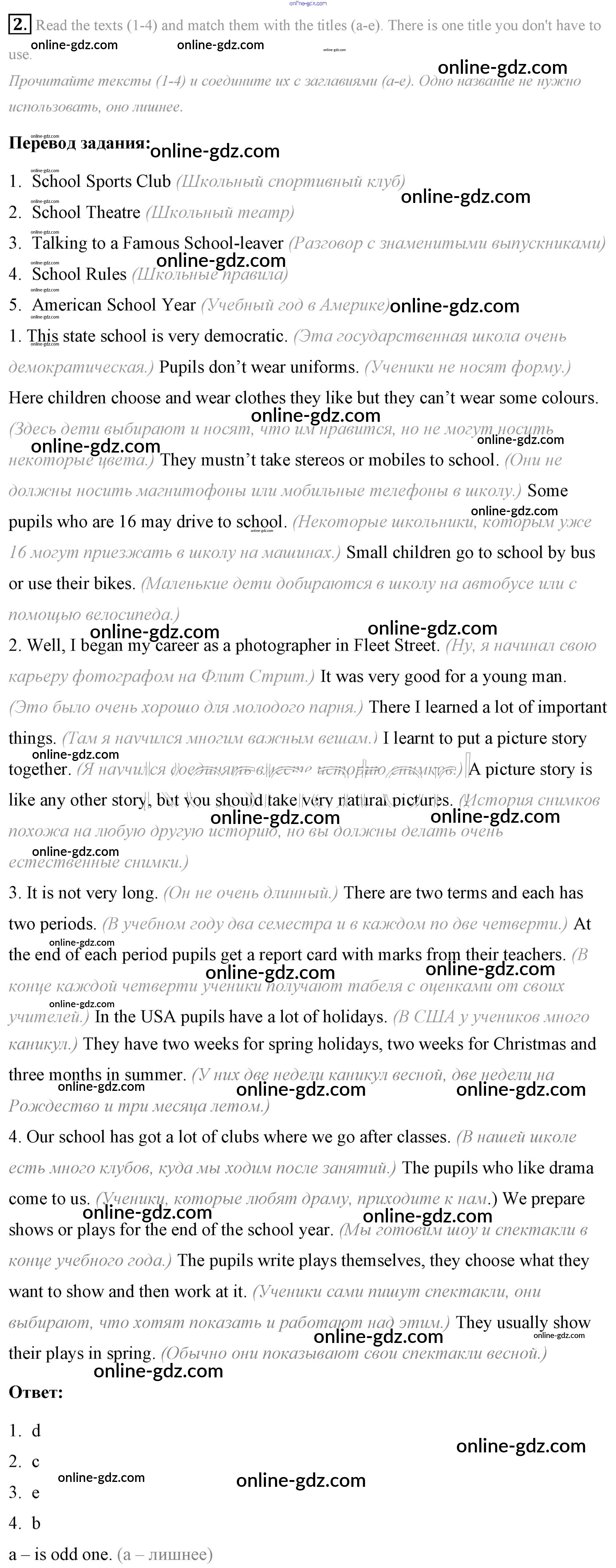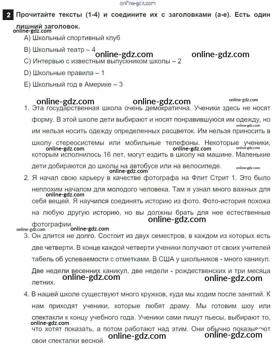 Готовые домашние задания по Английскому языку за 7 класс Учебник Афанасьева, Михеева Rainbow 2019 - Step 9 Consolidation Class: UNIT 1. SCHOOLS AND SCHOOLING. 2