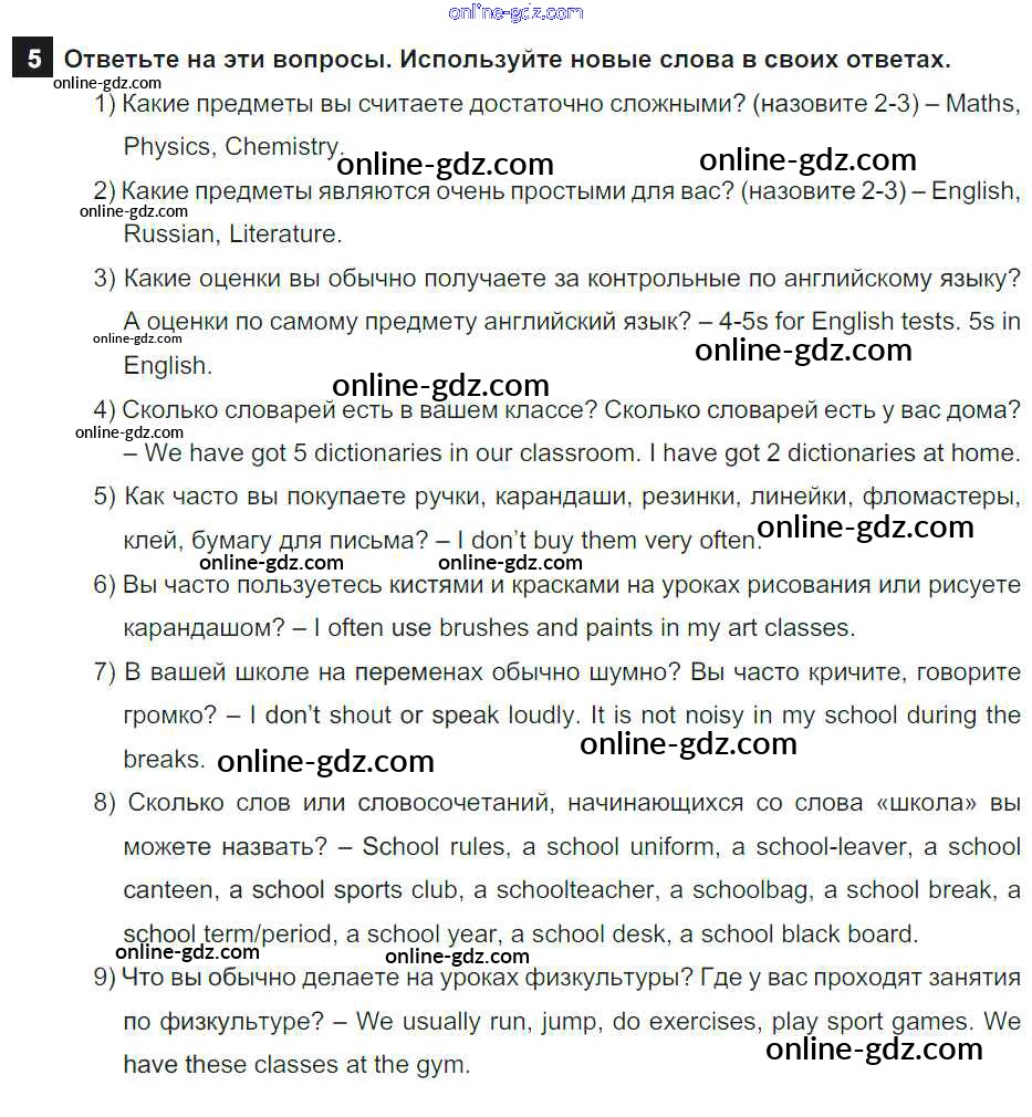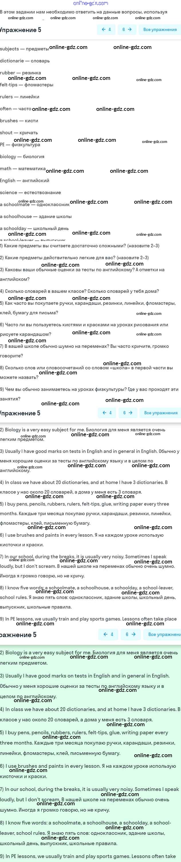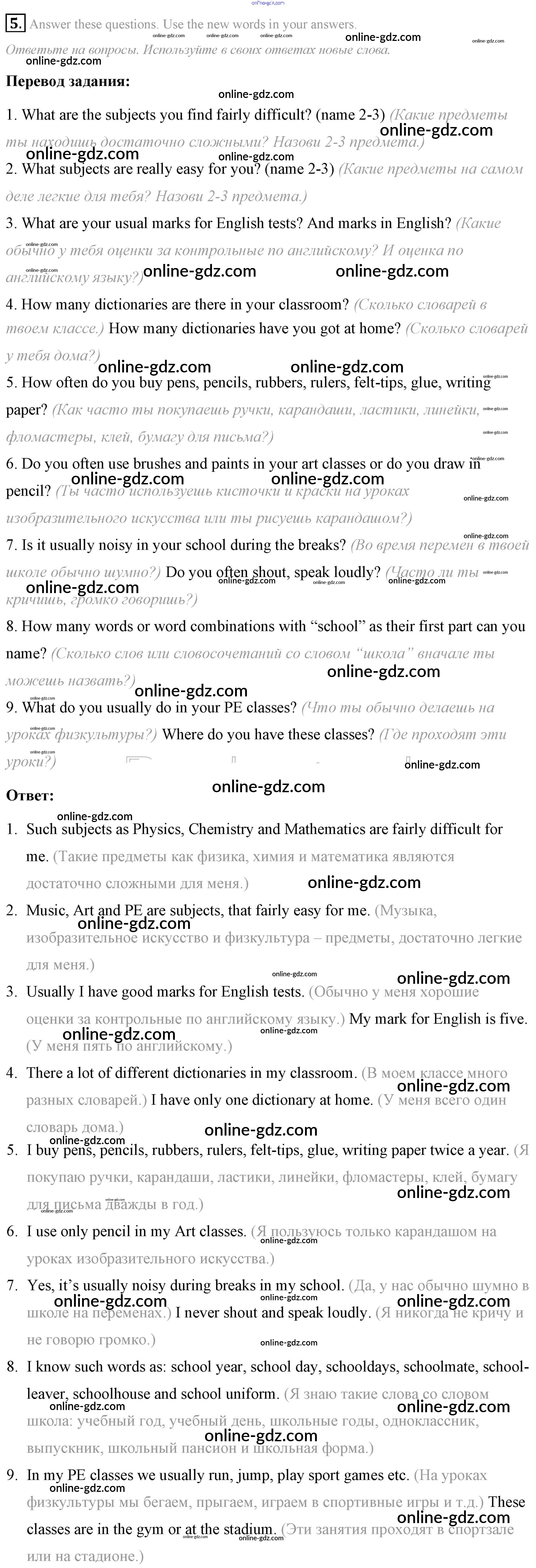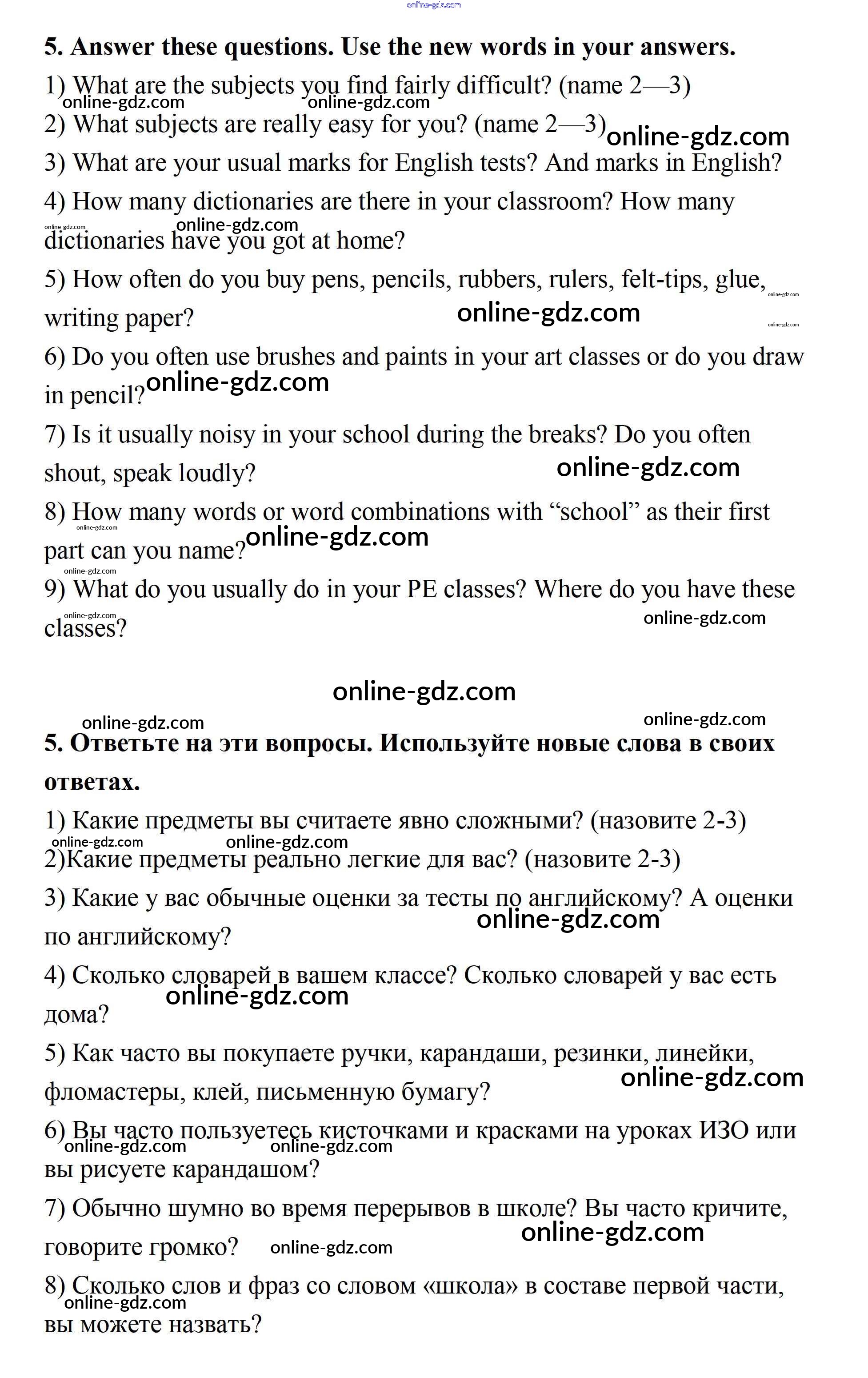 Готовые домашние задания по Английскому языку за 7 класс Учебник Афанасьева, Михеева Rainbow 2019 - Step 9 Consolidation Class: UNIT 1. SCHOOLS AND SCHOOLING. 5