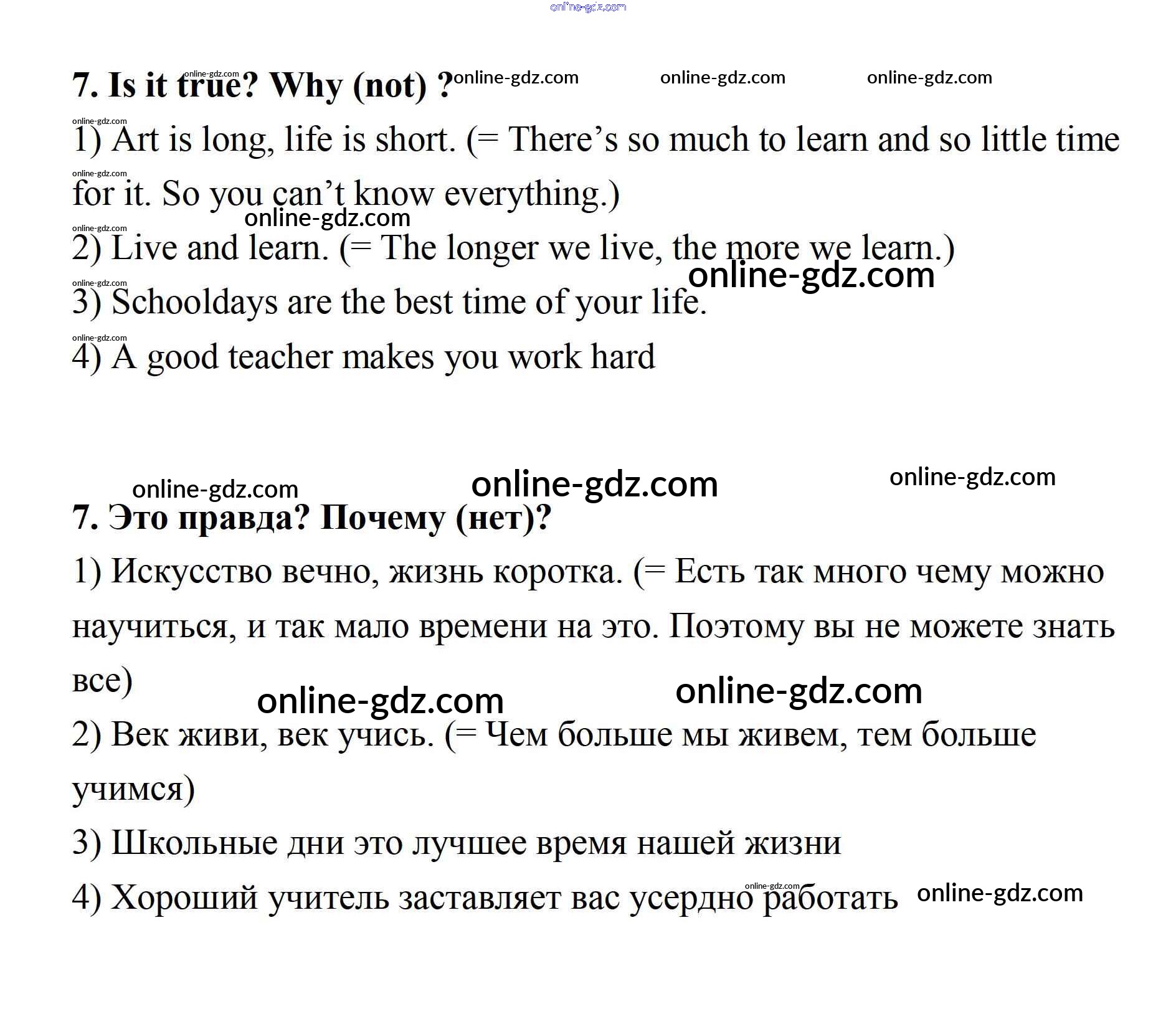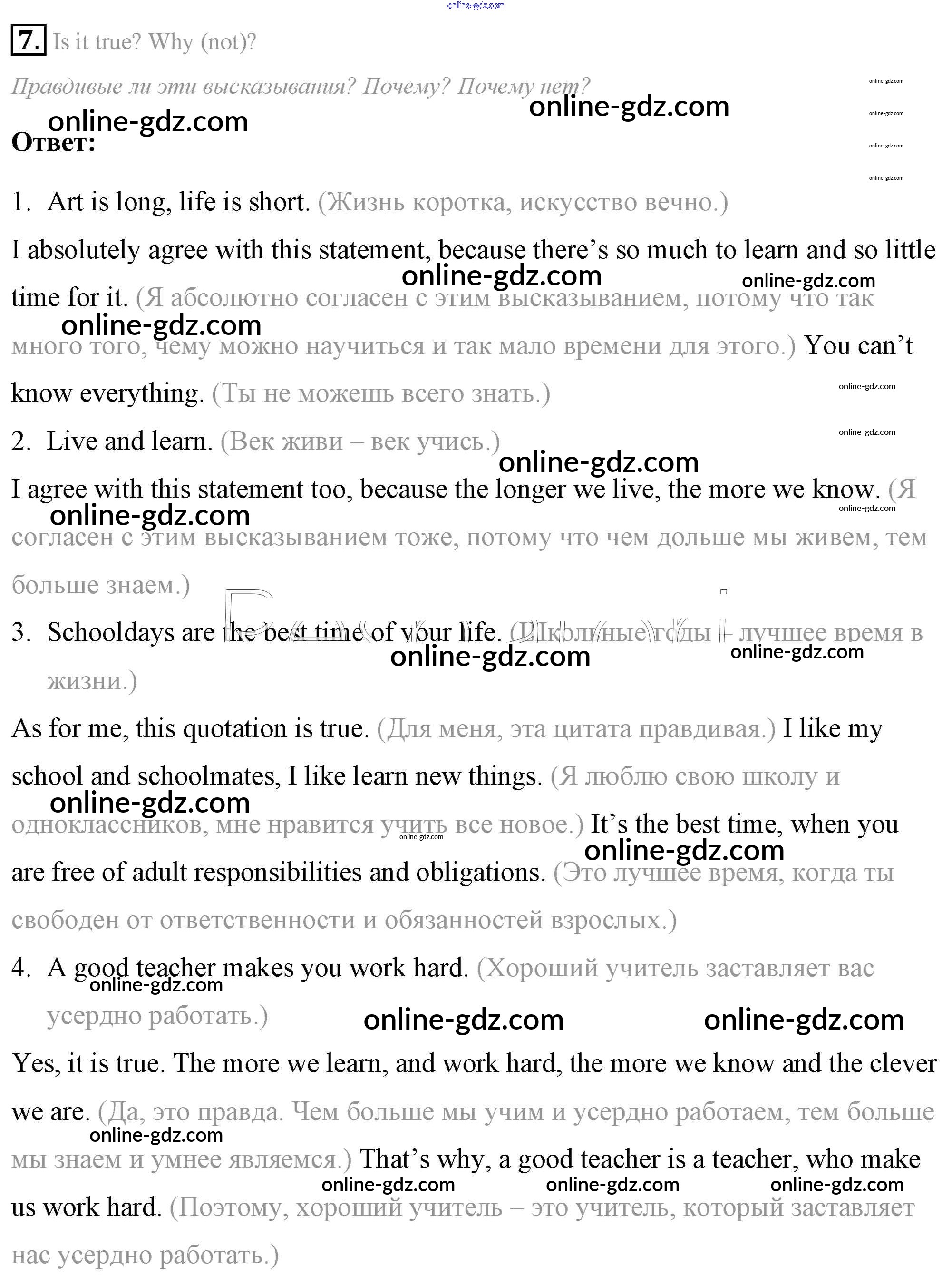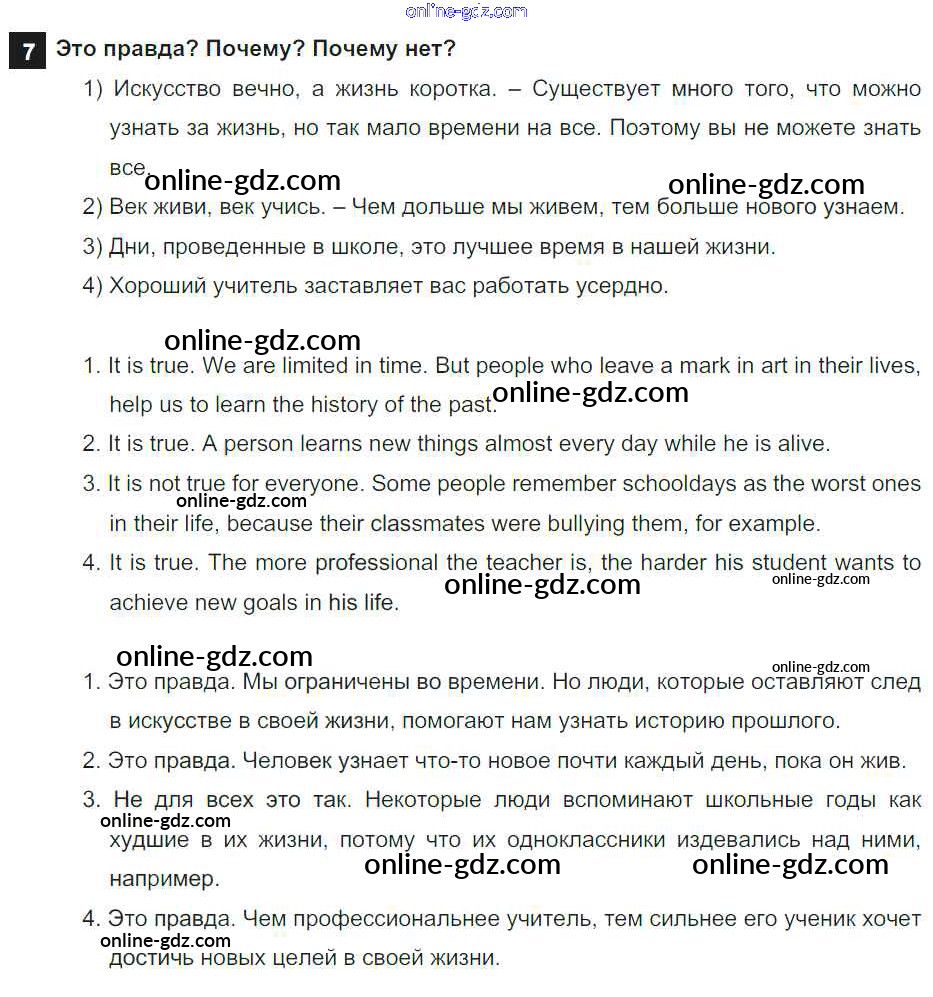 Готовые домашние задания по Английскому языку за 7 класс Учебник Афанасьева, Михеева Rainbow 2019 - Step 9 Consolidation Class: UNIT 1. SCHOOLS AND SCHOOLING. 7