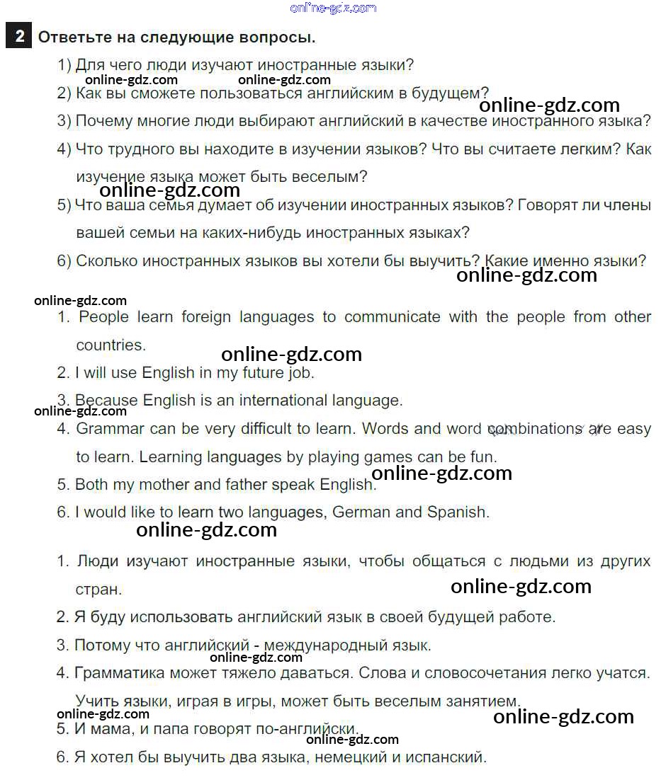 Готовые домашние задания по Английскому языку за 7 класс Учебник Афанасьева, Михеева Rainbow 2019 - Step 1 UNIT 2. THE LANGUAGE OF THE WORLD. 2