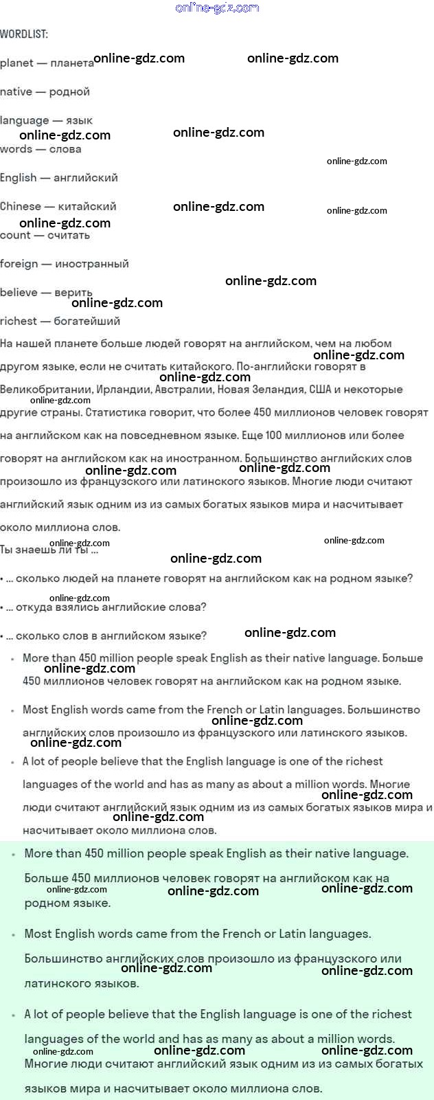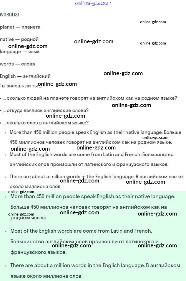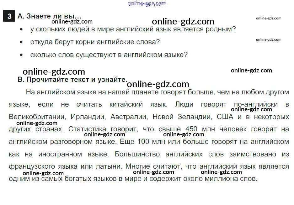 Готовые домашние задания по Английскому языку за 7 класс Учебник Афанасьева, Михеева Rainbow 2019 - Step 1 UNIT 2. THE LANGUAGE OF THE WORLD. 3