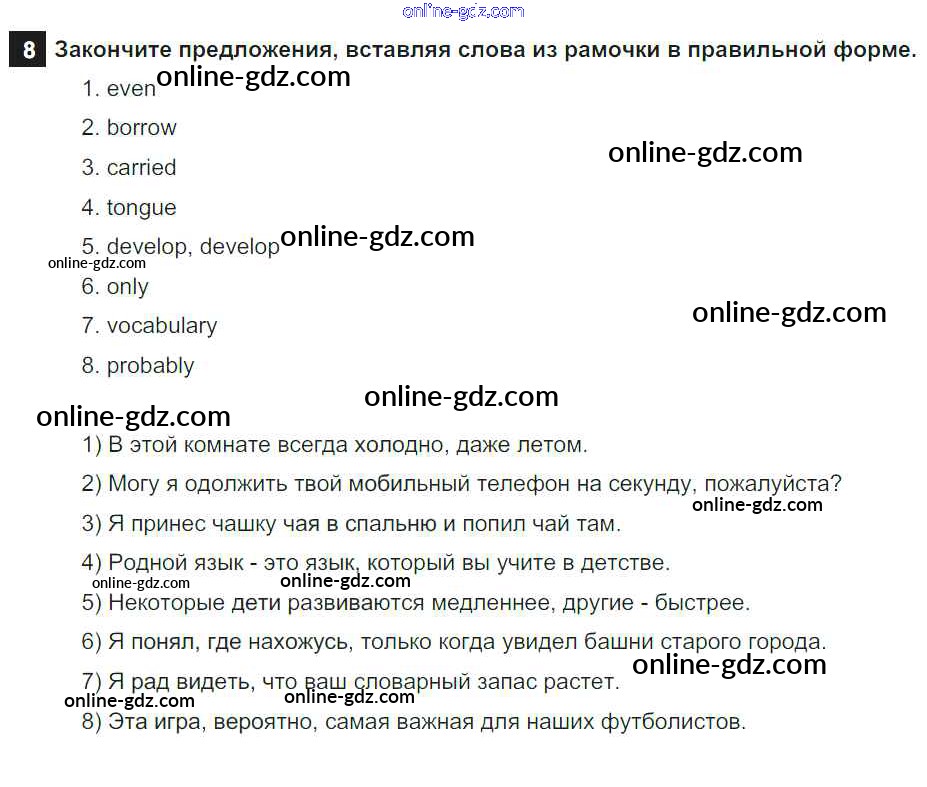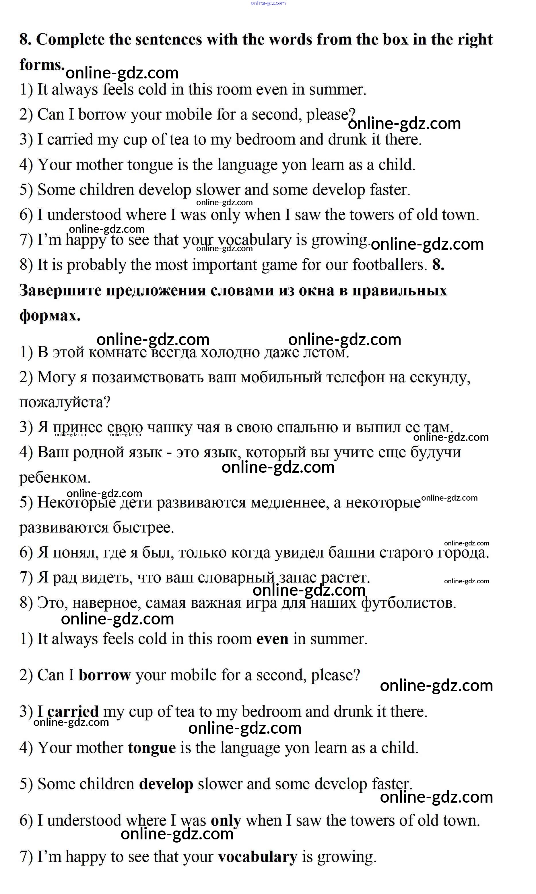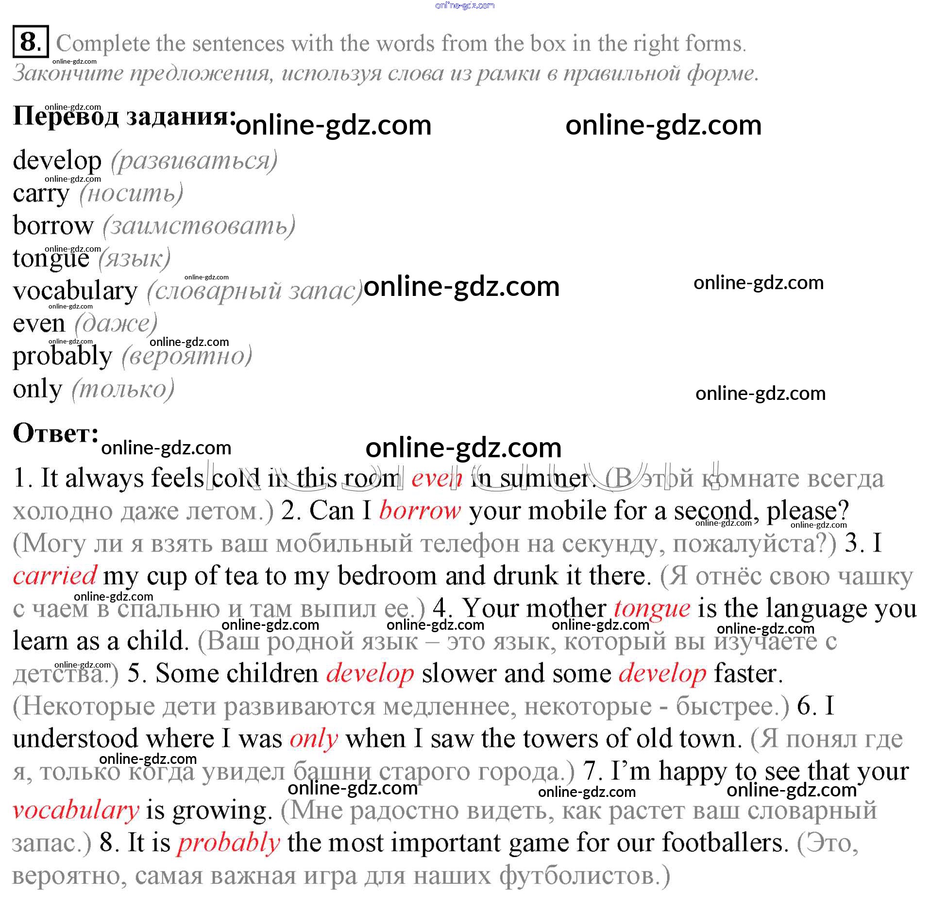 Готовые домашние задания по Английскому языку за 7 класс Учебник Афанасьева, Михеева Rainbow 2019 - Step 4 UNIT 2. THE LANGUAGE OF THE WORLD. 8