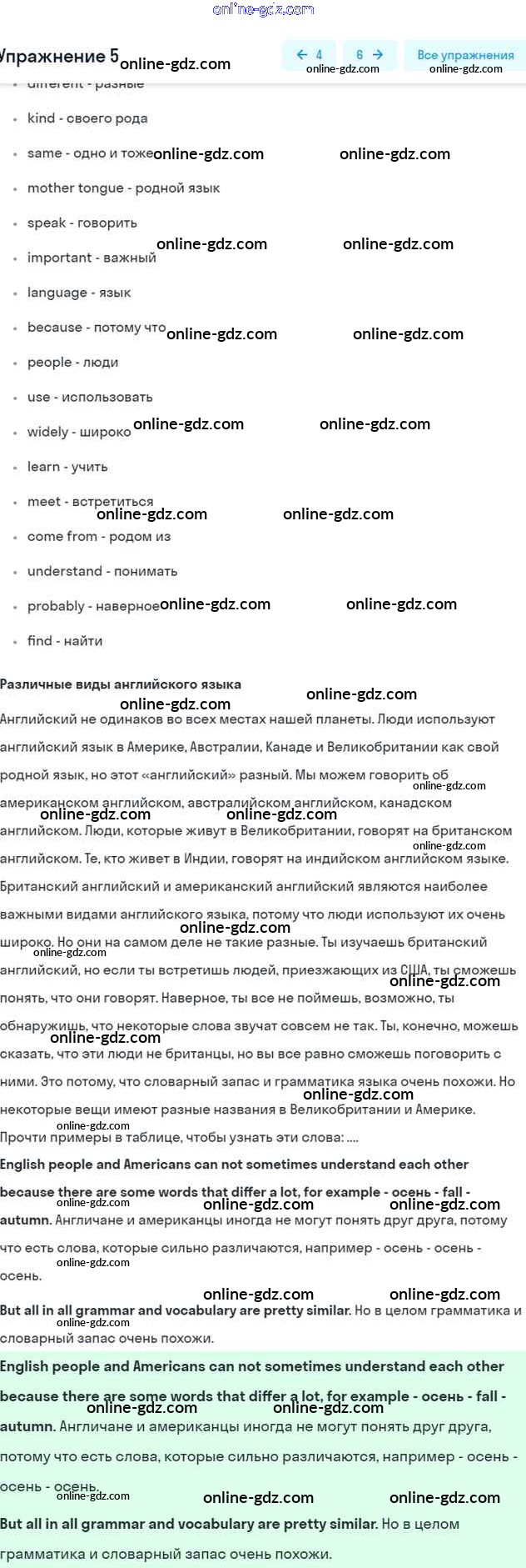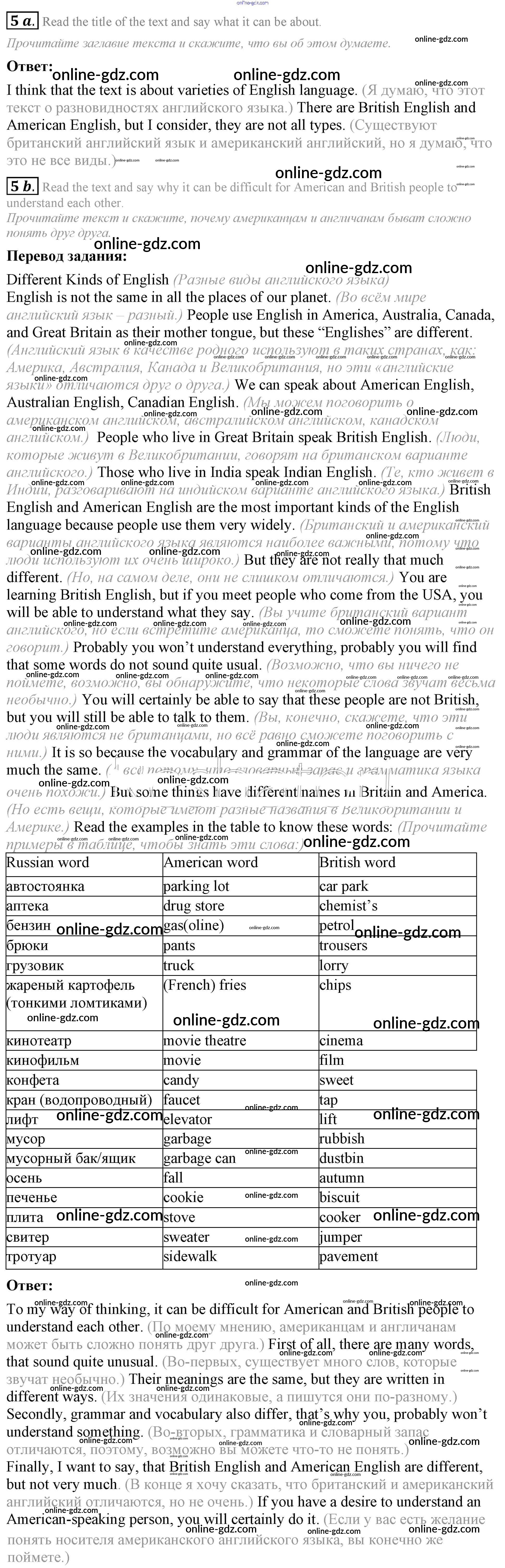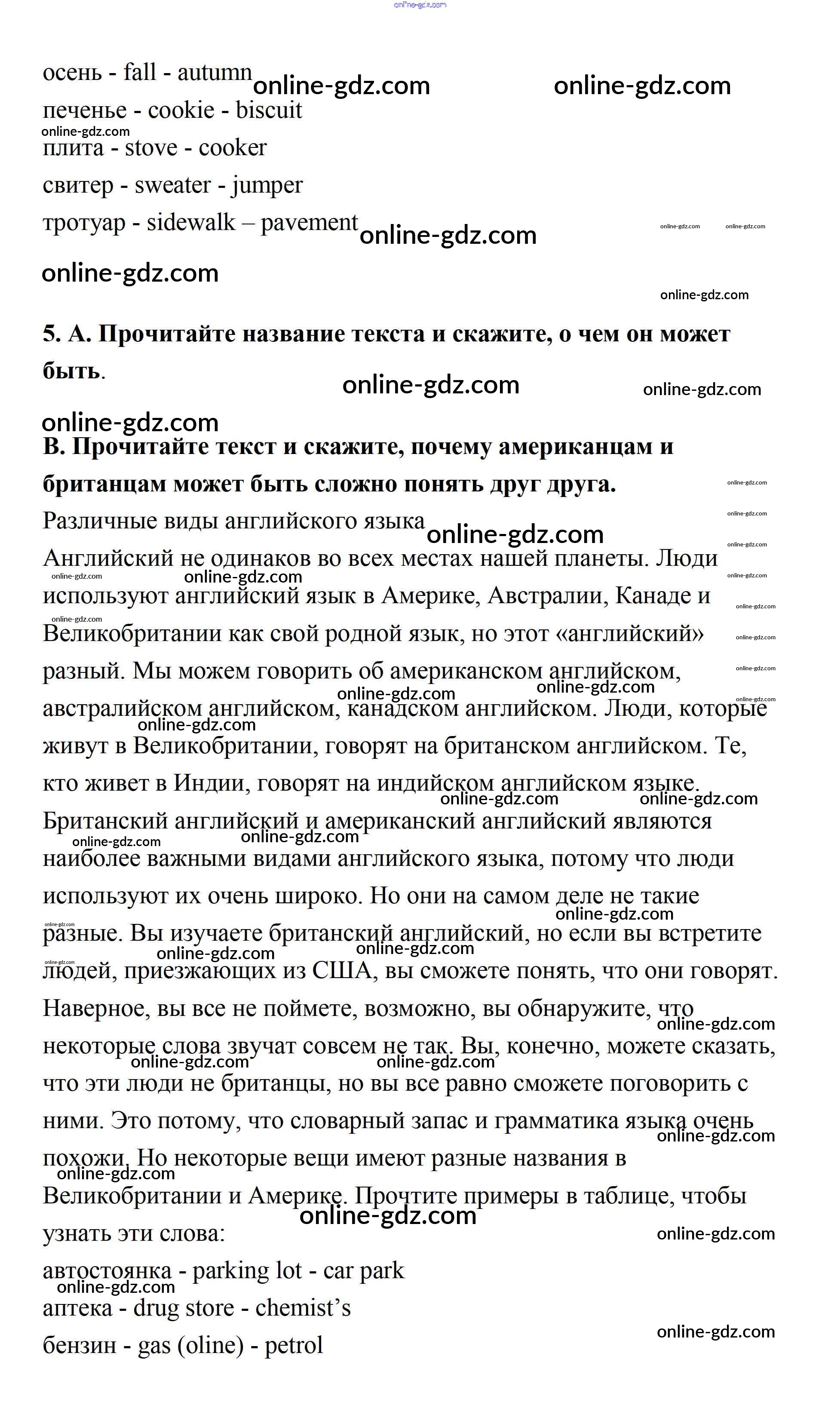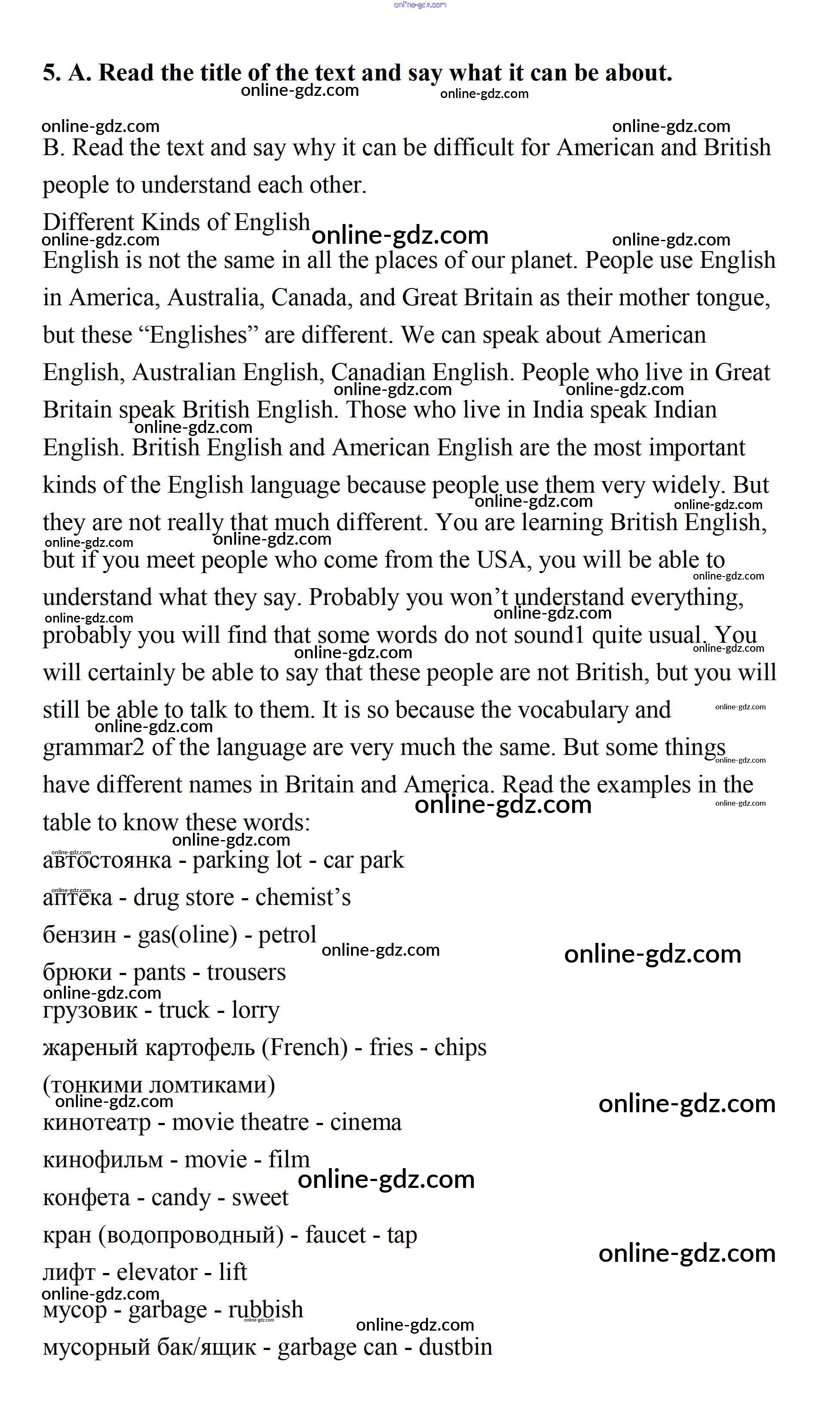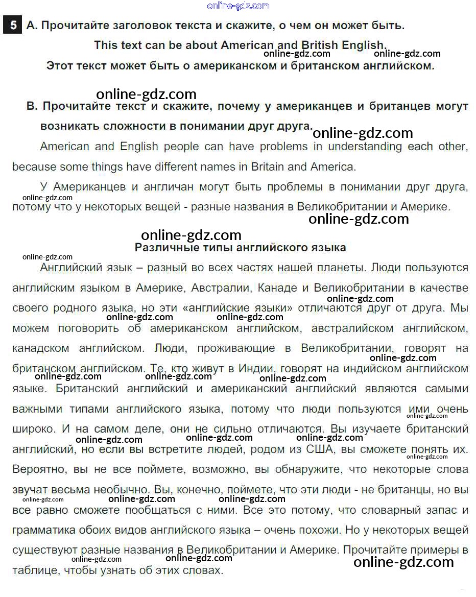 Готовые домашние задания по Английскому языку за 7 класс Учебник Афанасьева, Михеева Rainbow 2019 - Step 5 UNIT 2. THE LANGUAGE OF THE WORLD. 5