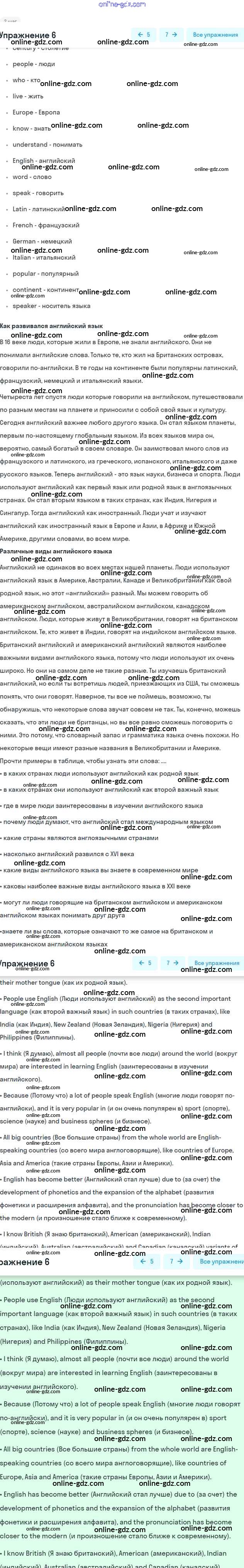 Готовые домашние задания по Английскому языку за 7 класс Учебник Афанасьева, Михеева Rainbow 2019 - Step 5 UNIT 2. THE LANGUAGE OF THE WORLD. 6