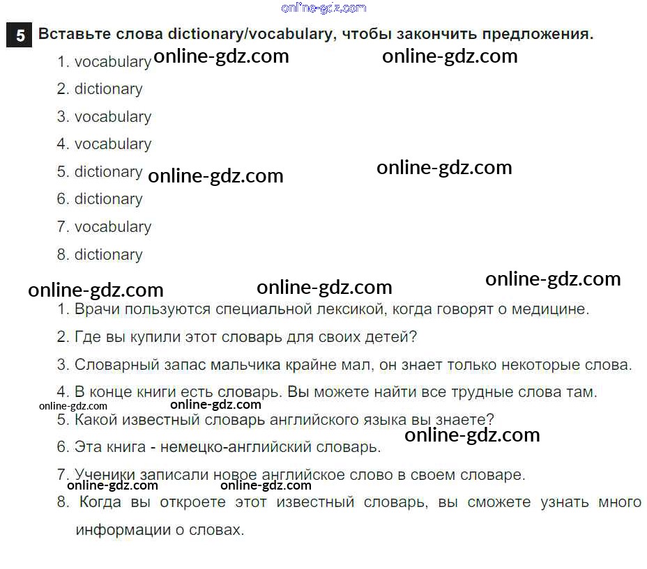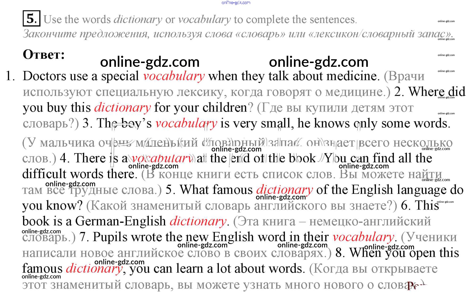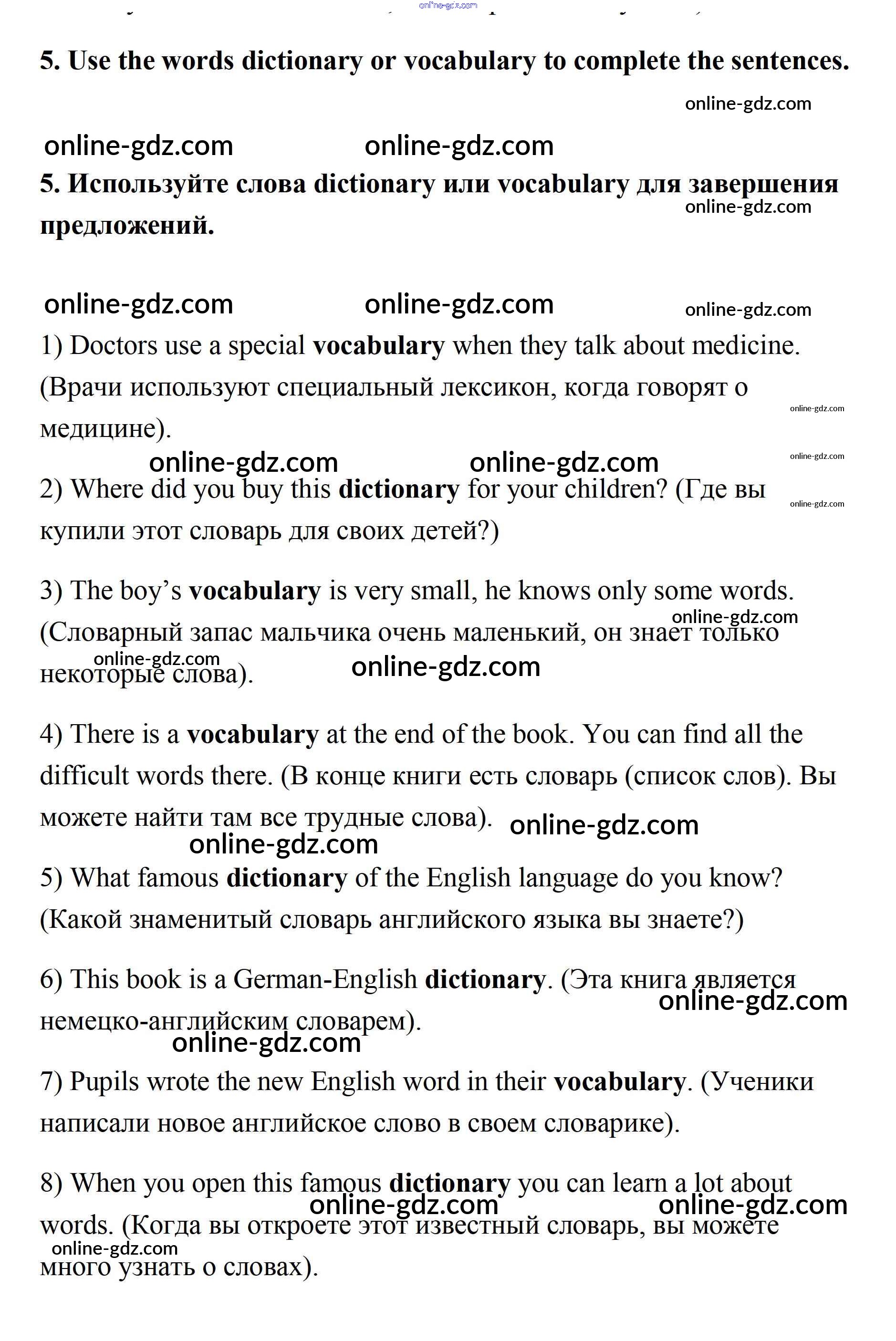 Готовые домашние задания по Английскому языку за 7 класс Учебник Афанасьева, Михеева Rainbow 2019 - Step 7 UNIT 2. THE LANGUAGE OF THE WORLD. 5
