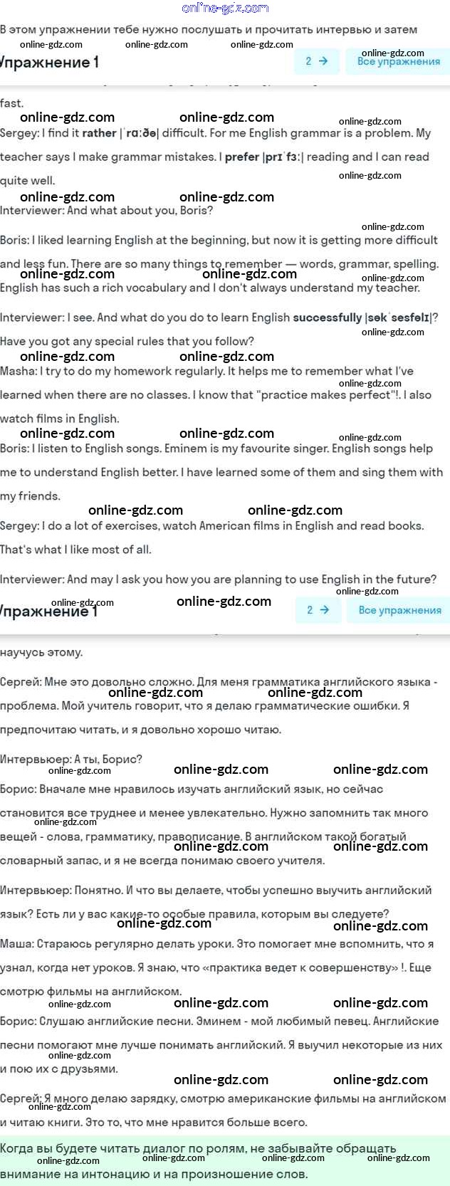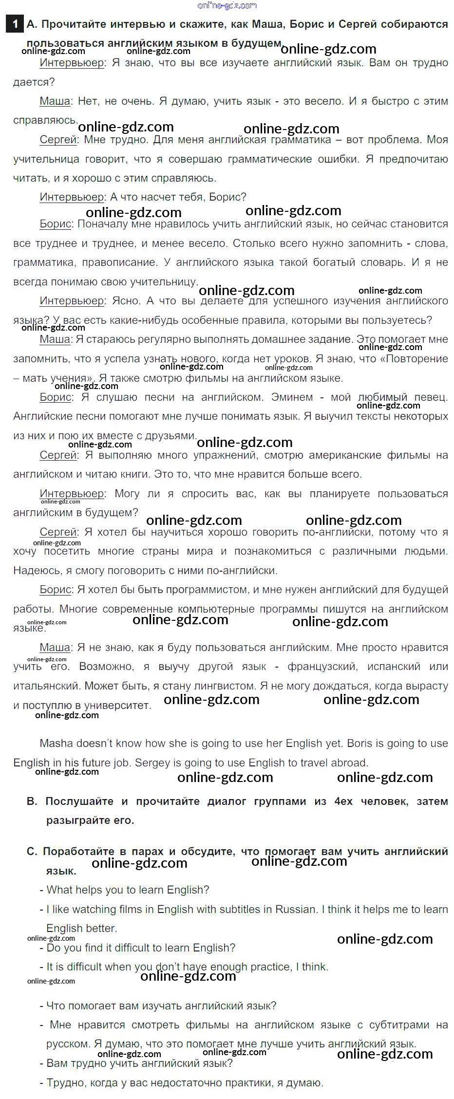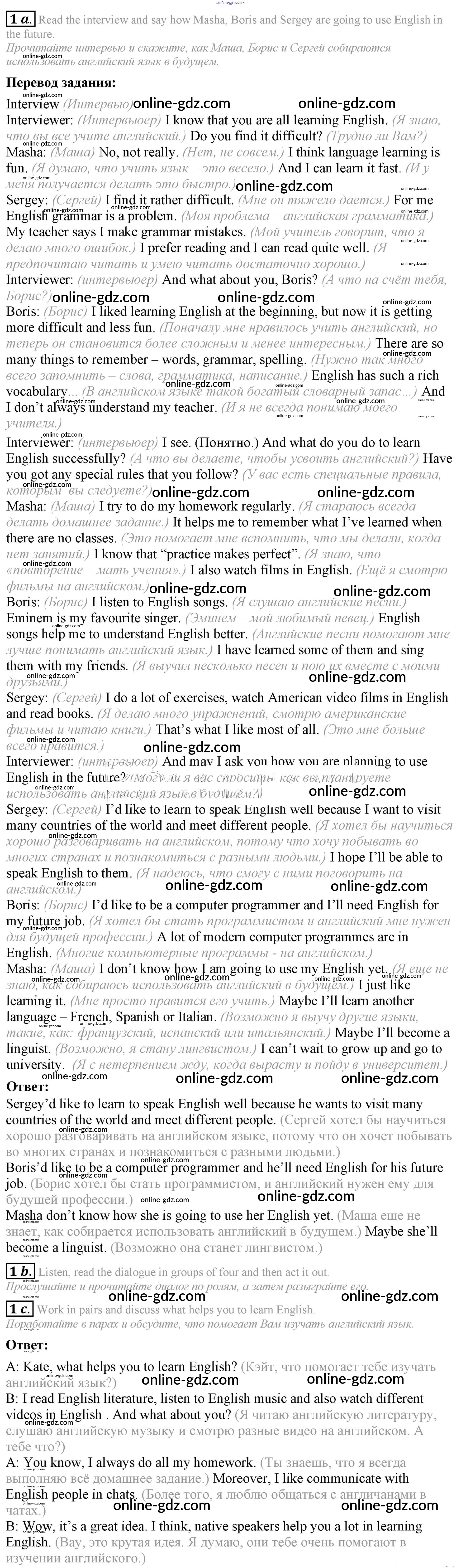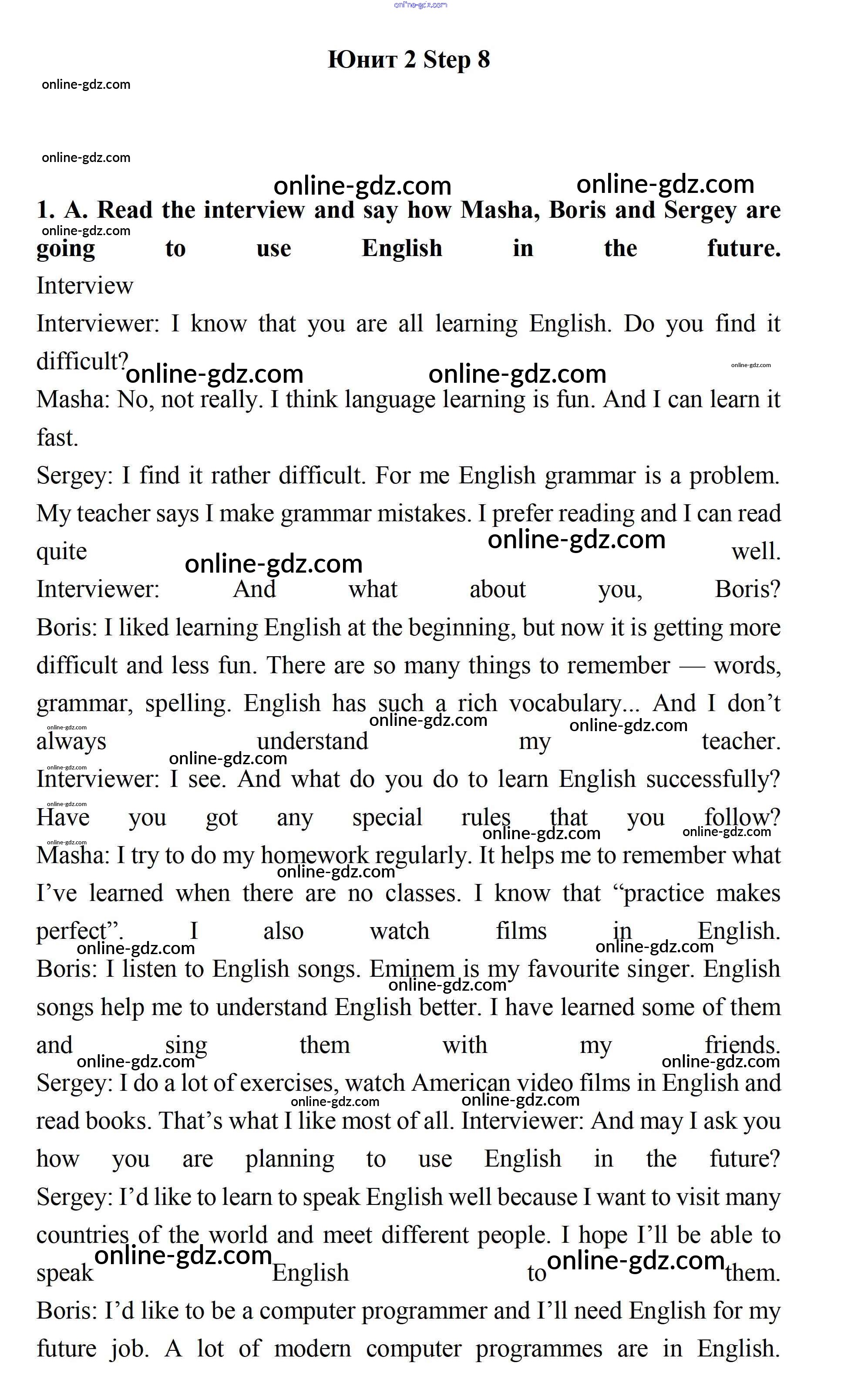 Готовые домашние задания по Английскому языку за 7 класс Учебник Афанасьева, Михеева Rainbow 2019 - Step 8 UNIT 2. THE LANGUAGE OF THE WORLD. 1
