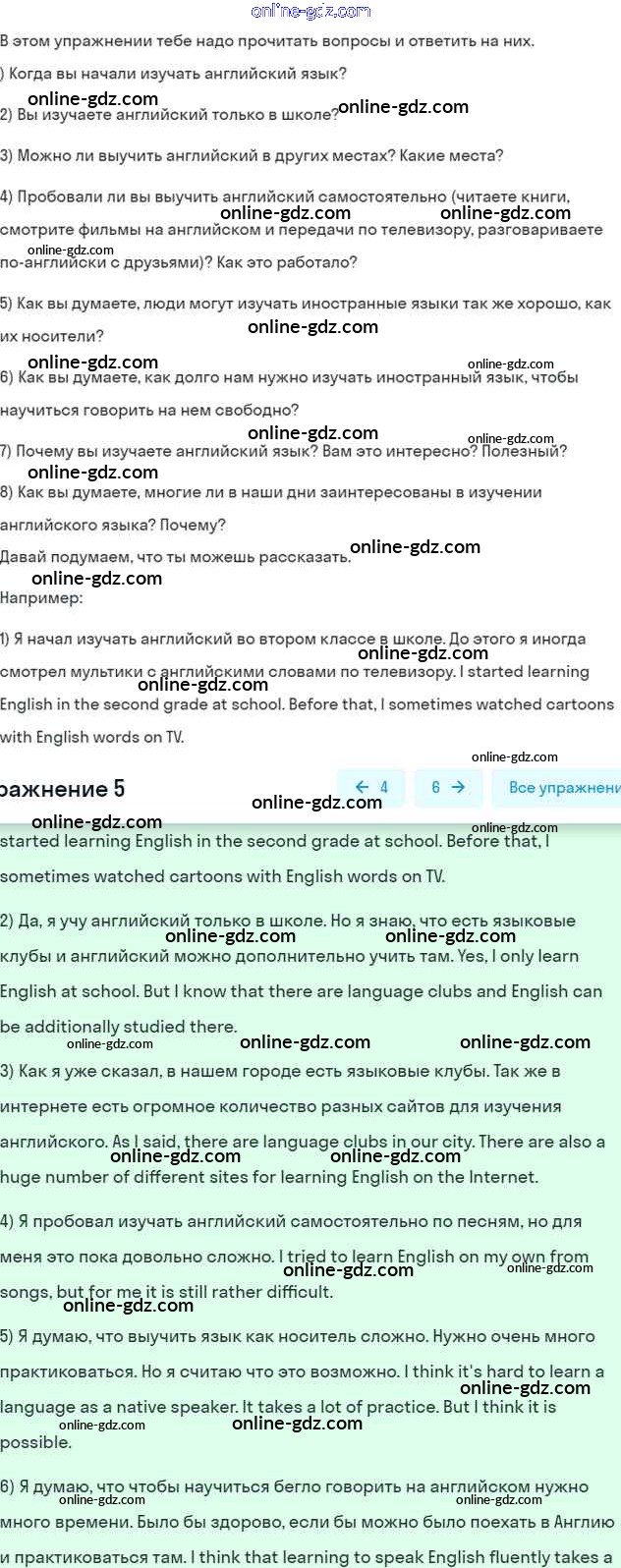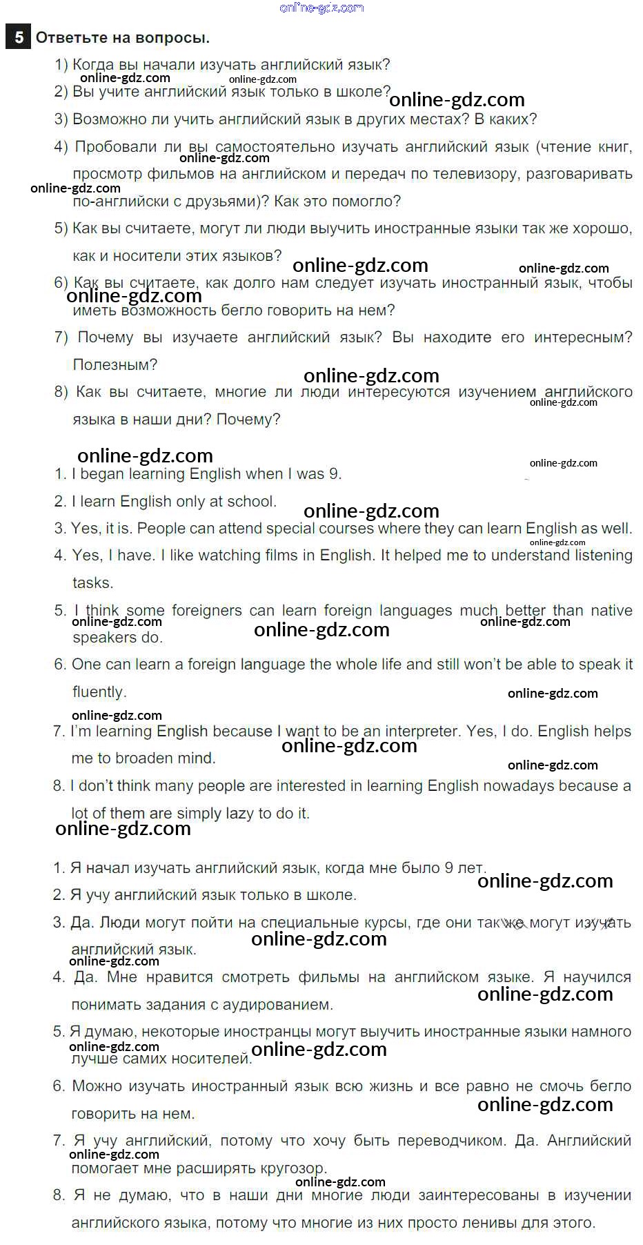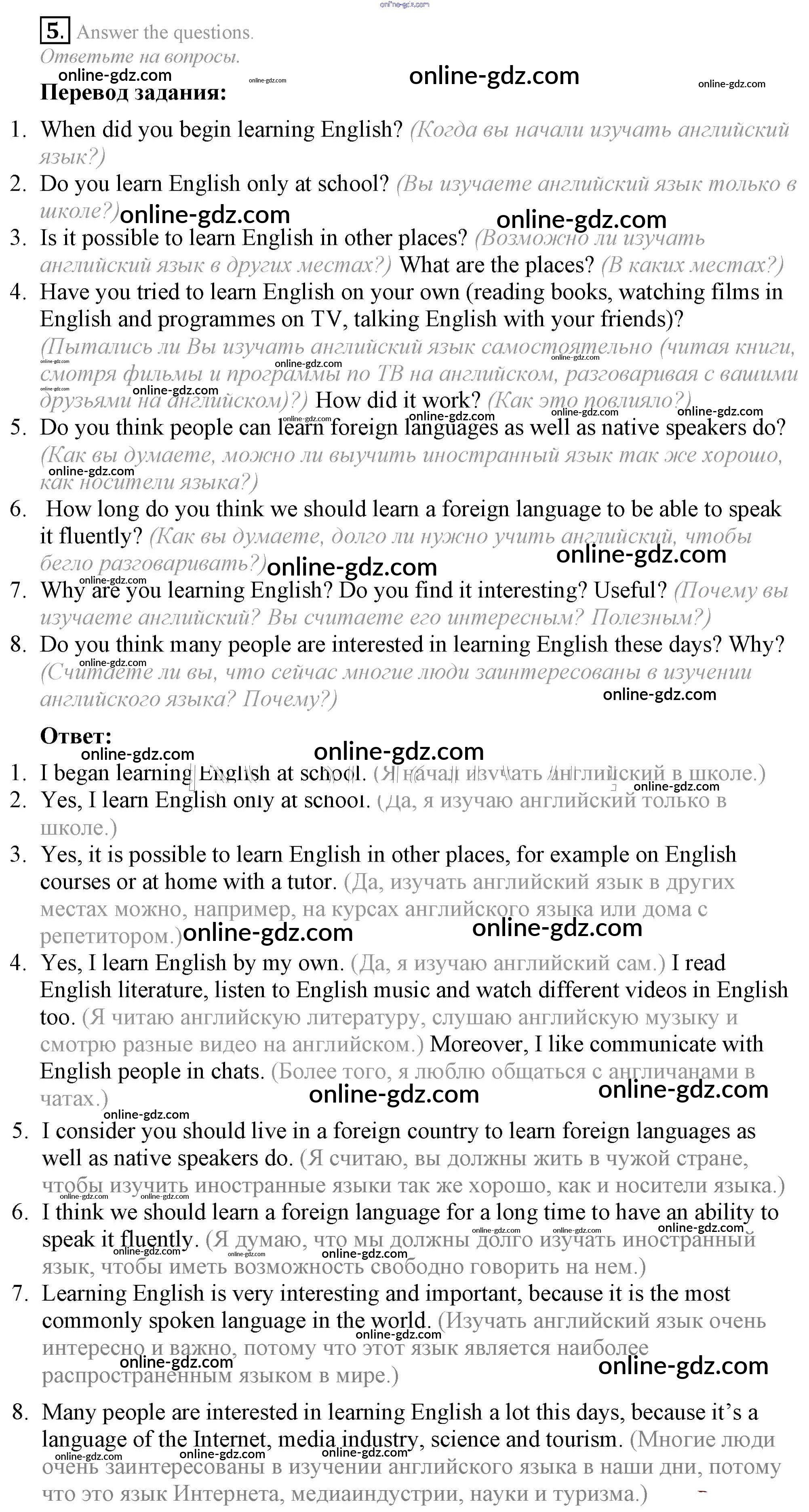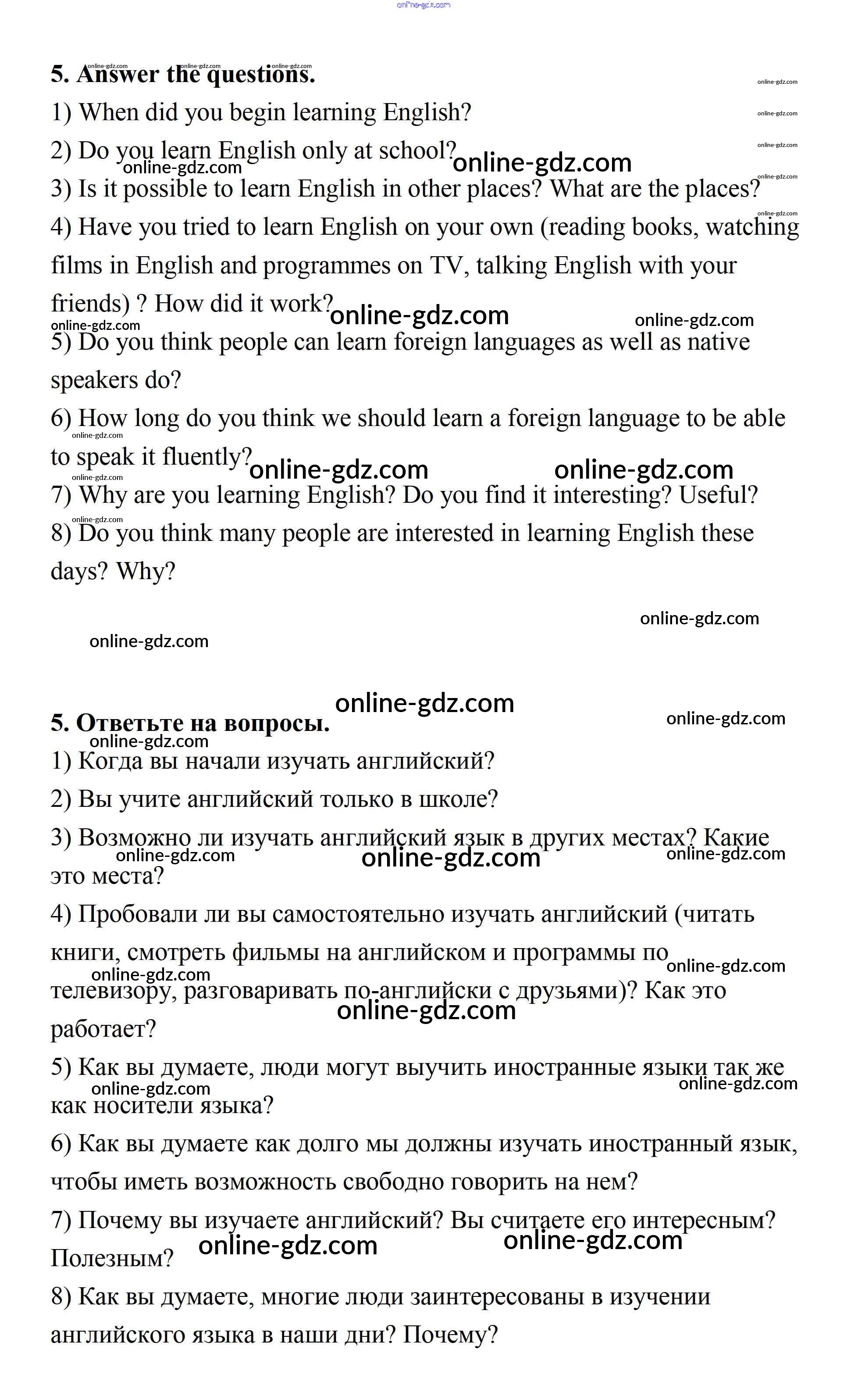 Готовые домашние задания по Английскому языку за 7 класс Учебник Афанасьева, Михеева Rainbow 2019 - Step 8 UNIT 2. THE LANGUAGE OF THE WORLD. 5