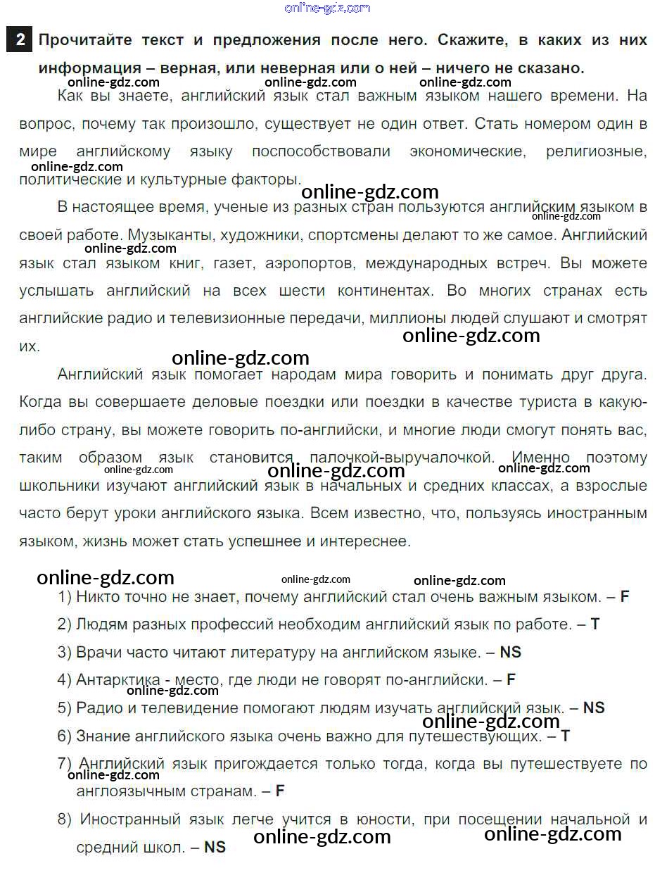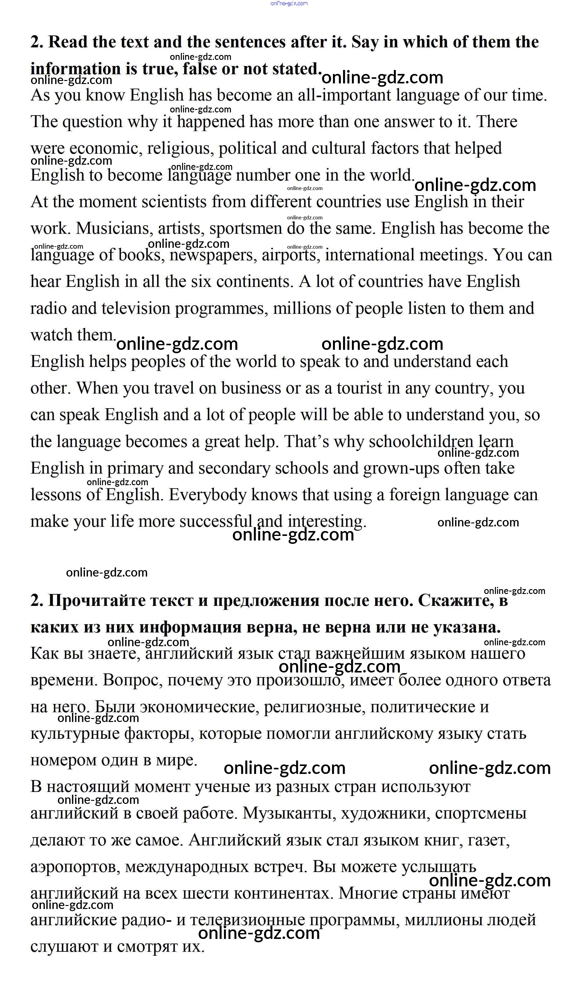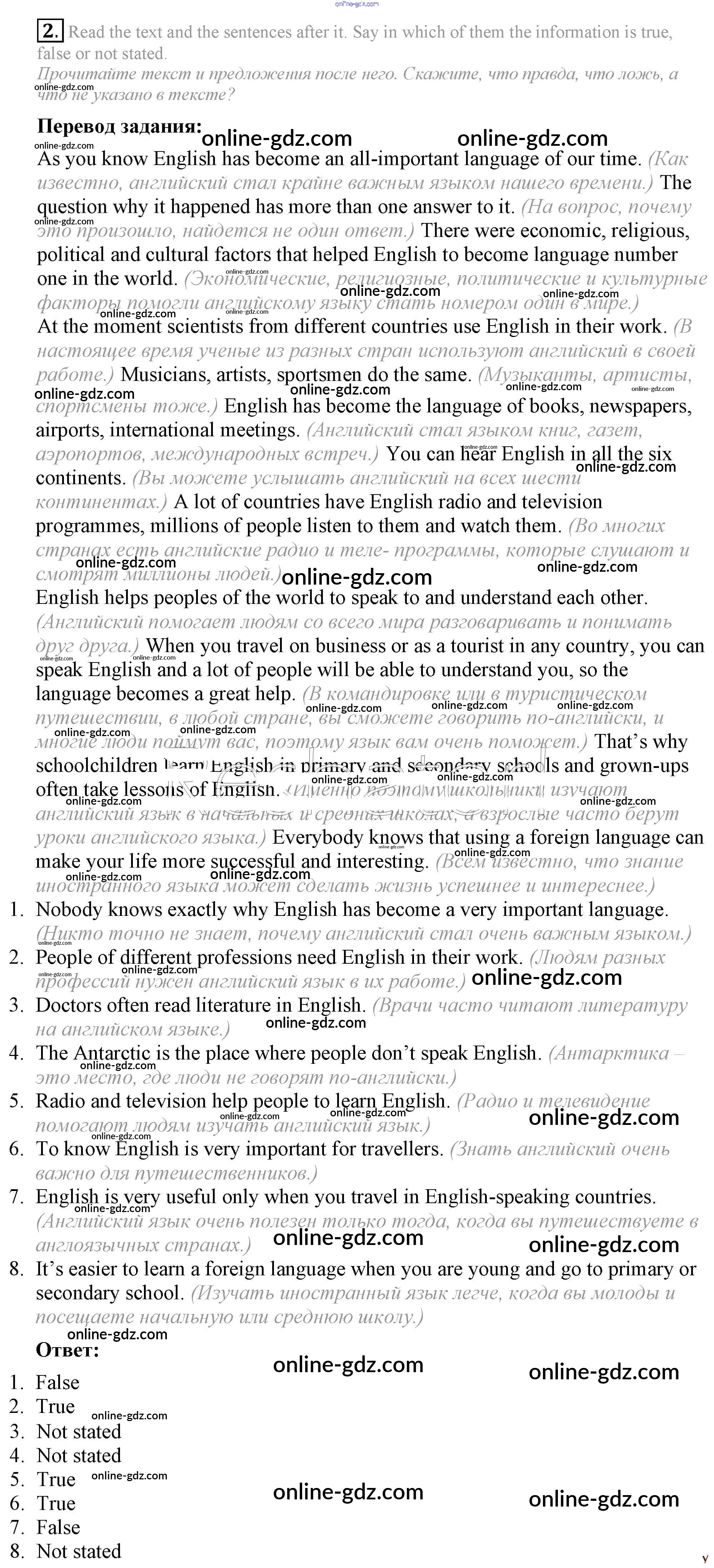 Готовые домашние задания по Английскому языку за 7 класс Учебник Афанасьева, Михеева Rainbow 2019 - Step 9 Consolidation Class: UNIT 2. THE LANGUAGE OF THE WORLD. 2