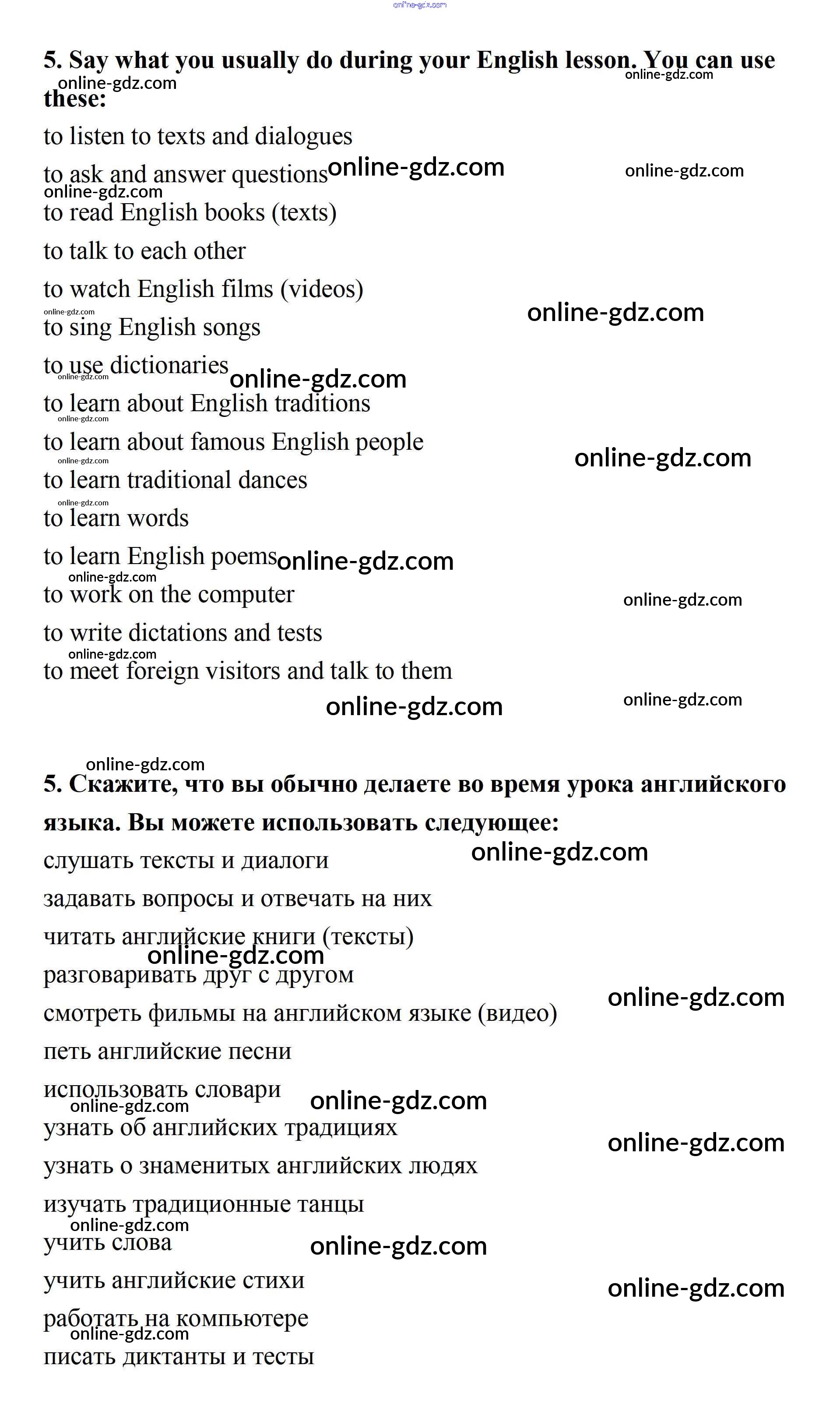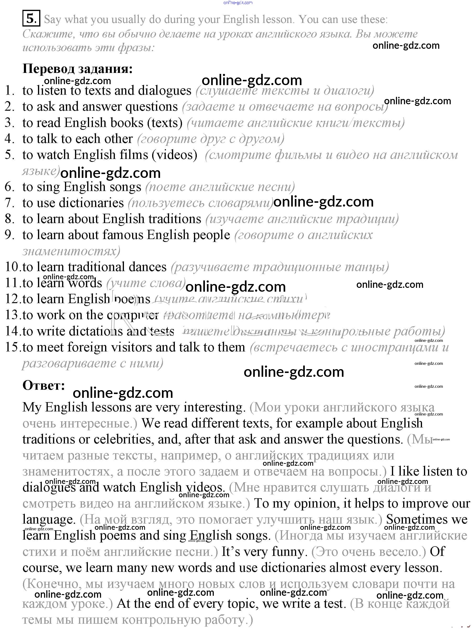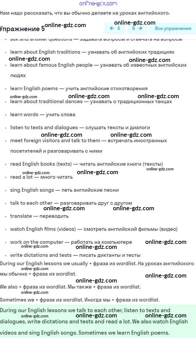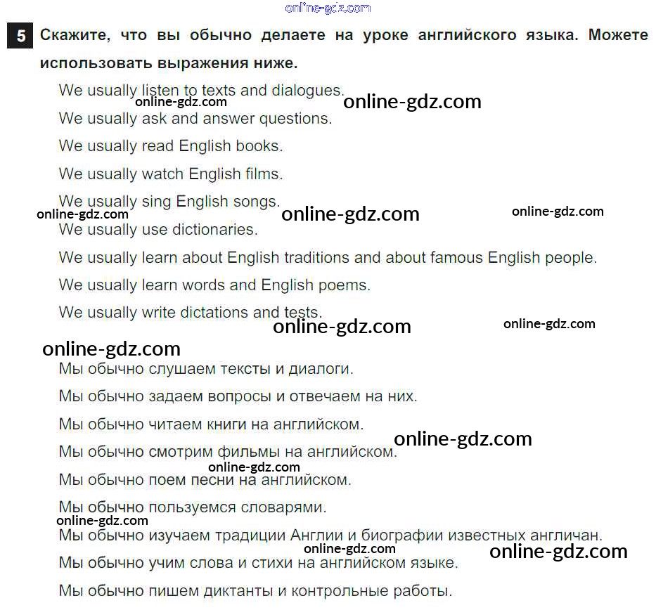 Готовые домашние задания по Английскому языку за 7 класс Учебник Афанасьева, Михеева Rainbow 2019 - Step 9 Consolidation Class: UNIT 2. THE LANGUAGE OF THE WORLD. 5