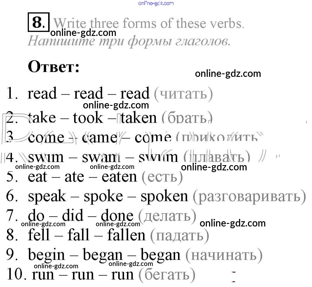 Готовые домашние задания по Английскому языку за 7 класс Учебник Афанасьева, Михеева Rainbow 2019 - Step 9 Consolidation Class: UNIT 2. THE LANGUAGE OF THE WORLD. 8