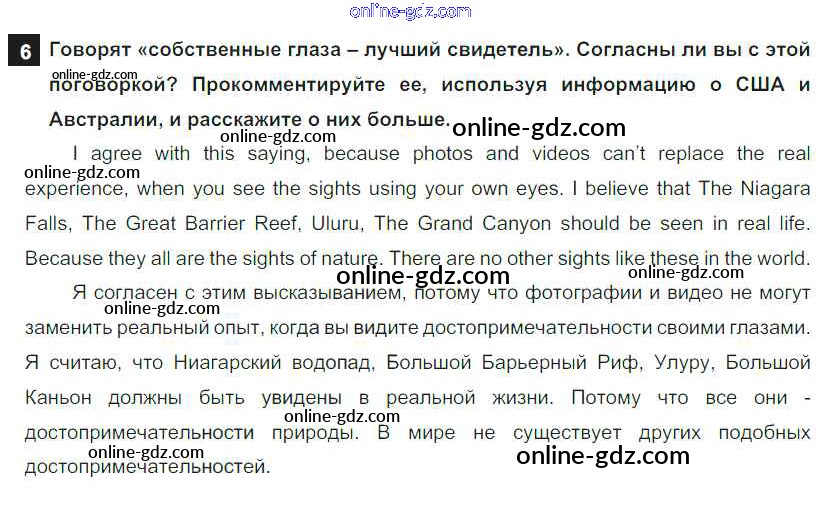 Готовые домашние задания по Английскому языку за 7 класс Учебник Афанасьева, Михеева Rainbow 2019 - Step 10 Test Yourself: UNIT 3. SOME FACTS ABOUT THE ENGLISH-SPEAKING WORLD. 6