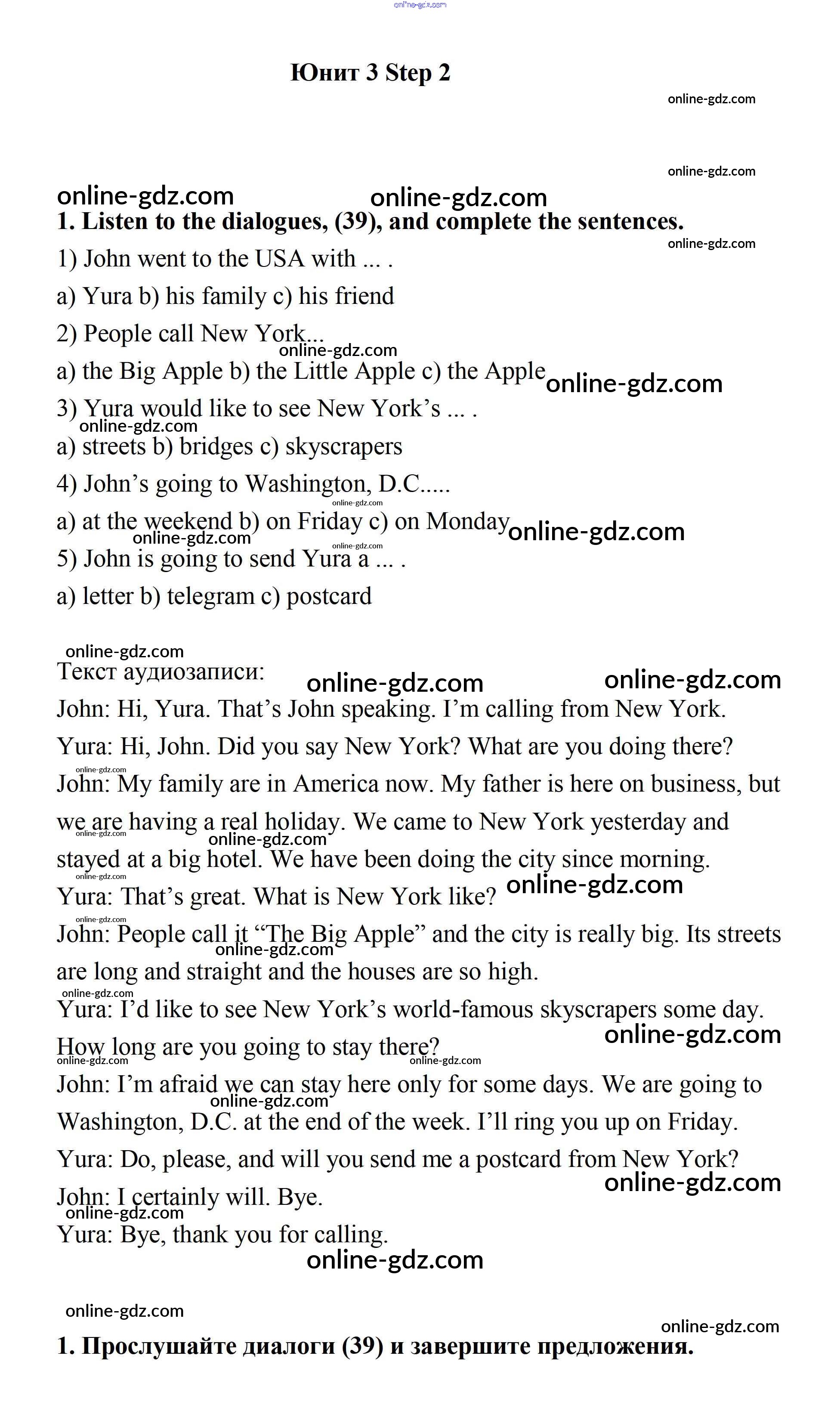 Готовые домашние задания по Английскому языку за 7 класс Учебник Афанасьева, Михеева Rainbow 2019 - Step 2 UNIT 3. SOME FACTS ABOUT THE ENGLISH-SPEAKING WORLD. 1