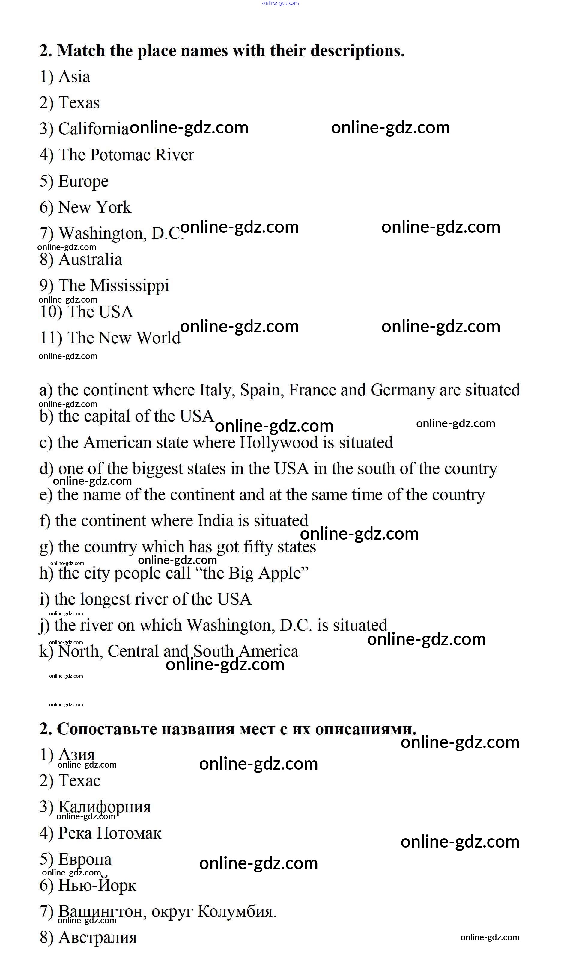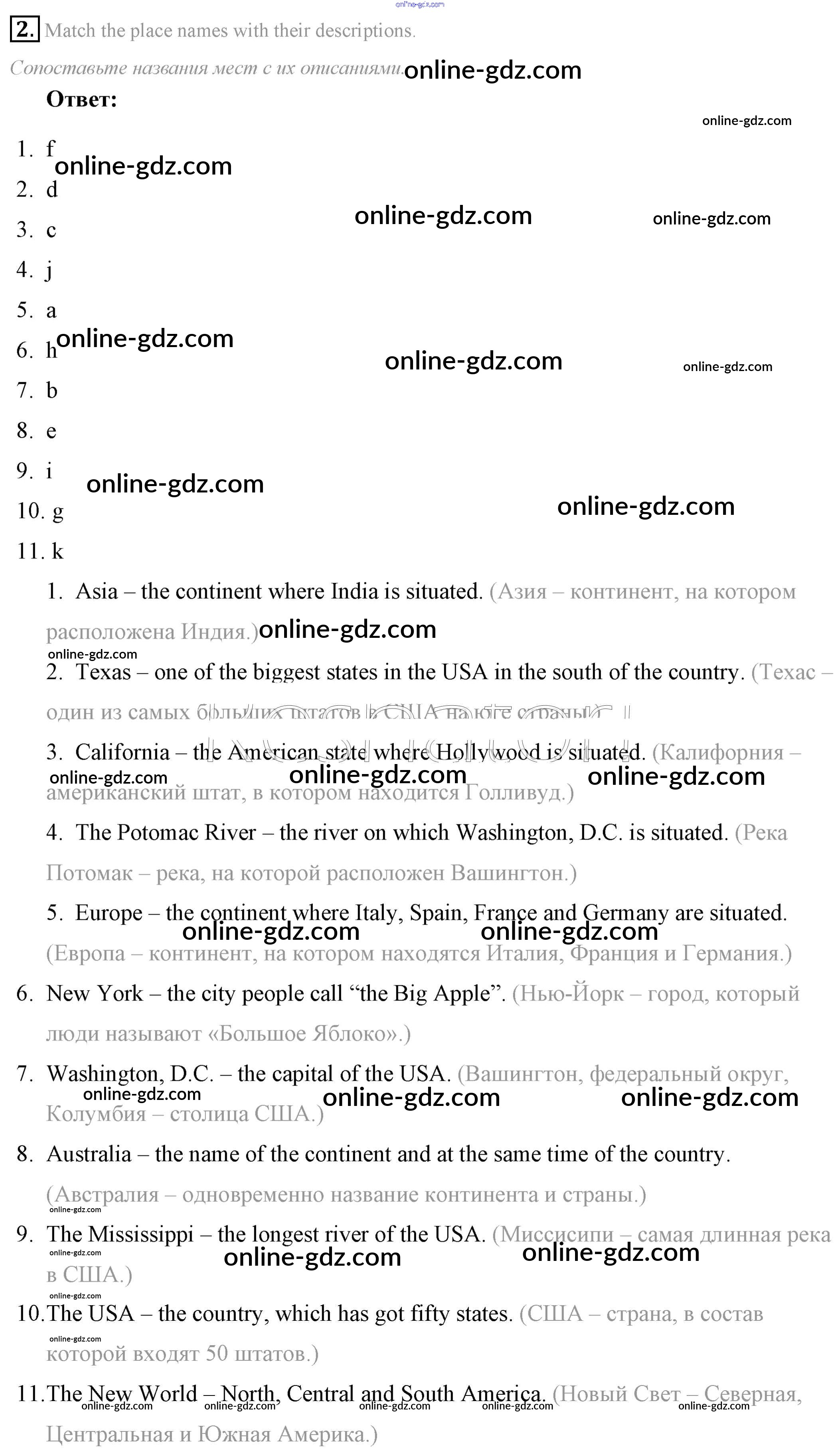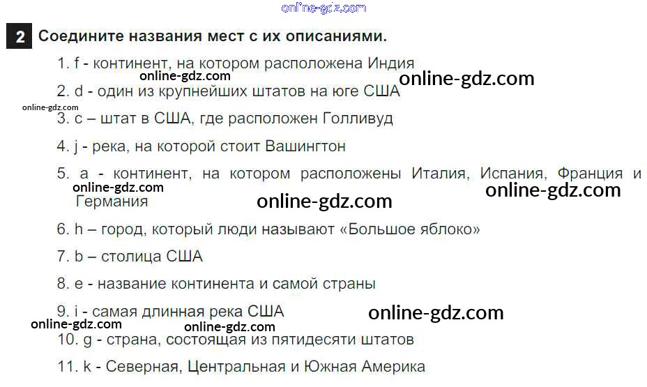 Готовые домашние задания по Английскому языку за 7 класс Учебник Афанасьева, Михеева Rainbow 2019 - Step 2 UNIT 3. SOME FACTS ABOUT THE ENGLISH-SPEAKING WORLD. 2