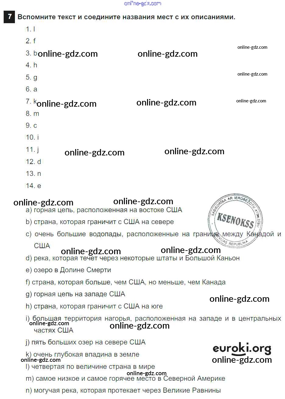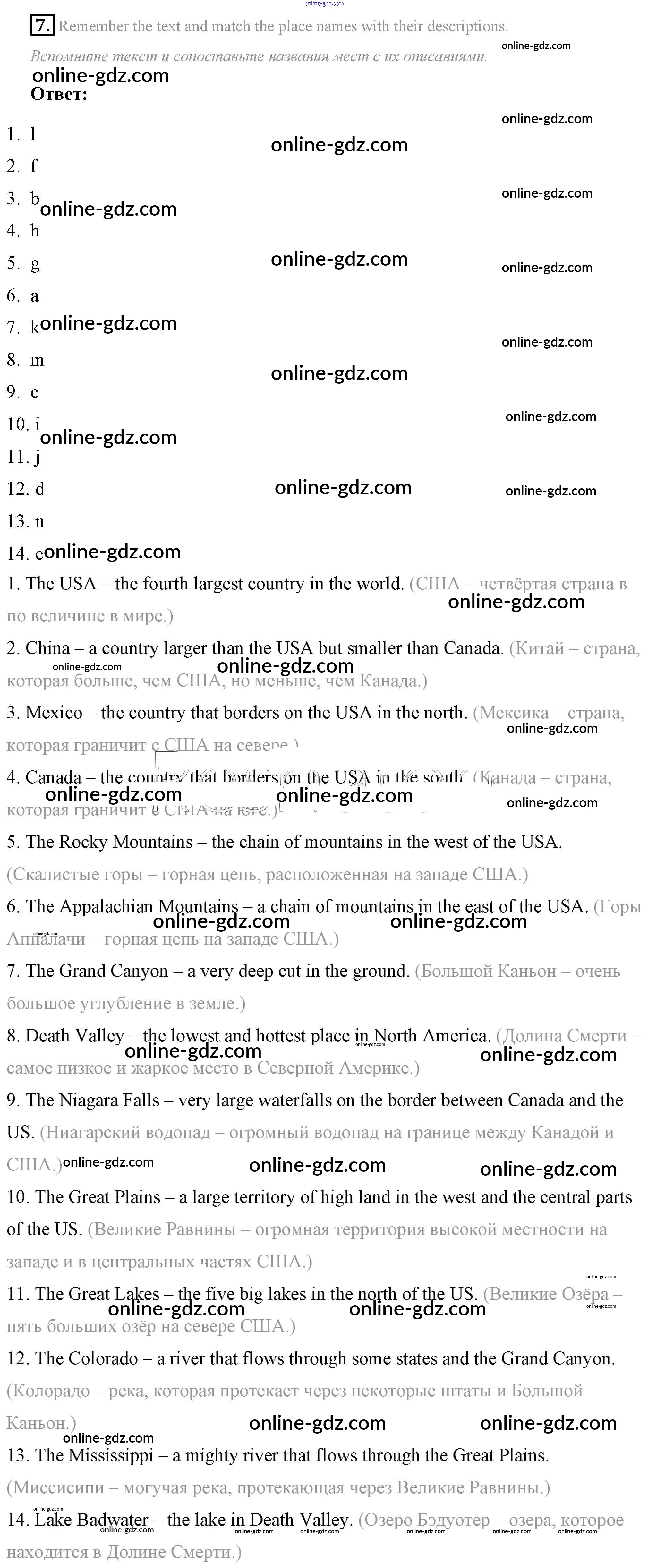 Готовые домашние задания по Английскому языку за 7 класс Учебник Афанасьева, Михеева Rainbow 2019 - Step 2 UNIT 3. SOME FACTS ABOUT THE ENGLISH-SPEAKING WORLD. 7