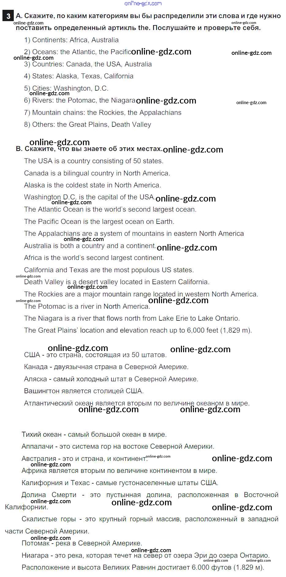 Готовые домашние задания по Английскому языку за 7 класс Учебник Афанасьева, Михеева Rainbow 2019 - Step 4 UNIT 3. SOME FACTS ABOUT THE ENGLISH-SPEAKING WORLD. 3