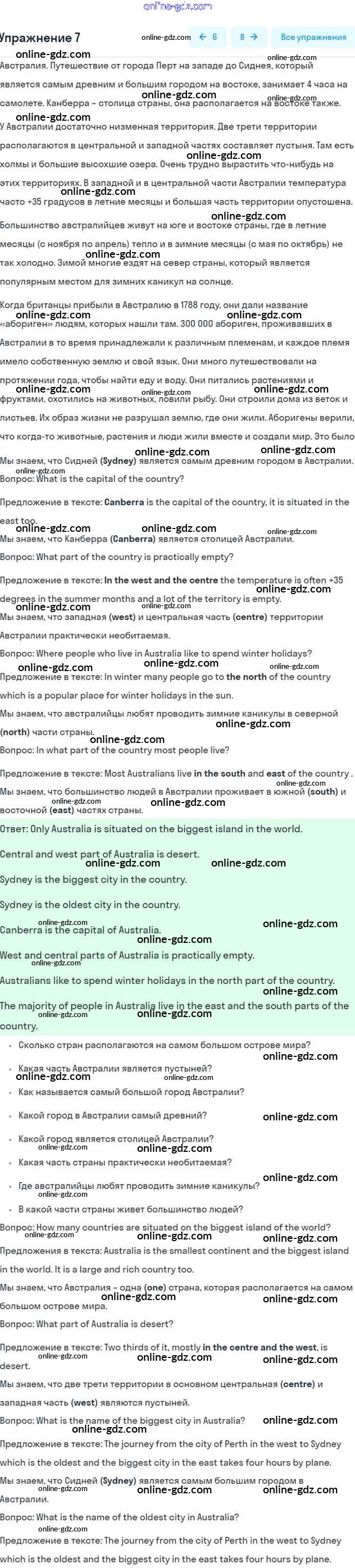 Готовые домашние задания по Английскому языку за 7 класс Учебник Афанасьева, Михеева Rainbow 2019 - Step 4 UNIT 3. SOME FACTS ABOUT THE ENGLISH-SPEAKING WORLD. 7