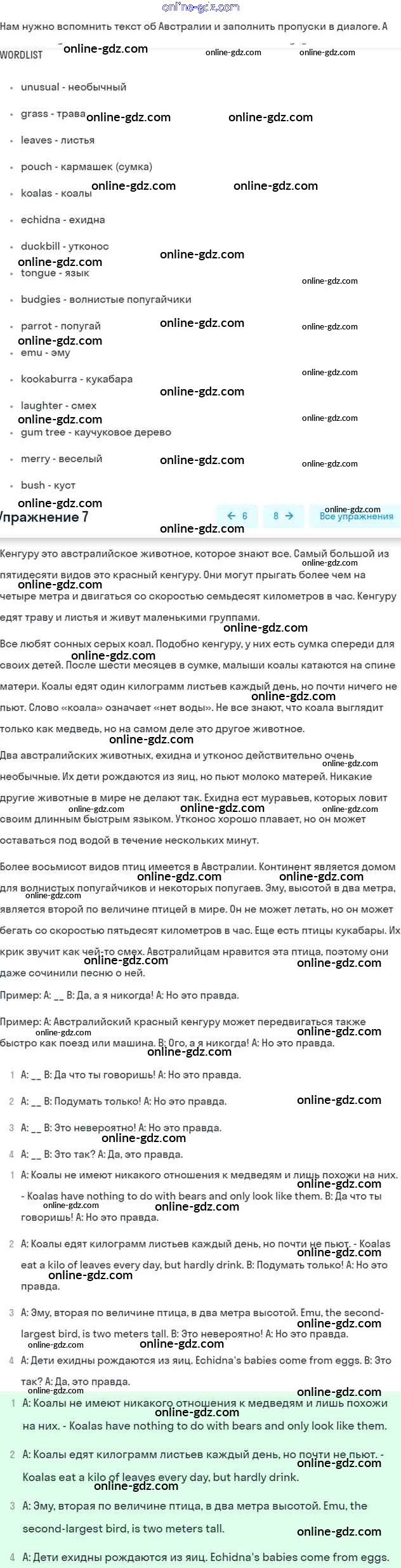 Готовые домашние задания по Английскому языку за 7 класс Учебник Афанасьева, Михеева Rainbow 2019 - Step 6 UNIT 3. SOME FACTS ABOUT THE ENGLISH-SPEAKING WORLD. 7
