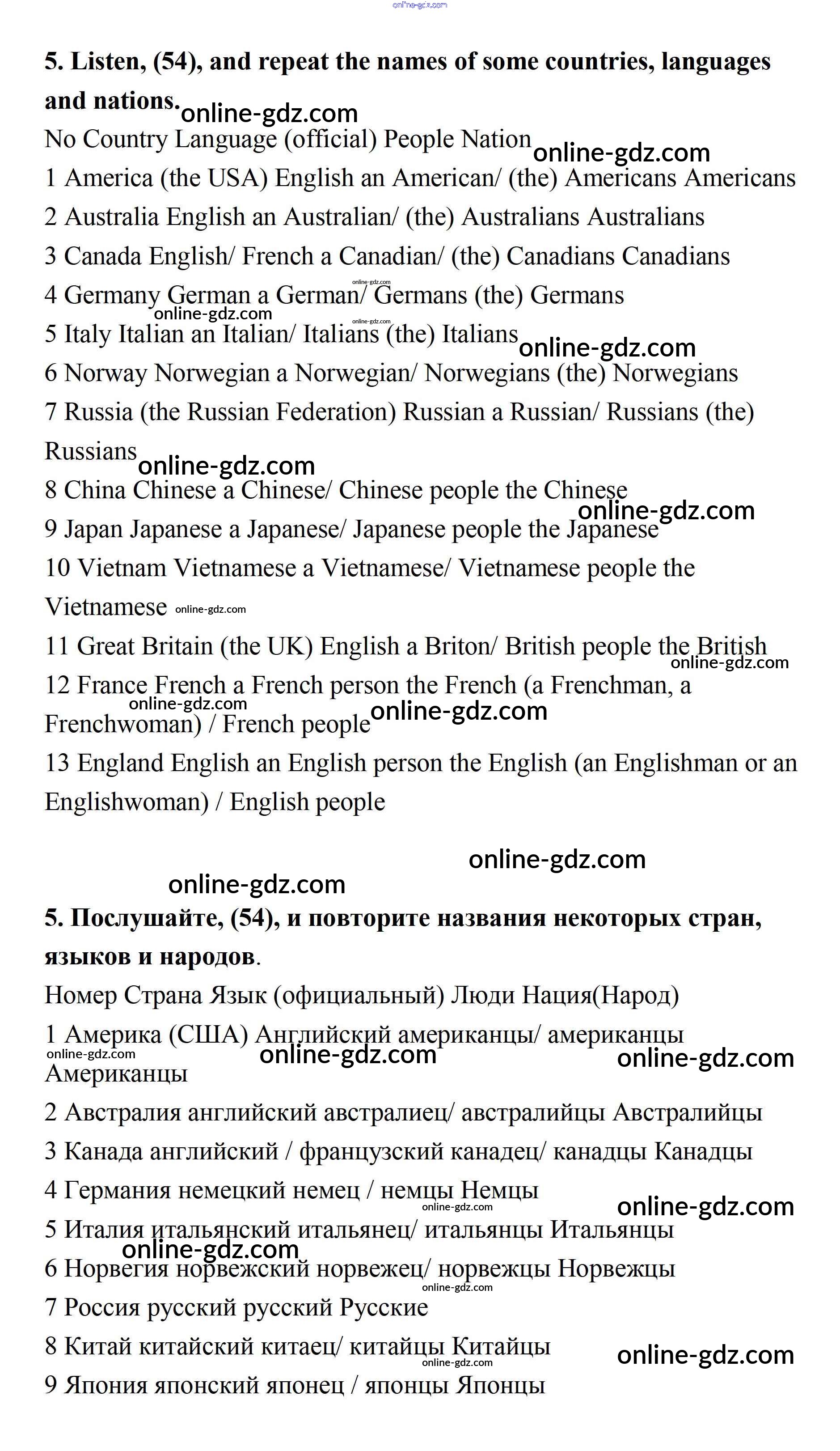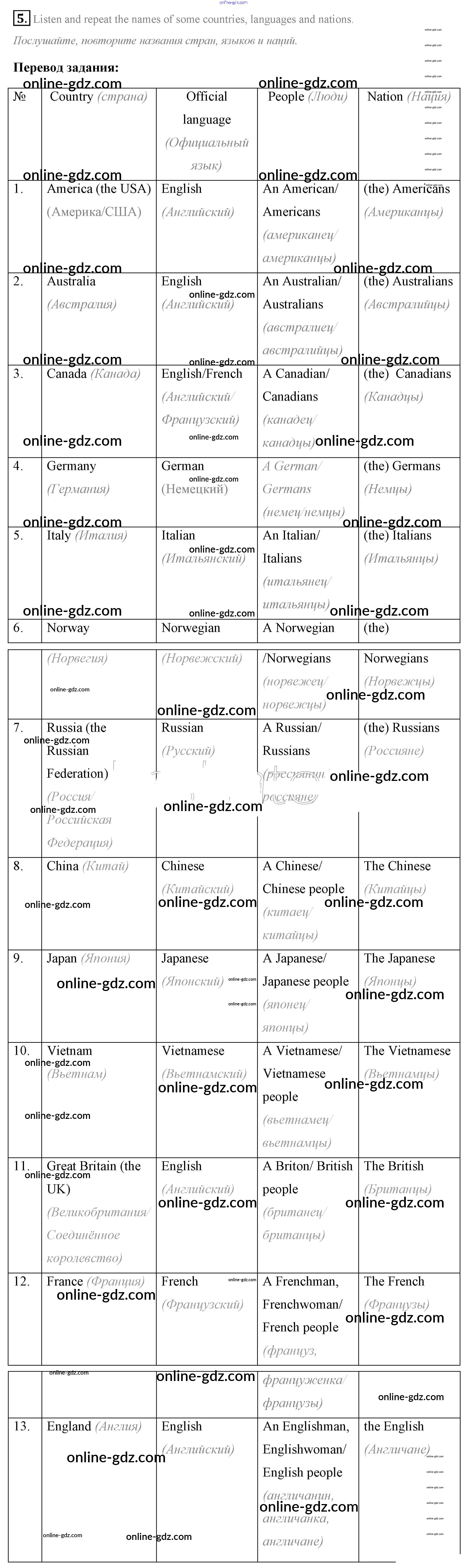 Готовые домашние задания по Английскому языку за 7 класс Учебник Афанасьева, Михеева Rainbow 2019 - Step 7 UNIT 3. SOME FACTS ABOUT THE ENGLISH-SPEAKING WORLD. 5