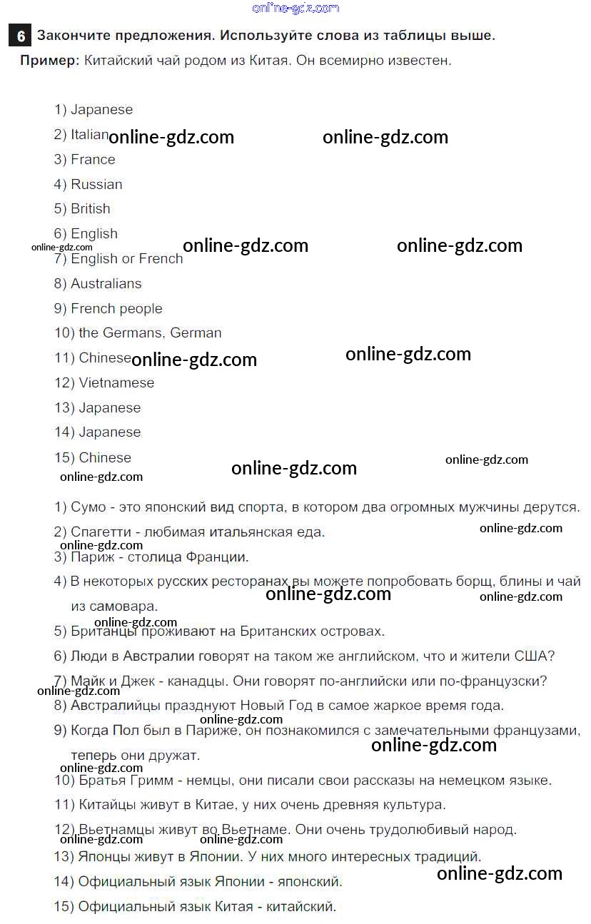 Готовые домашние задания по Английскому языку за 7 класс Учебник Афанасьева, Михеева Rainbow 2019 - Step 7 UNIT 3. SOME FACTS ABOUT THE ENGLISH-SPEAKING WORLD. 6