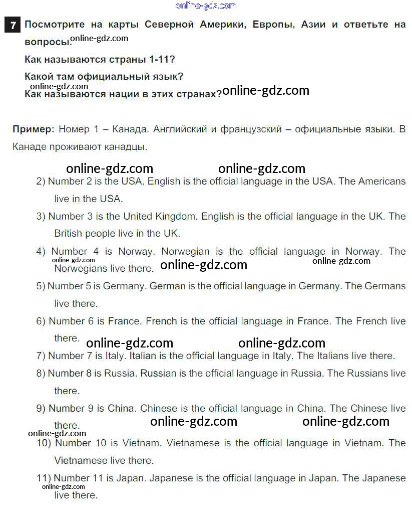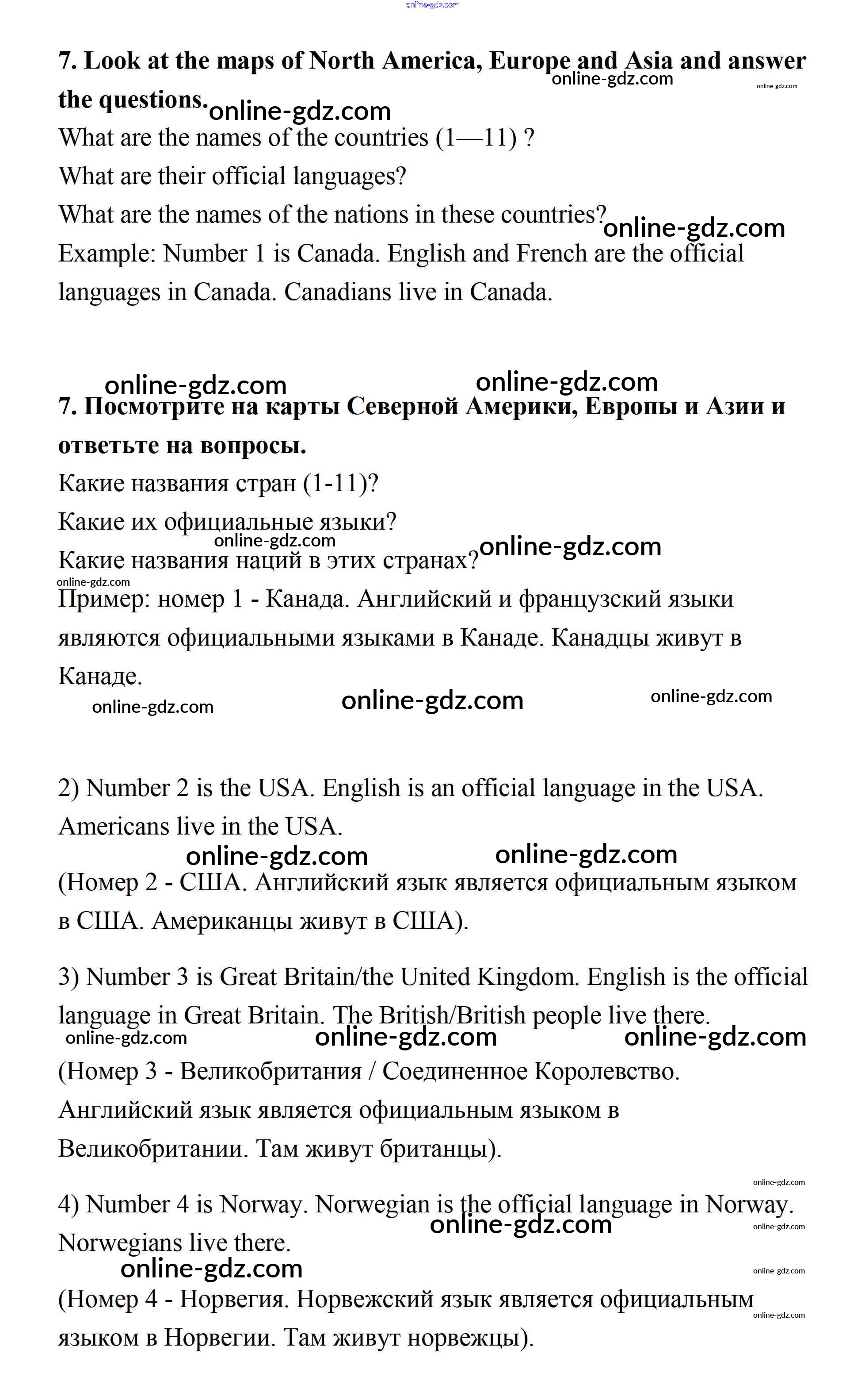 Готовые домашние задания по Английскому языку за 7 класс Учебник Афанасьева, Михеева Rainbow 2019 - Step 7 UNIT 3. SOME FACTS ABOUT THE ENGLISH-SPEAKING WORLD. 7