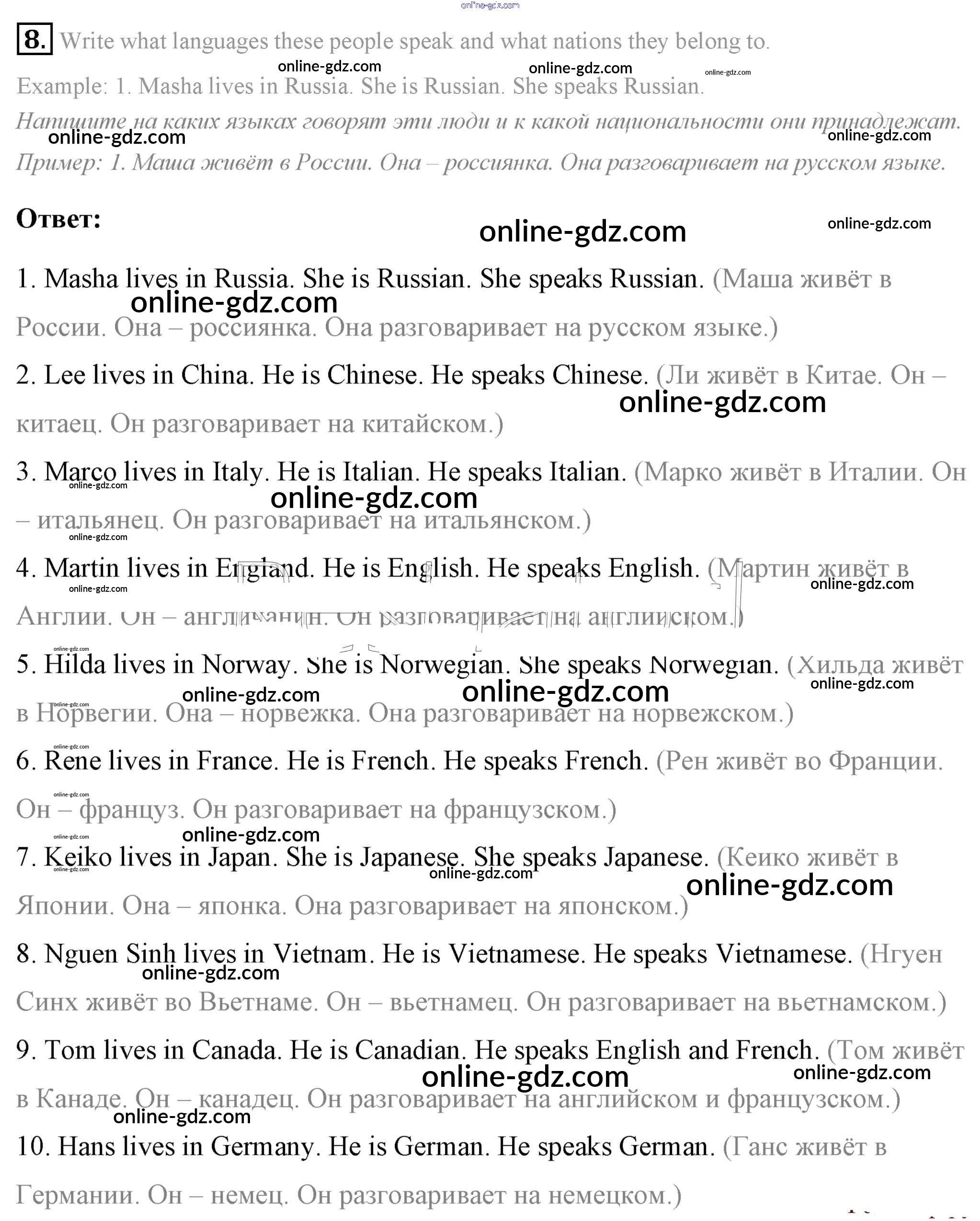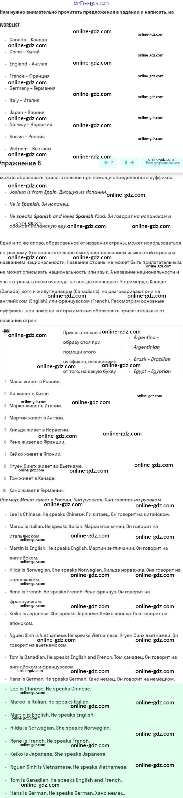 Готовые домашние задания по Английскому языку за 7 класс Учебник Афанасьева, Михеева Rainbow 2019 - Step 7 UNIT 3. SOME FACTS ABOUT THE ENGLISH-SPEAKING WORLD. 8