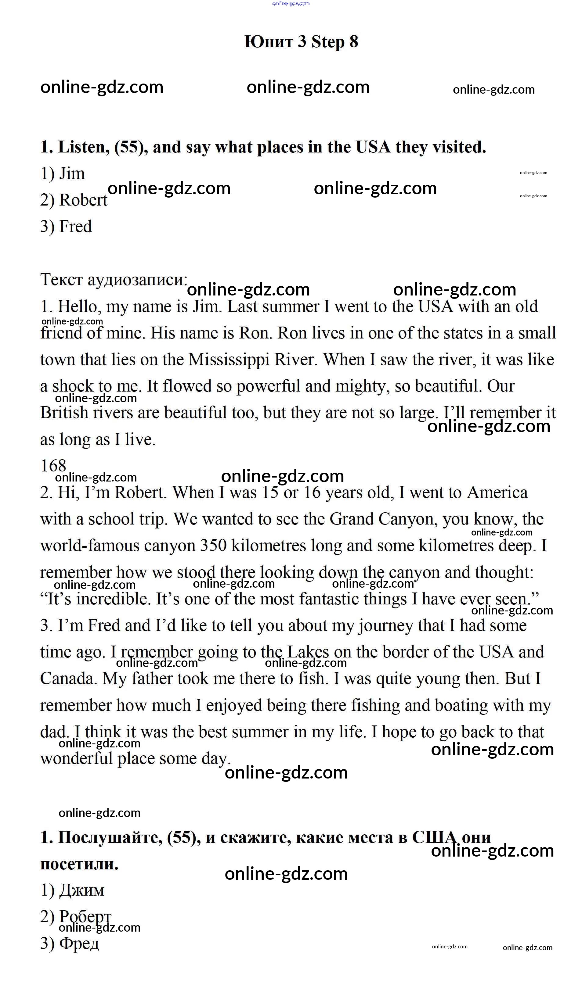 Готовые домашние задания по Английскому языку за 7 класс Учебник Афанасьева, Михеева Rainbow 2019 - Step 8 UNIT 3. SOME FACTS ABOUT THE ENGLISH-SPEAKING WORLD. 1