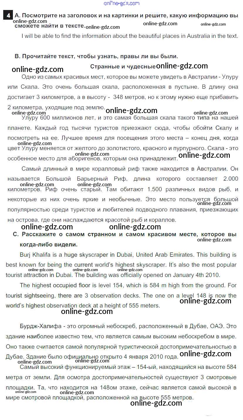 Готовые домашние задания по Английскому языку за 7 класс Учебник Афанасьева, Михеева Rainbow 2019 - Step 8 UNIT 3. SOME FACTS ABOUT THE ENGLISH-SPEAKING WORLD. 4