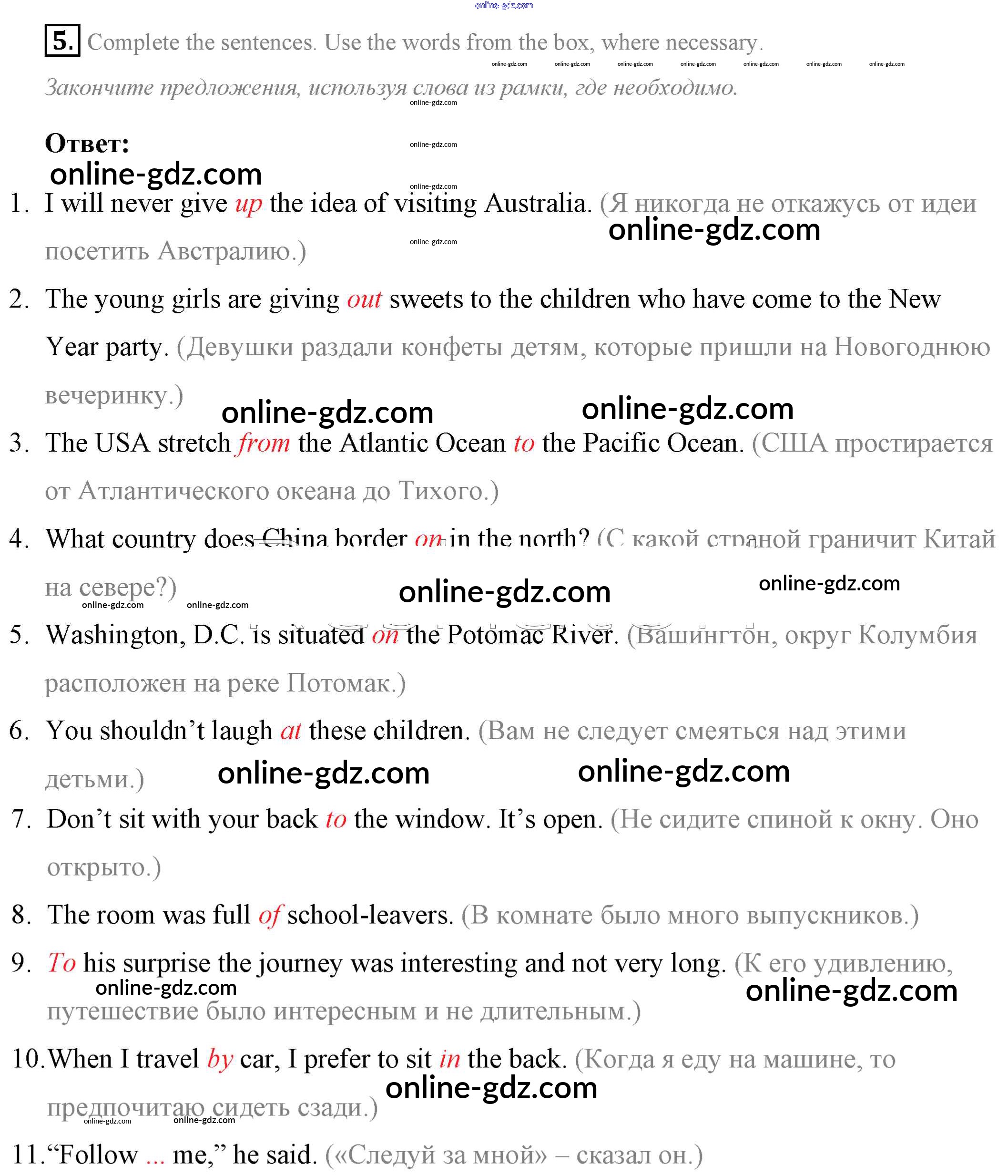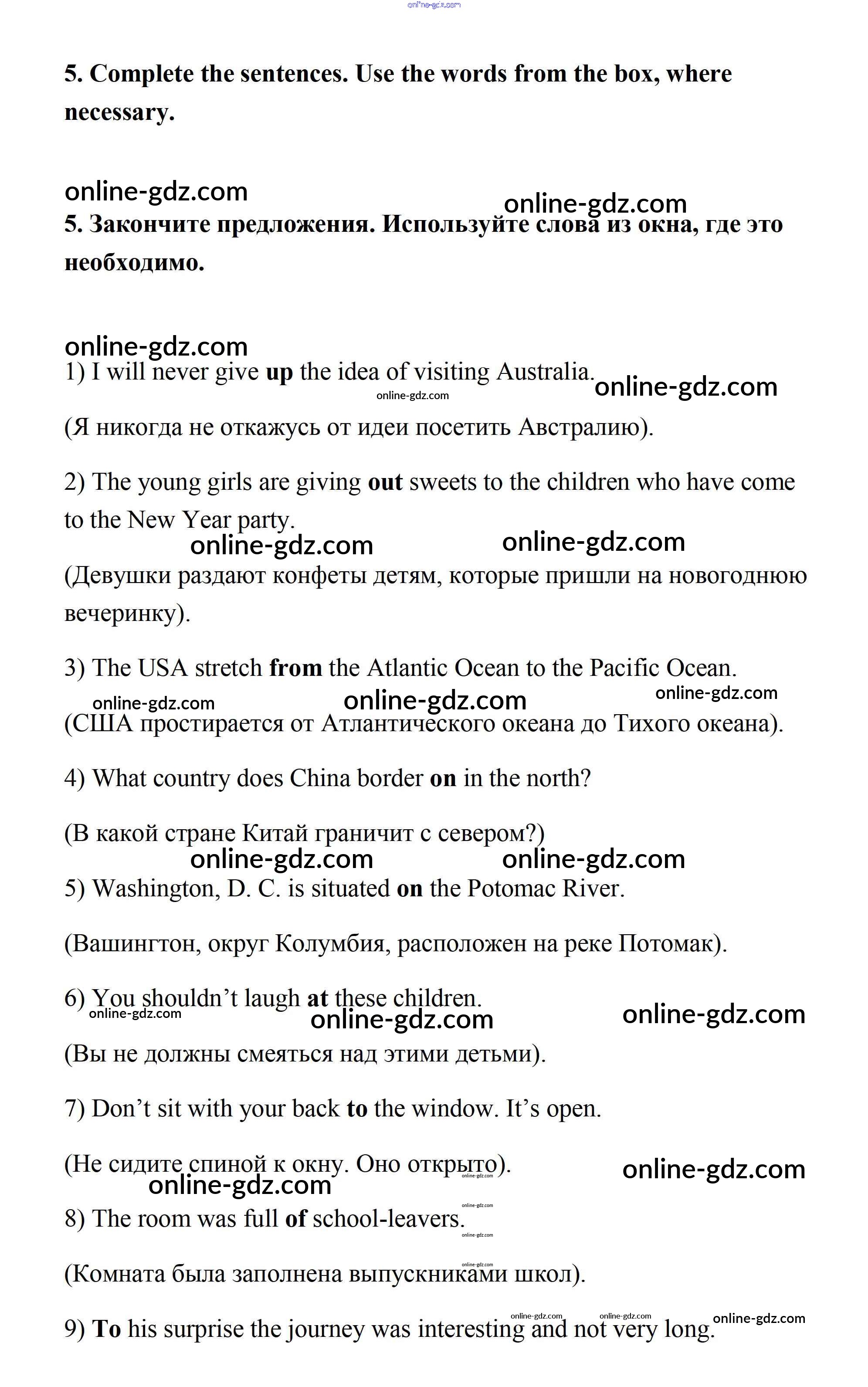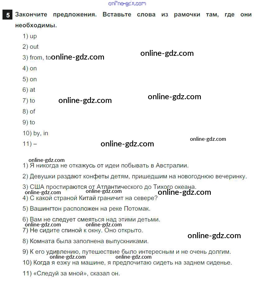 Готовые домашние задания по Английскому языку за 7 класс Учебник Афанасьева, Михеева Rainbow 2019 - Step 9 Consolidation Class: UNIT 3. SOME FACTS ABOUT THE ENGLISH-SPEAKING WORLD. 5