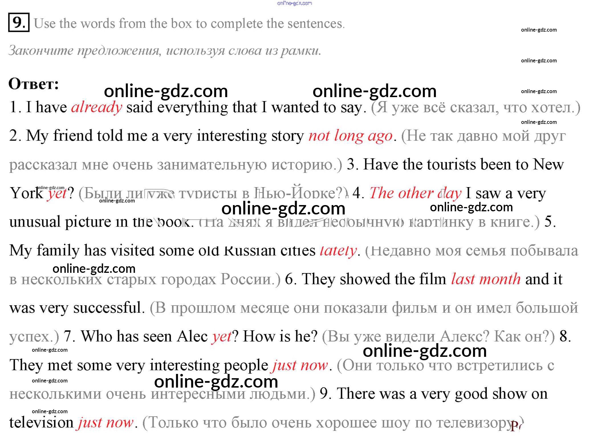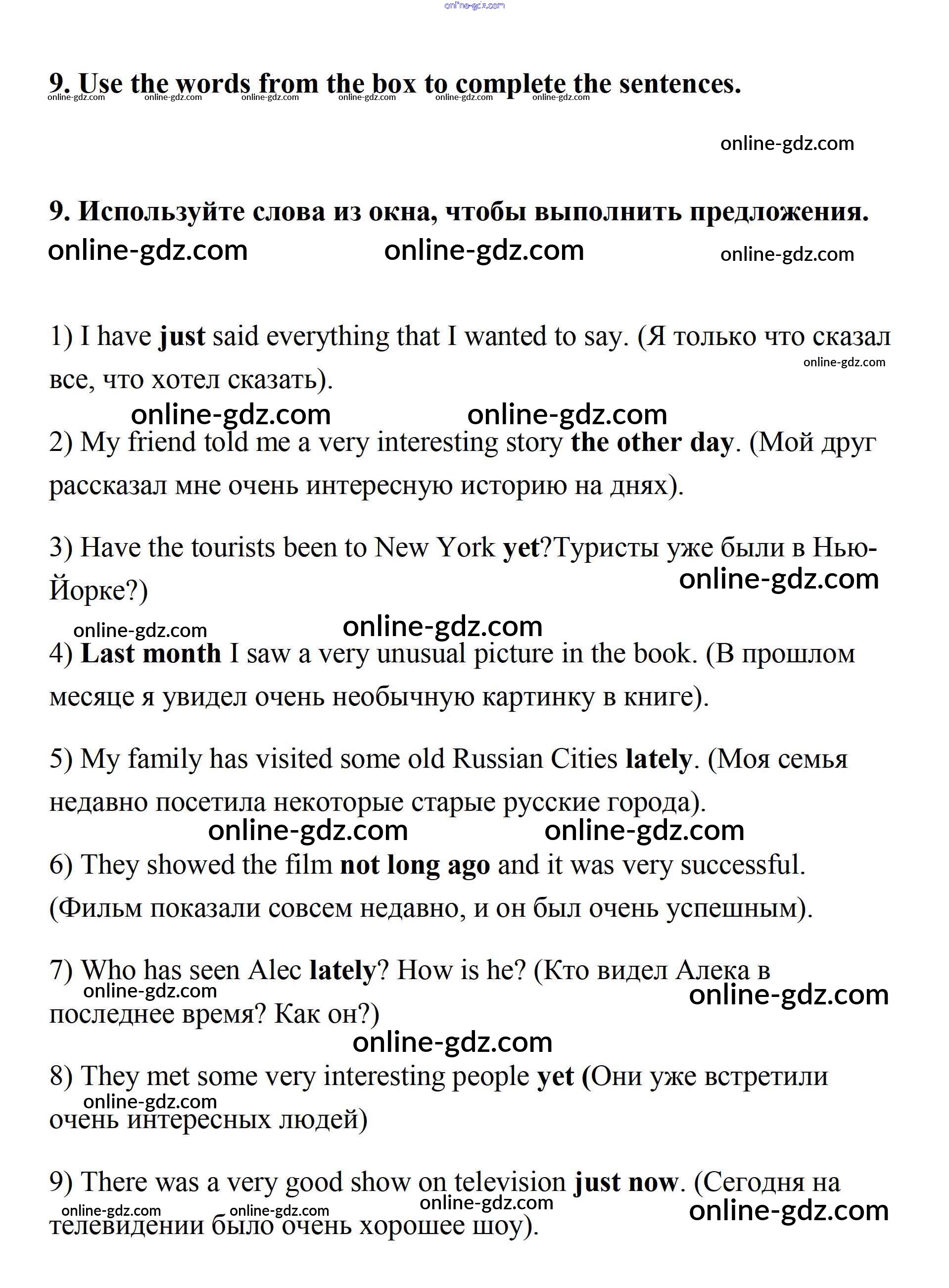 Готовые домашние задания по Английскому языку за 7 класс Учебник Афанасьева, Михеева Rainbow 2019 - Step 9 Consolidation Class: UNIT 3. SOME FACTS ABOUT THE ENGLISH-SPEAKING WORLD. 9