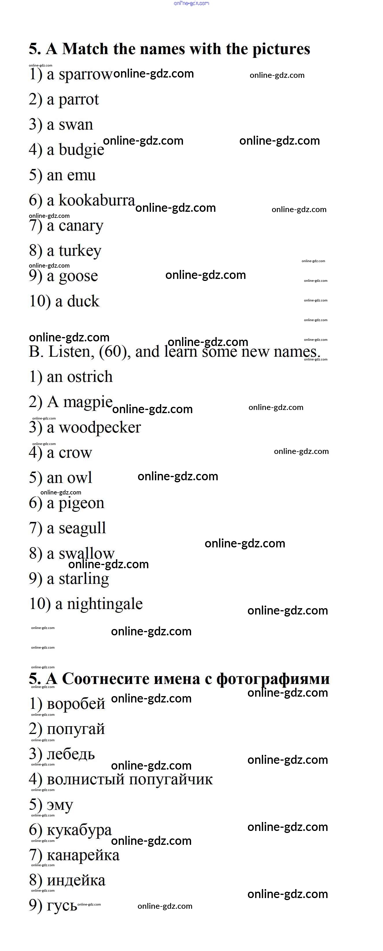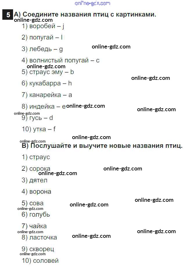 Готовые домашние задания по Английскому языку за 7 класс Учебник Афанасьева, Михеева Rainbow 2019 - Step 1 UNIT 4. LIVING THINGS AROUND US. 5