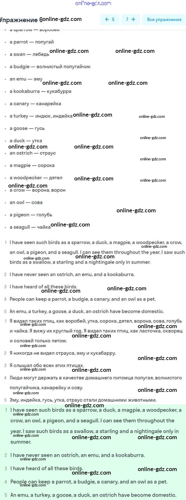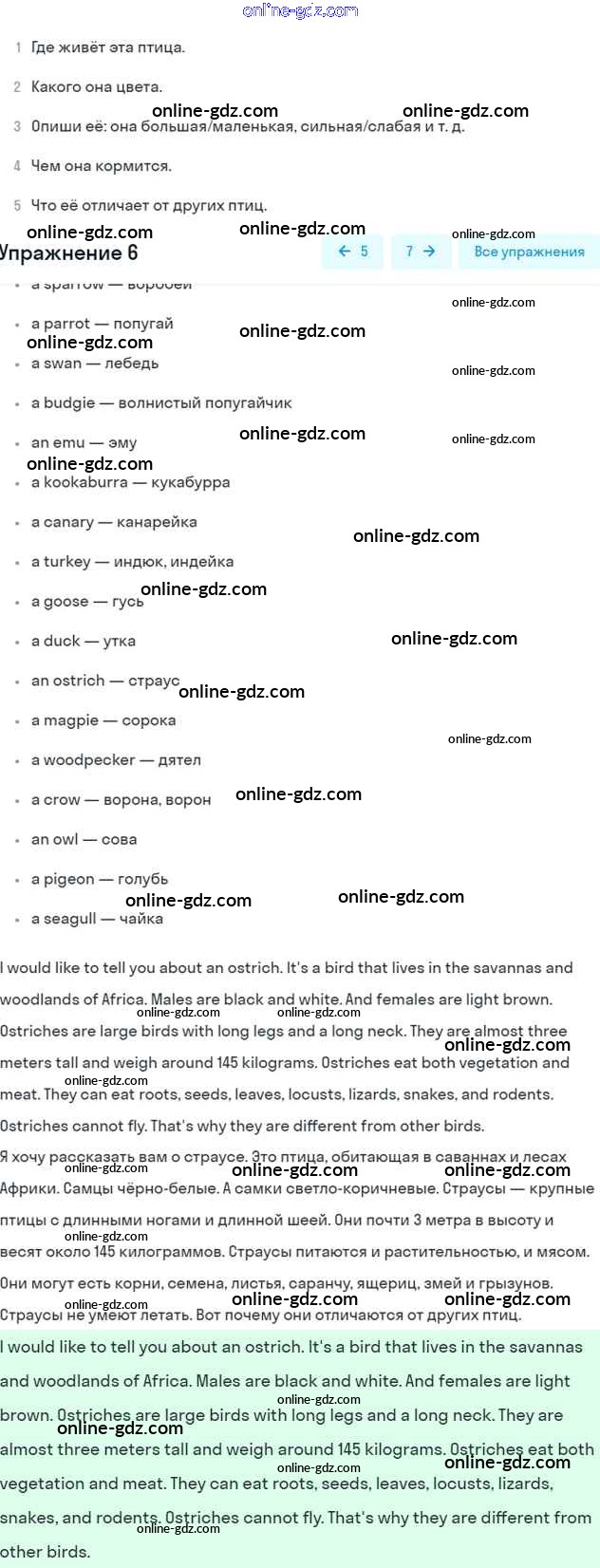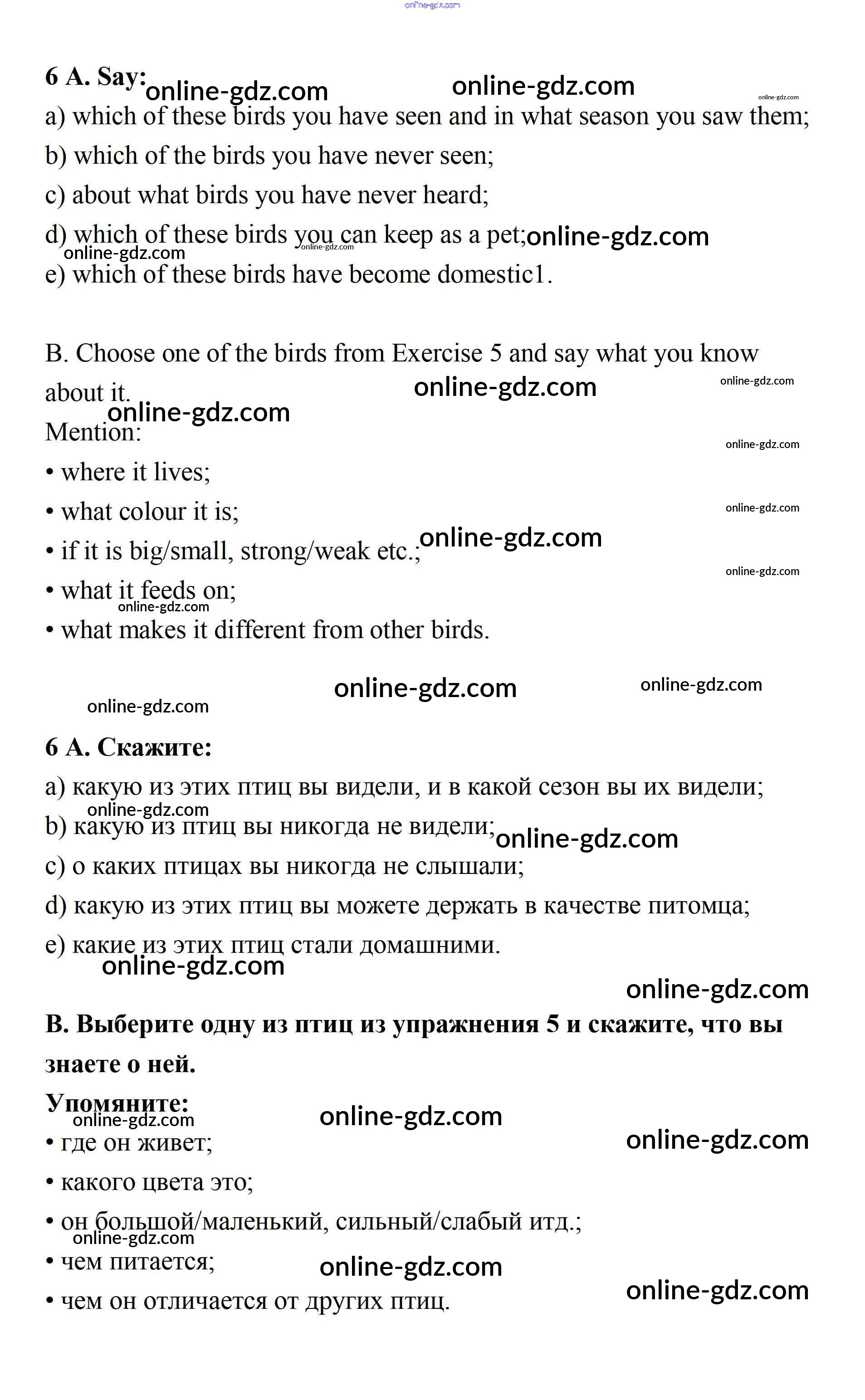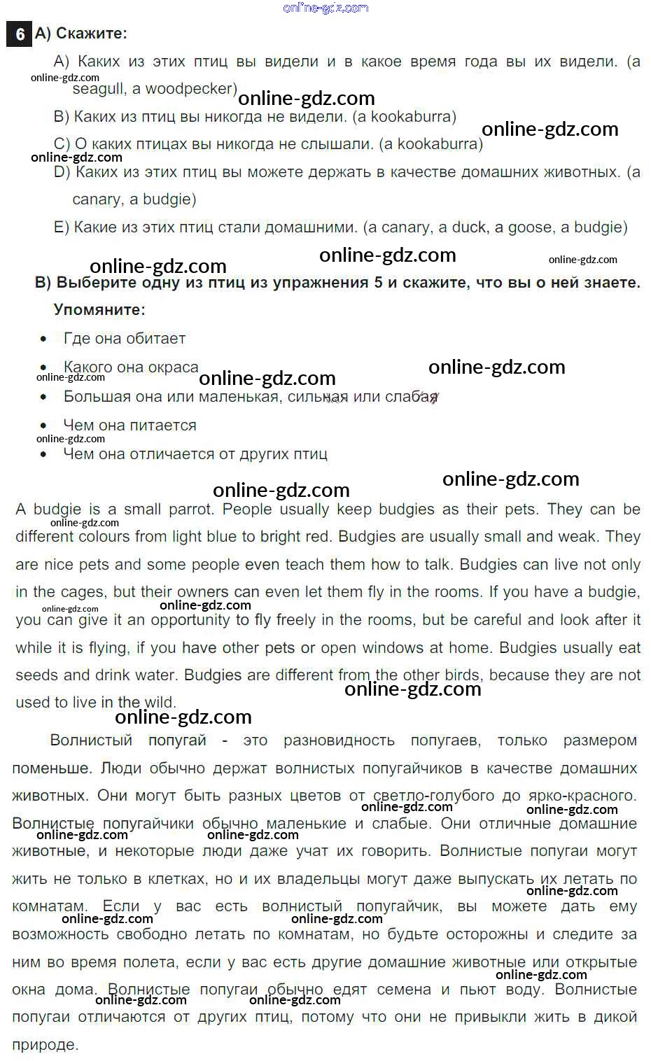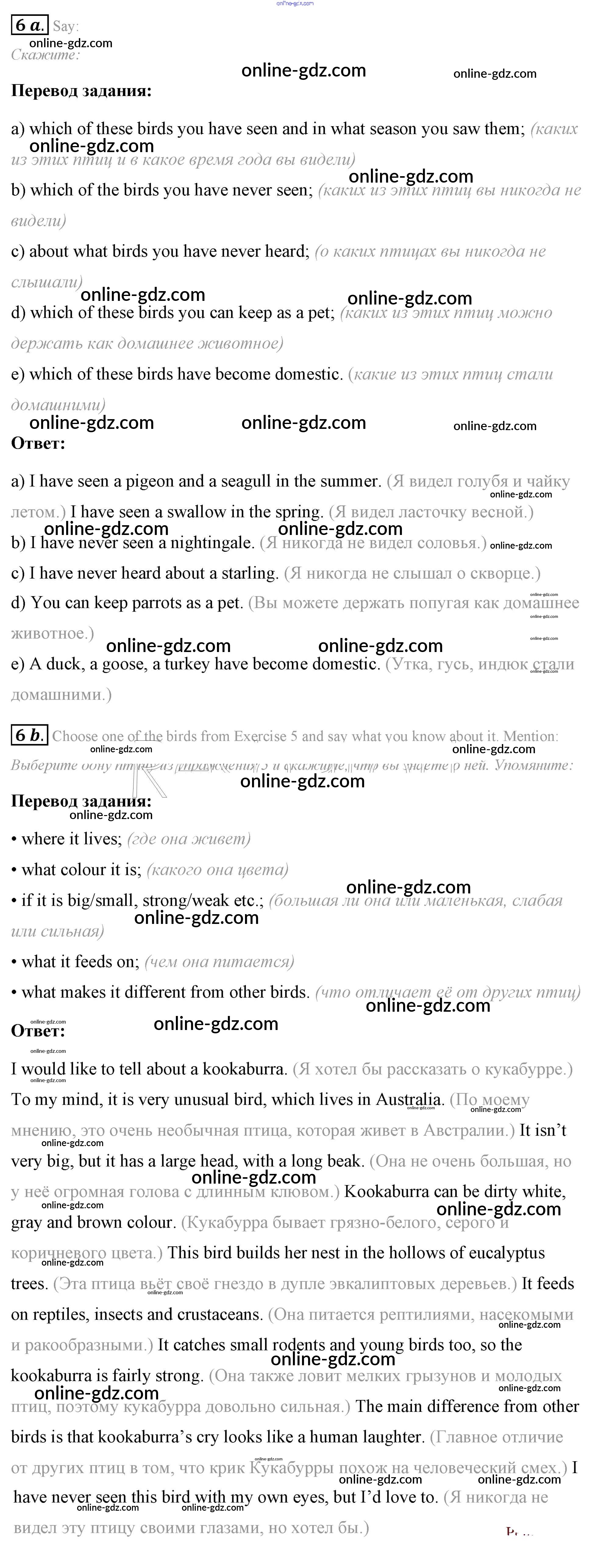 Готовые домашние задания по Английскому языку за 7 класс Учебник Афанасьева, Михеева Rainbow 2019 - Step 1 UNIT 4. LIVING THINGS AROUND US. 6