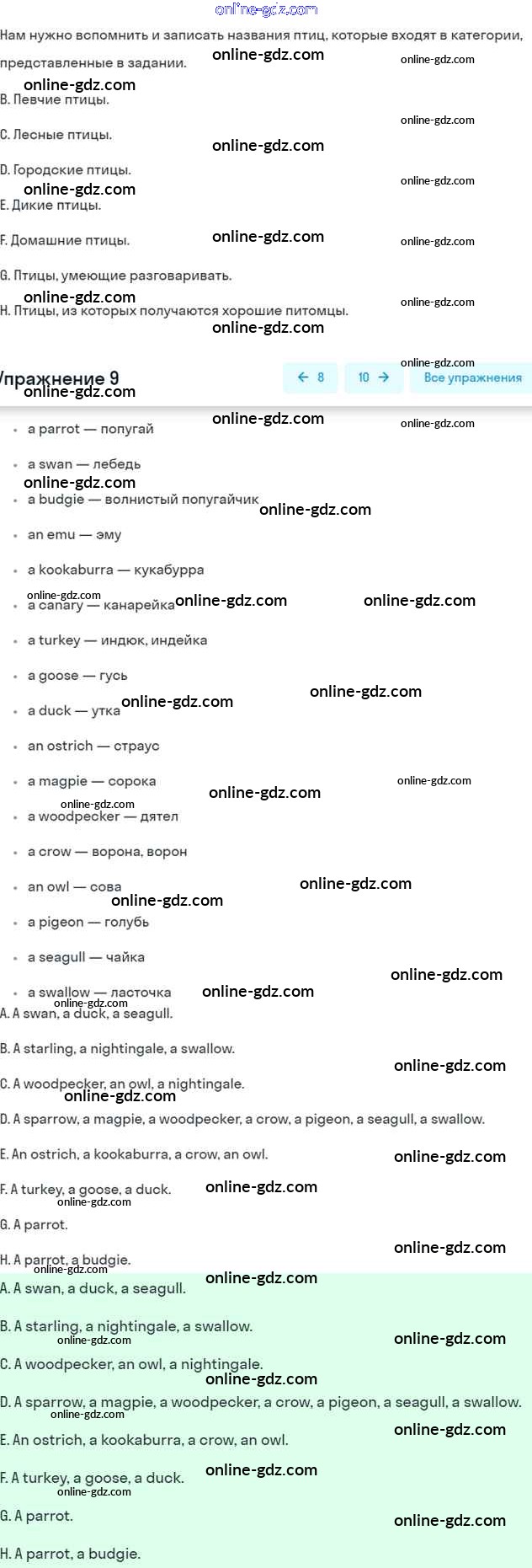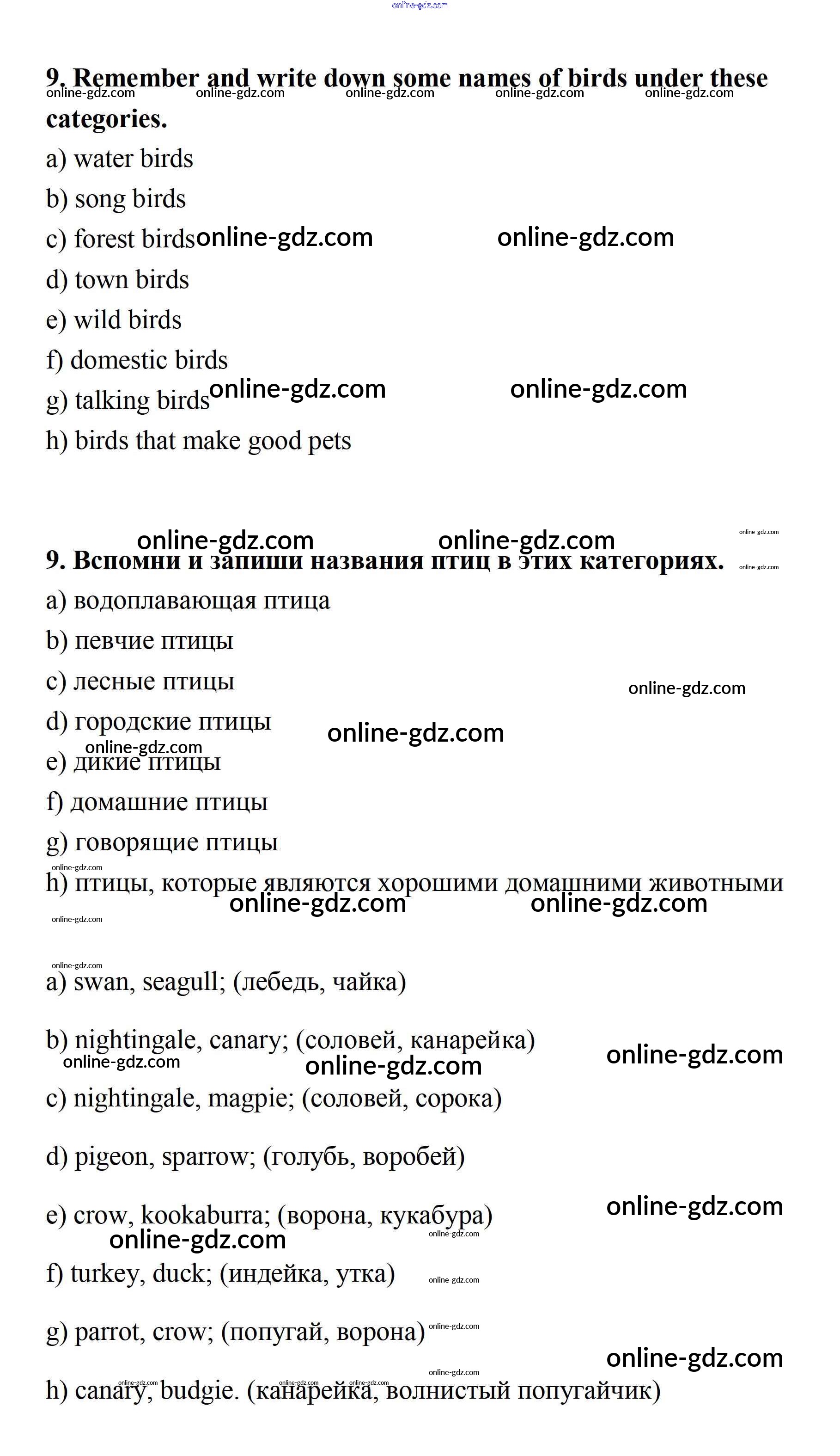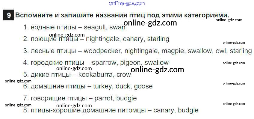 Готовые домашние задания по Английскому языку за 7 класс Учебник Афанасьева, Михеева Rainbow 2019 - Step 1 UNIT 4. LIVING THINGS AROUND US. 9