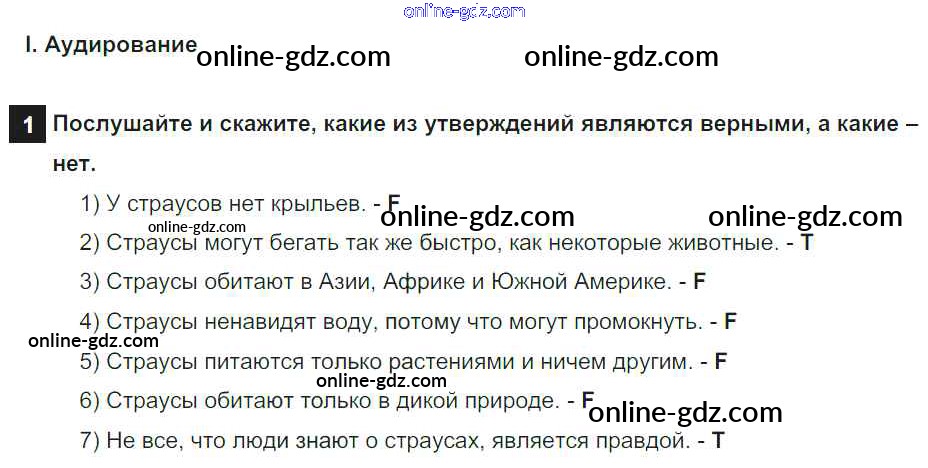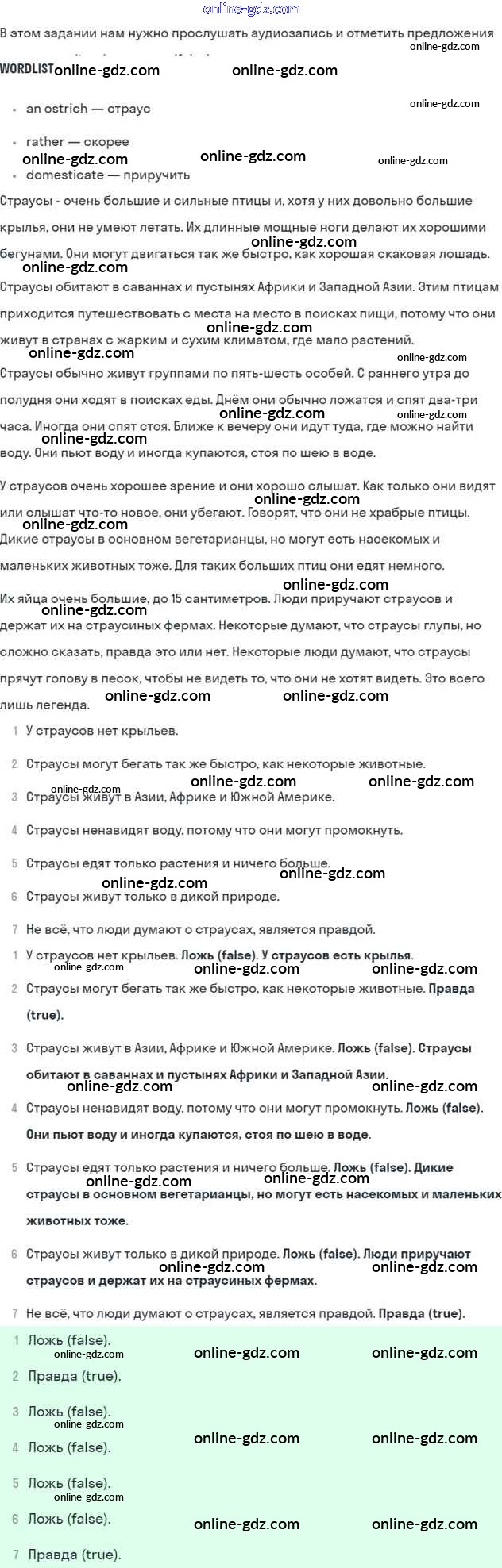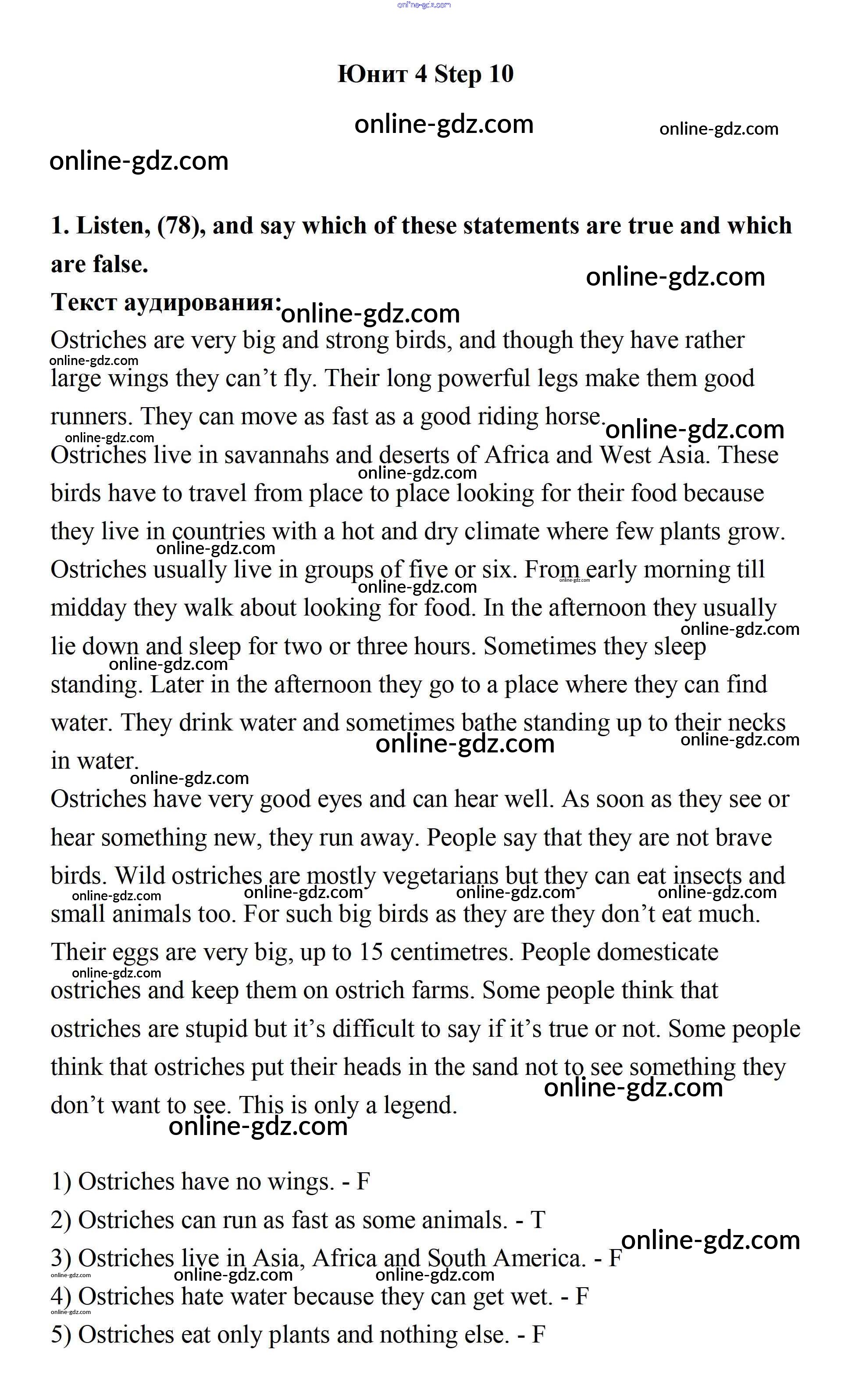Готовые домашние задания по Английскому языку за 7 класс Учебник Афанасьева, Михеева Rainbow 2019 - Step 10 Test Yourself: UNIT 4. LIVING THINGS AROUND US. 1