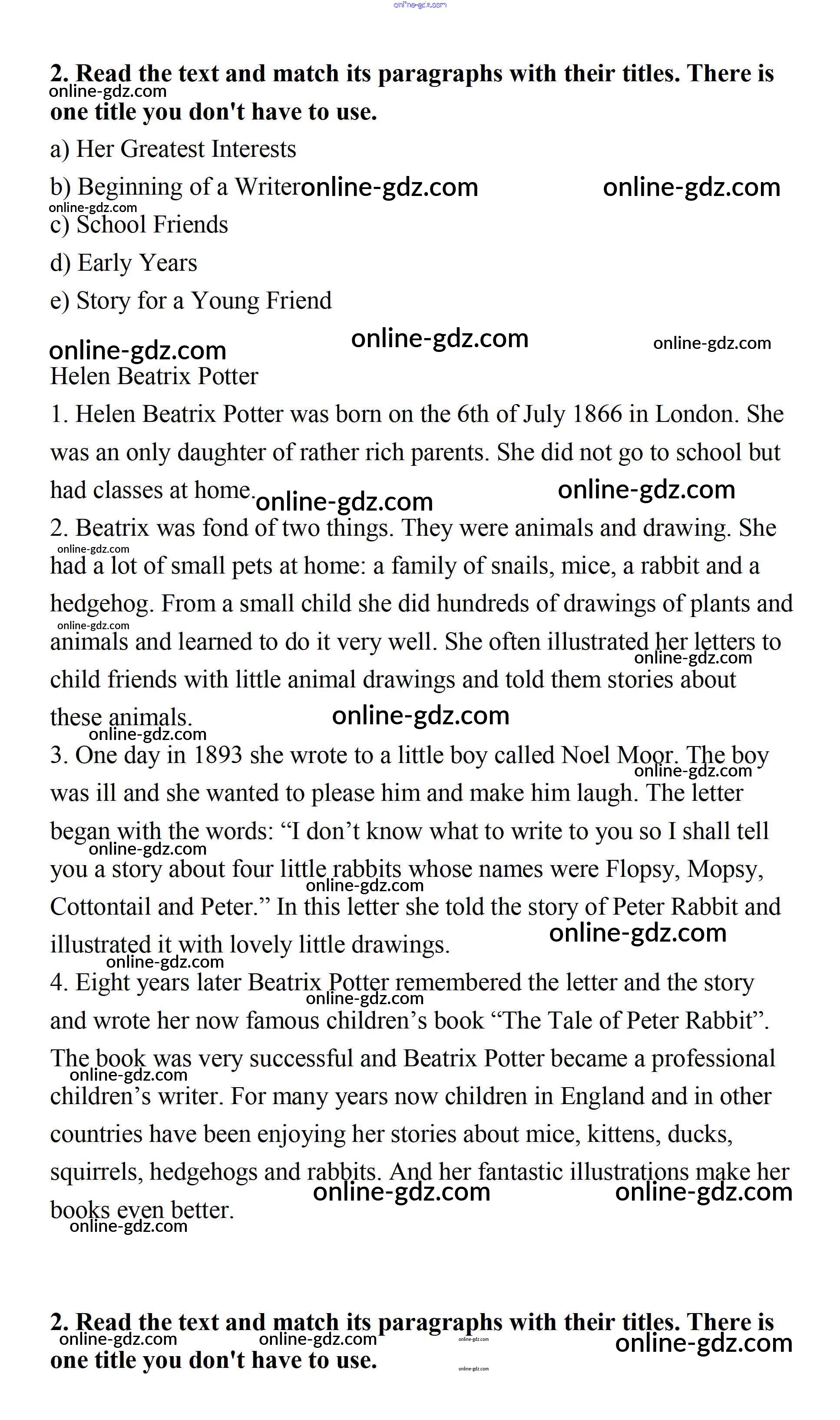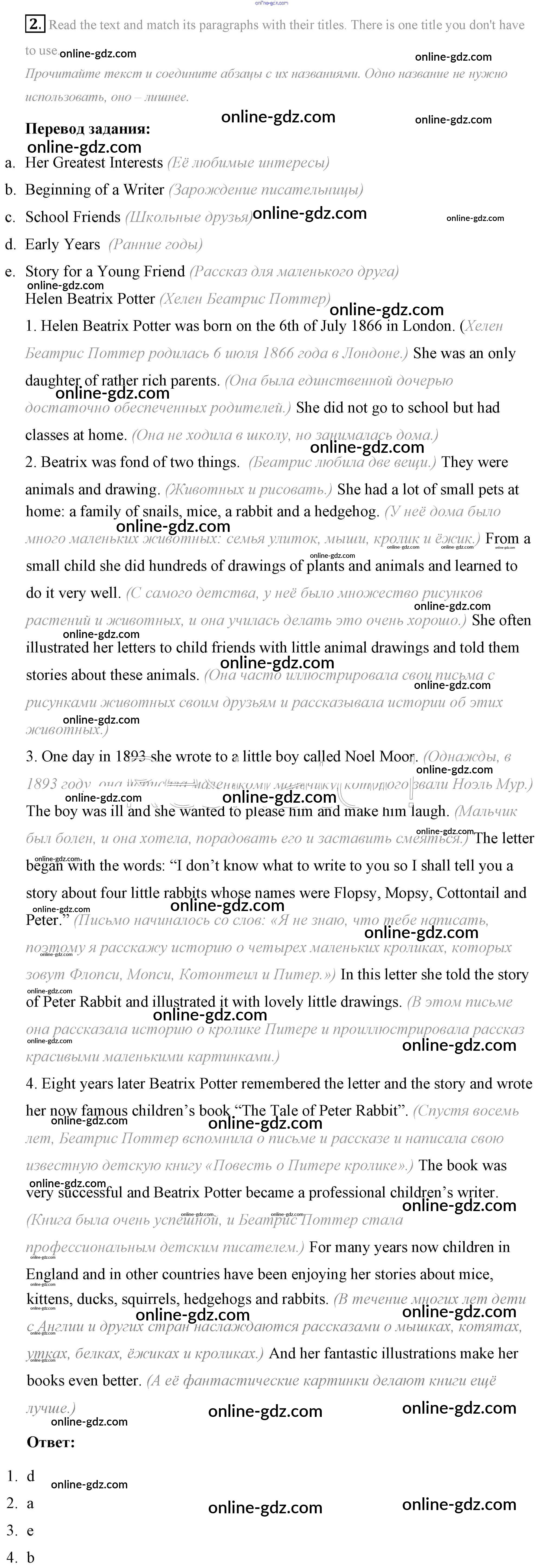 Готовые домашние задания по Английскому языку за 7 класс Учебник Афанасьева, Михеева Rainbow 2019 - Step 10 Test Yourself: UNIT 4. LIVING THINGS AROUND US. 2