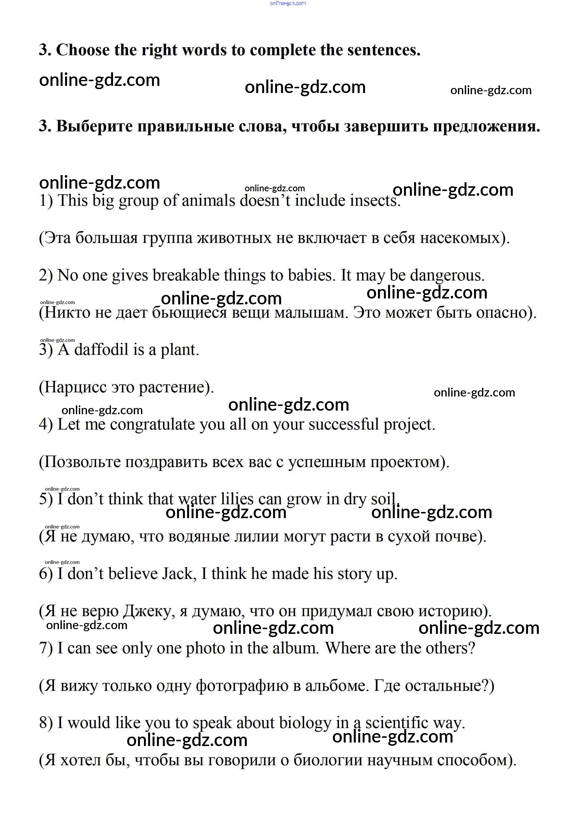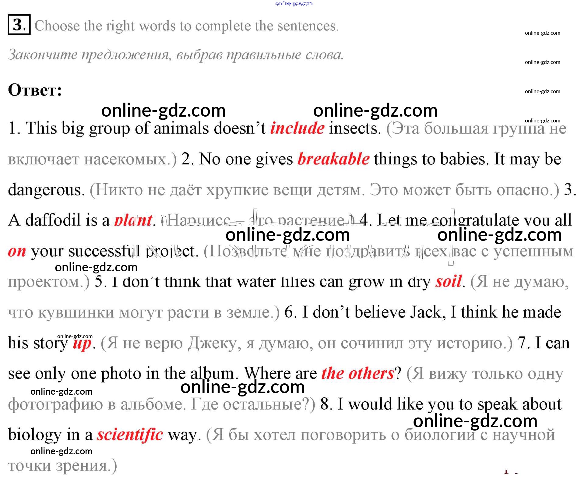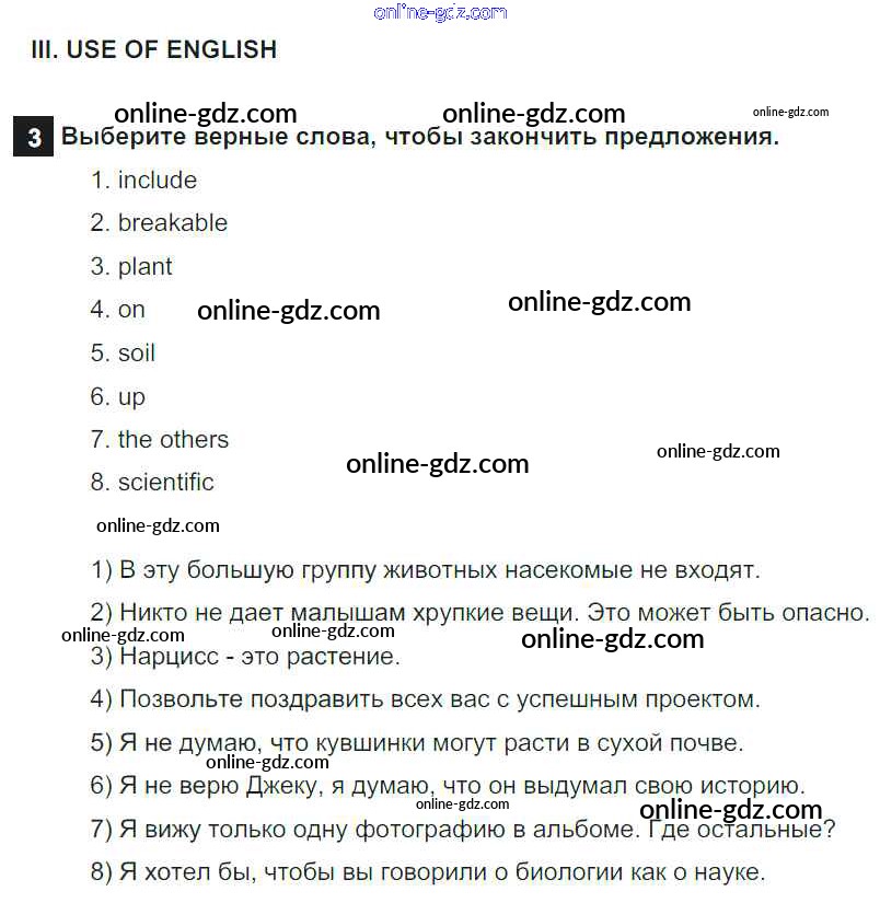 Готовые домашние задания по Английскому языку за 7 класс Учебник Афанасьева, Михеева Rainbow 2019 - Step 10 Test Yourself: UNIT 4. LIVING THINGS AROUND US. 3