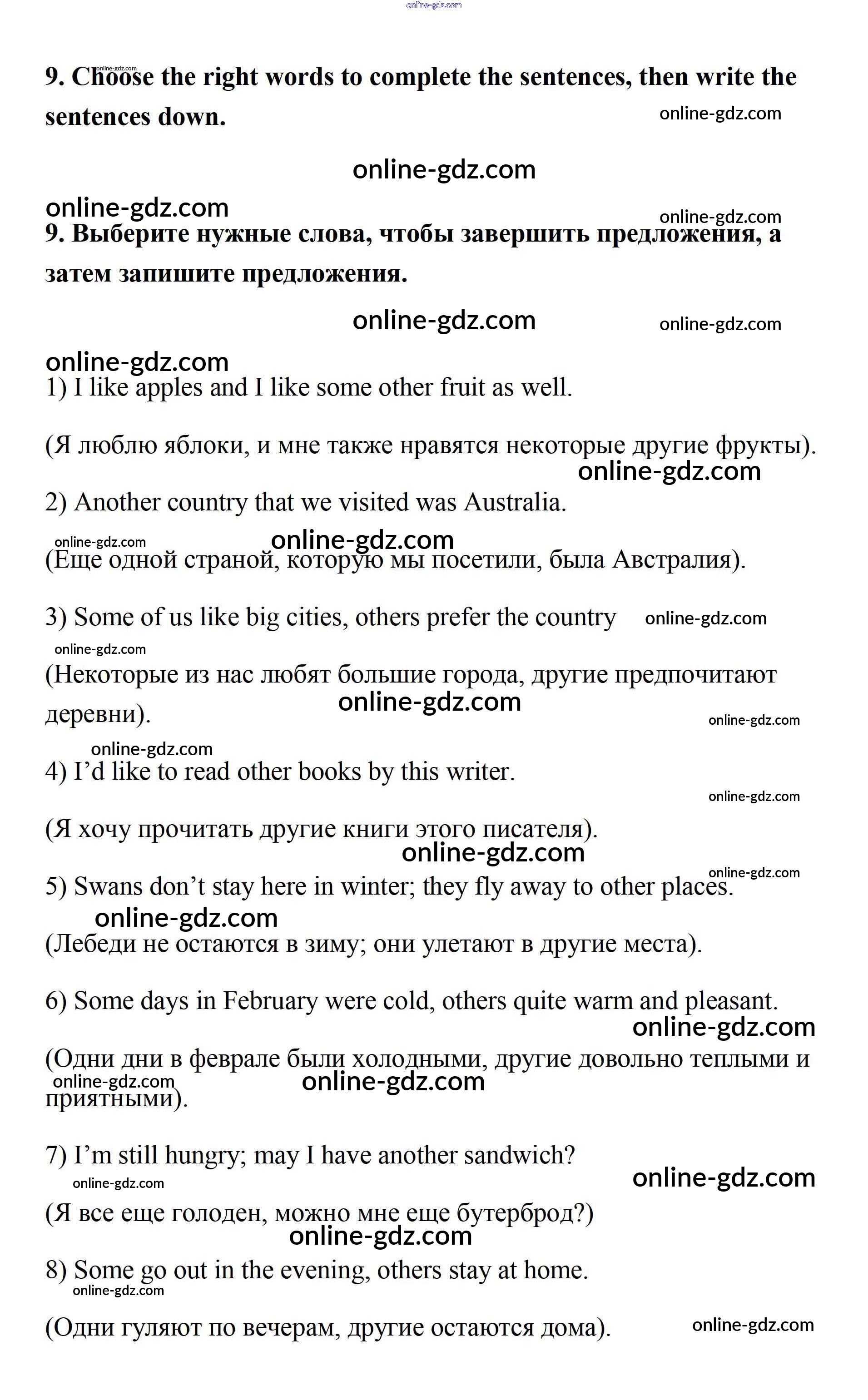 Готовые домашние задания по Английскому языку за 7 класс Учебник Афанасьева, Михеева Rainbow 2019 - Step 2 UNIT 4. LIVING THINGS AROUND US. 9