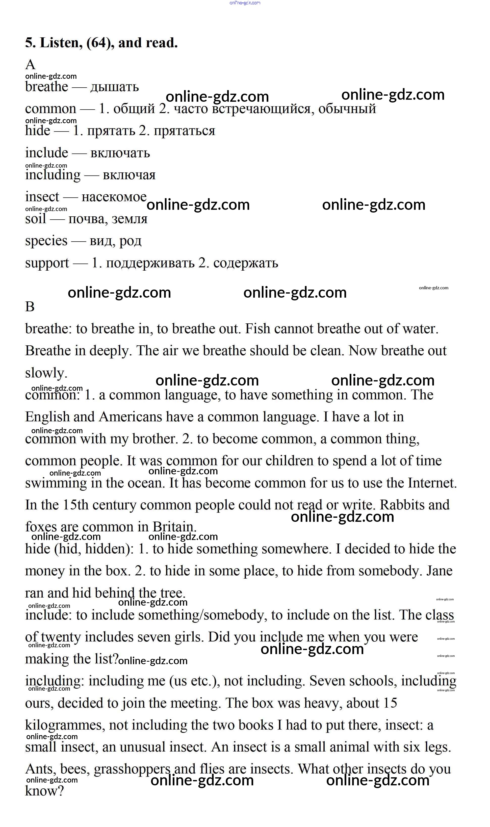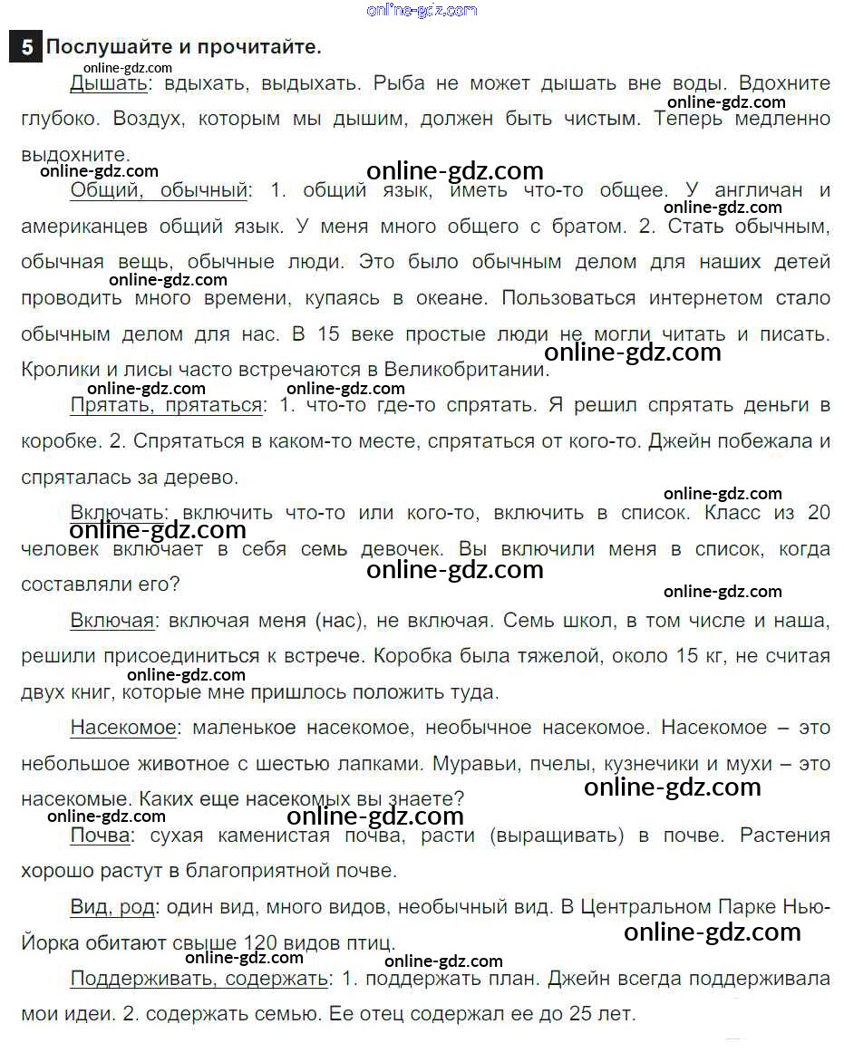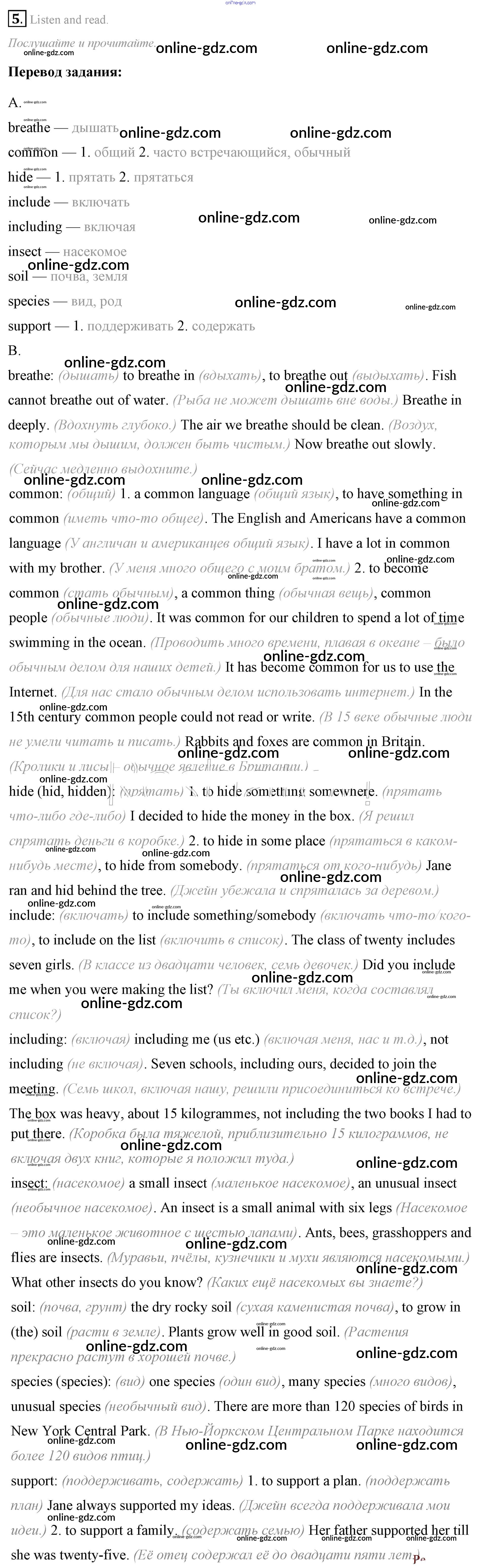 Готовые домашние задания по Английскому языку за 7 класс Учебник Афанасьева, Михеева Rainbow 2019 - Step 3 UNIT 4. LIVING THINGS AROUND US. 5