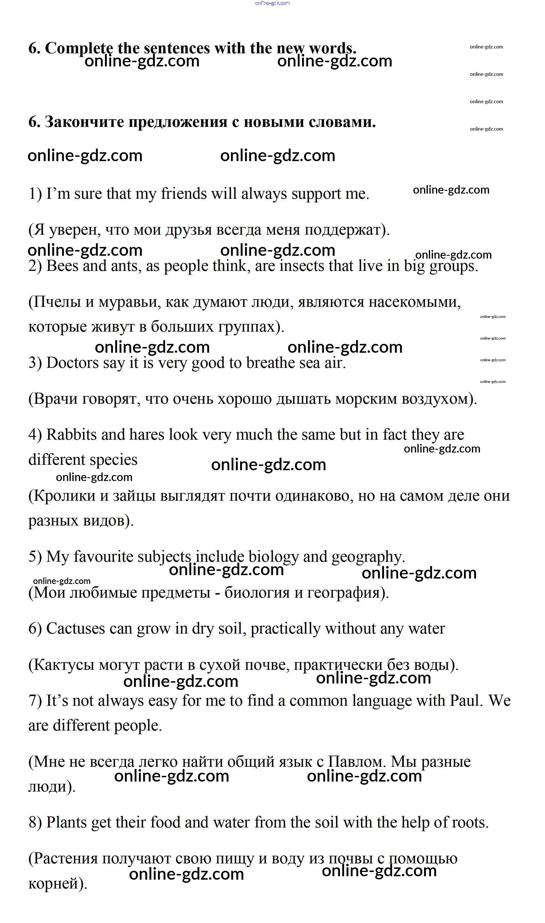 Готовые домашние задания по Английскому языку за 7 класс Учебник Афанасьева, Михеева Rainbow 2019 - Step 3 UNIT 4. LIVING THINGS AROUND US. 6