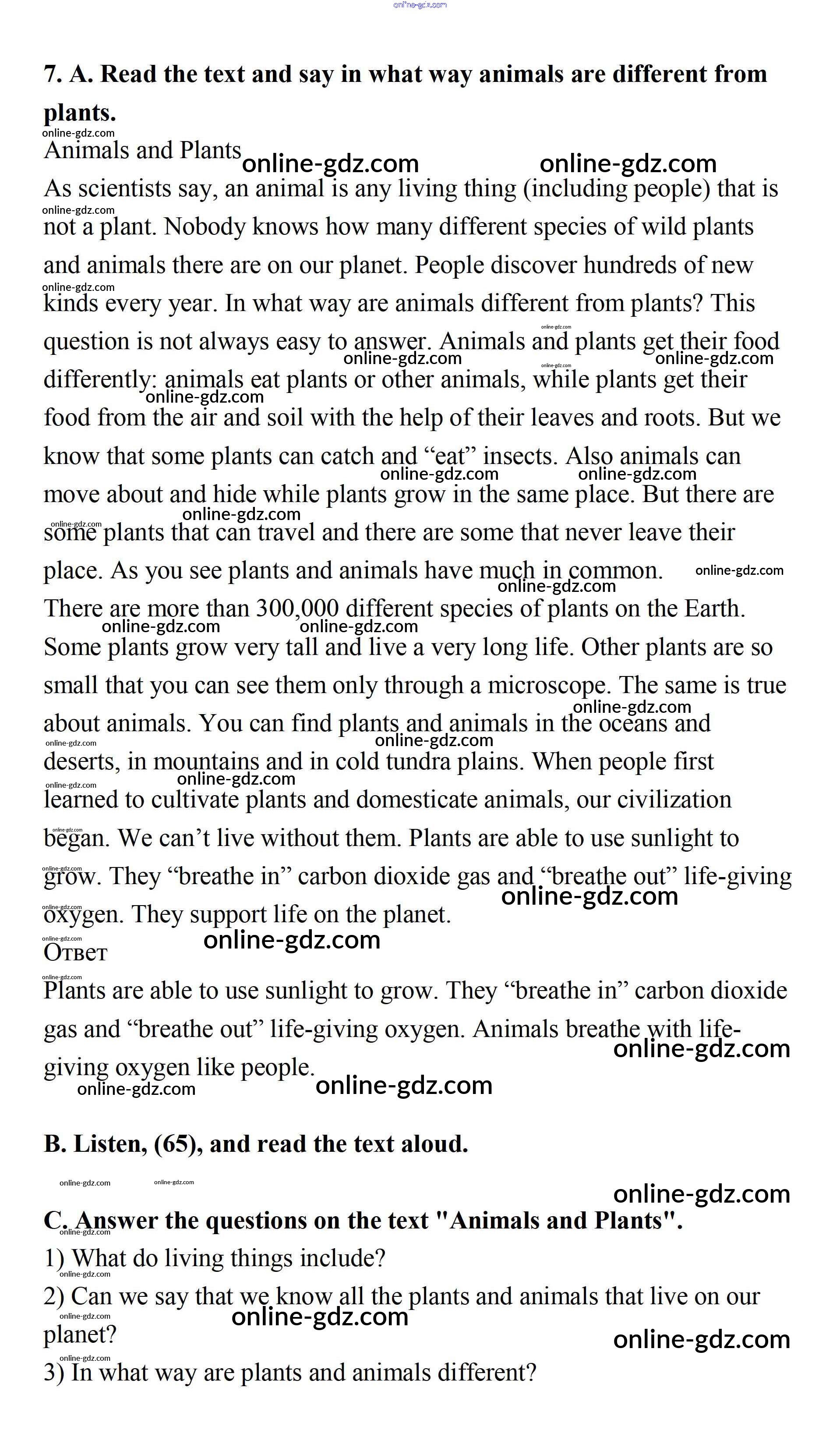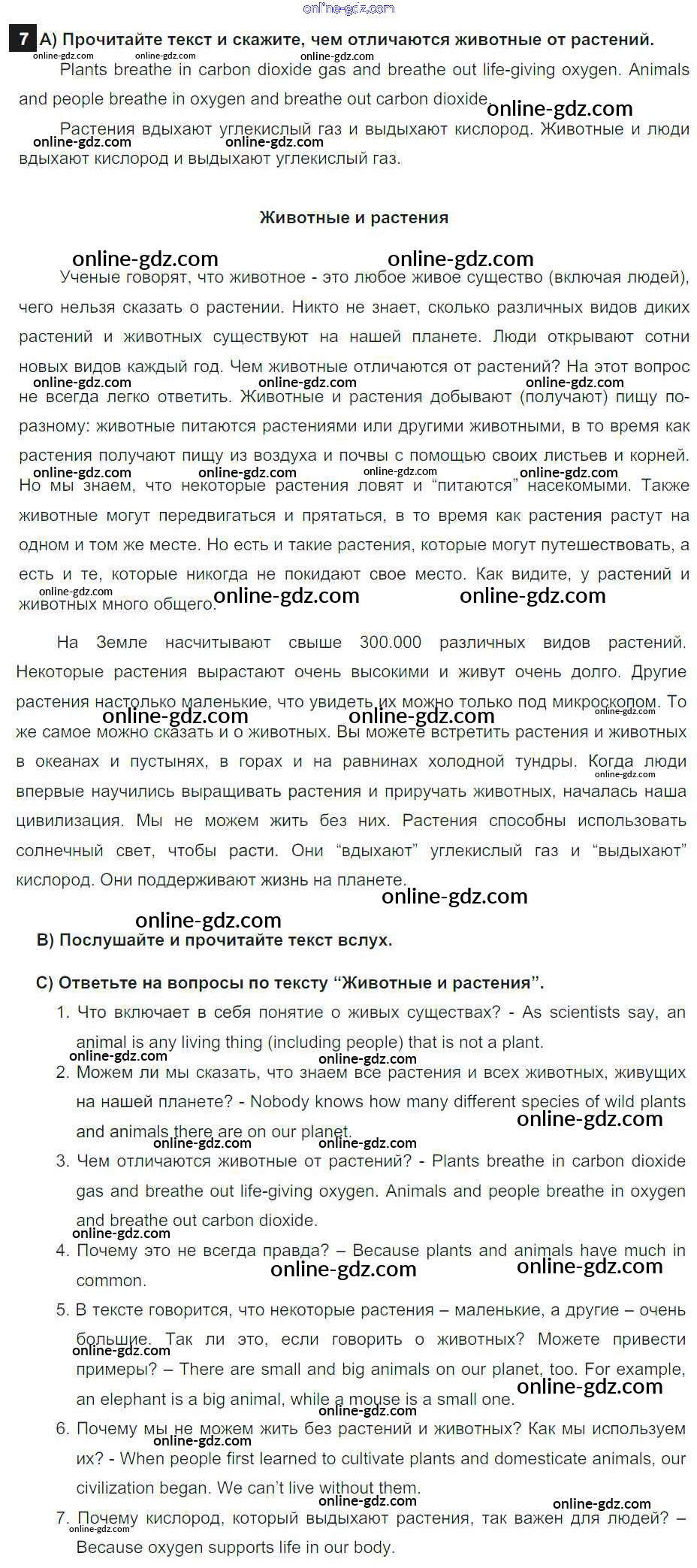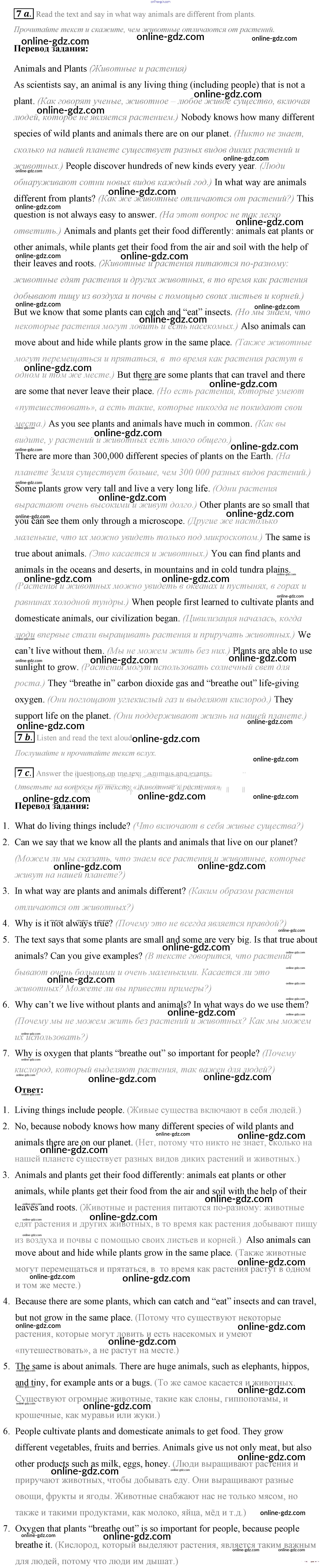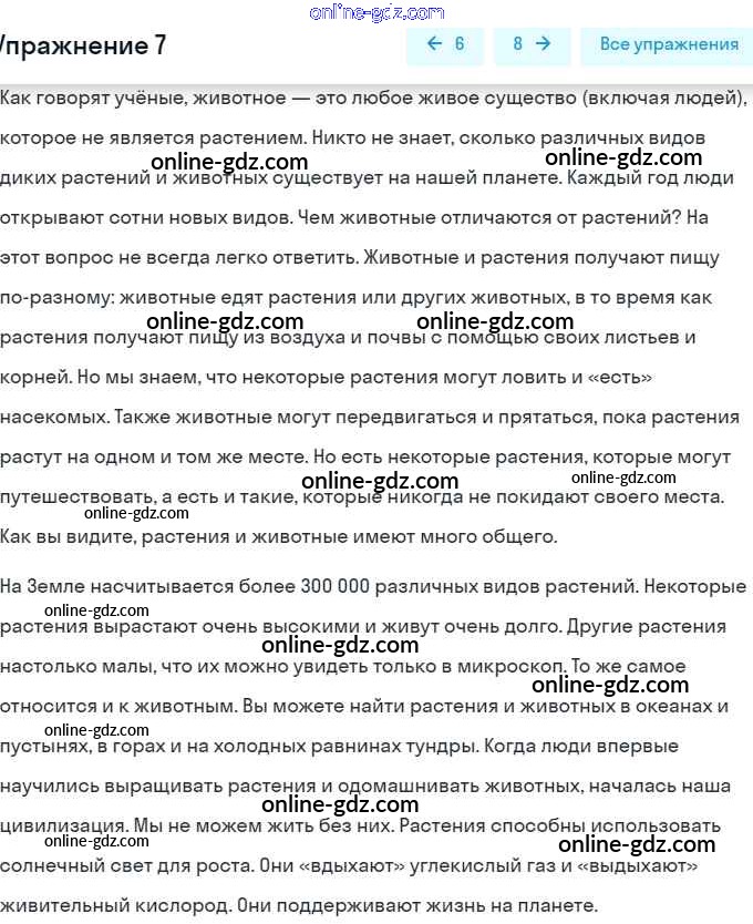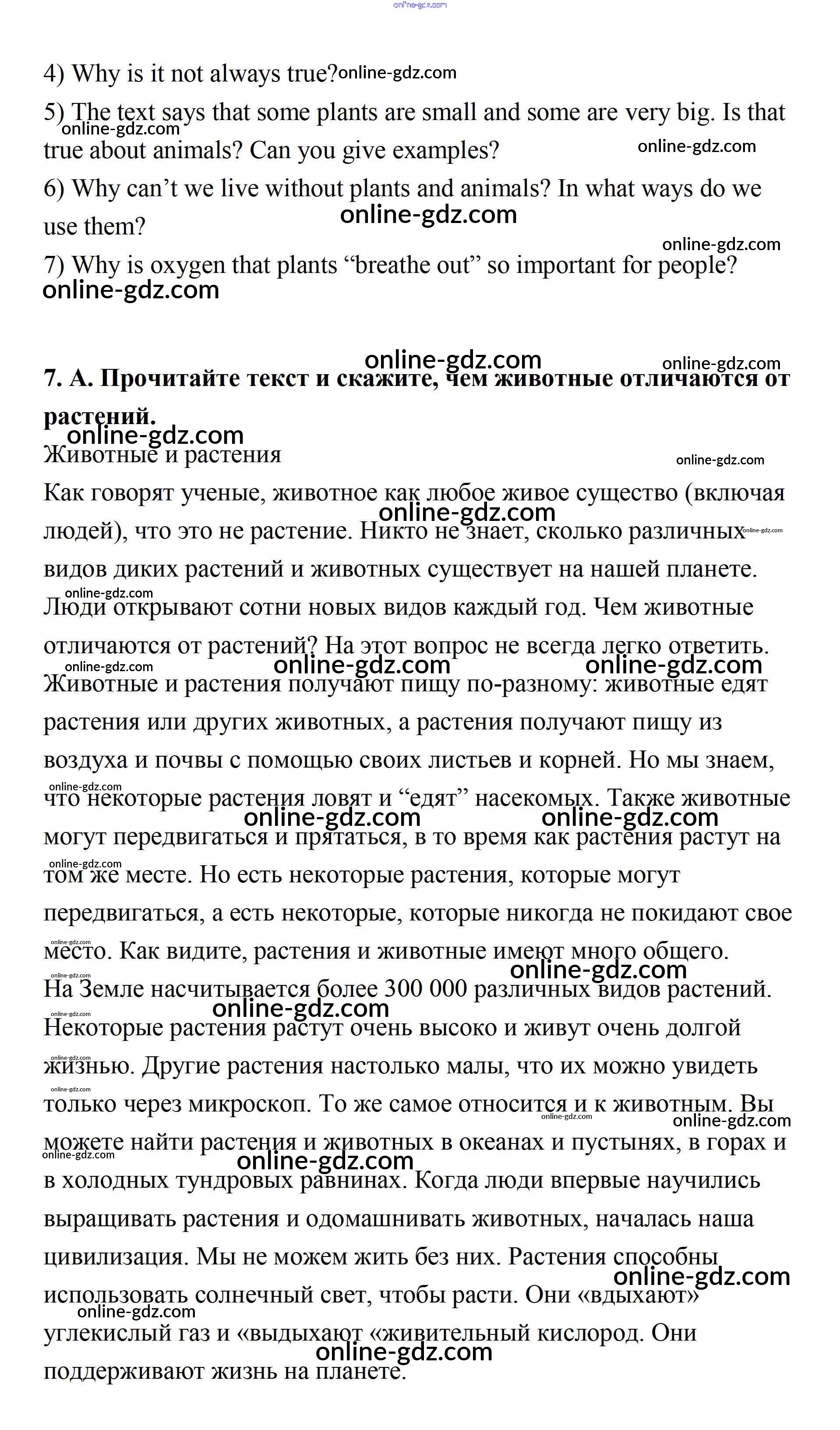 Готовые домашние задания по Английскому языку за 7 класс Учебник Афанасьева, Михеева Rainbow 2019 - Step 3 UNIT 4. LIVING THINGS AROUND US. 7