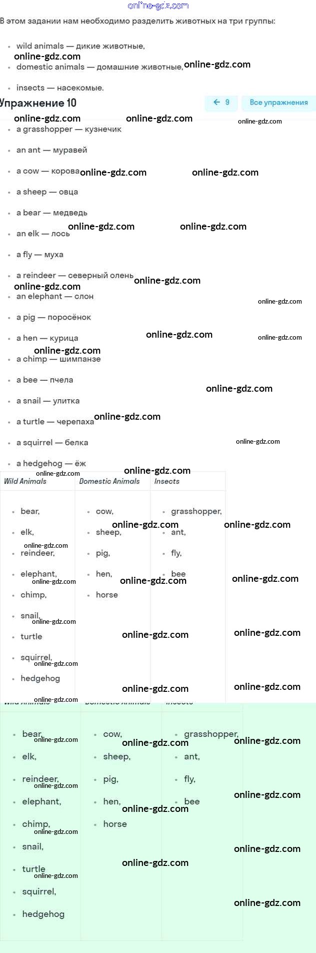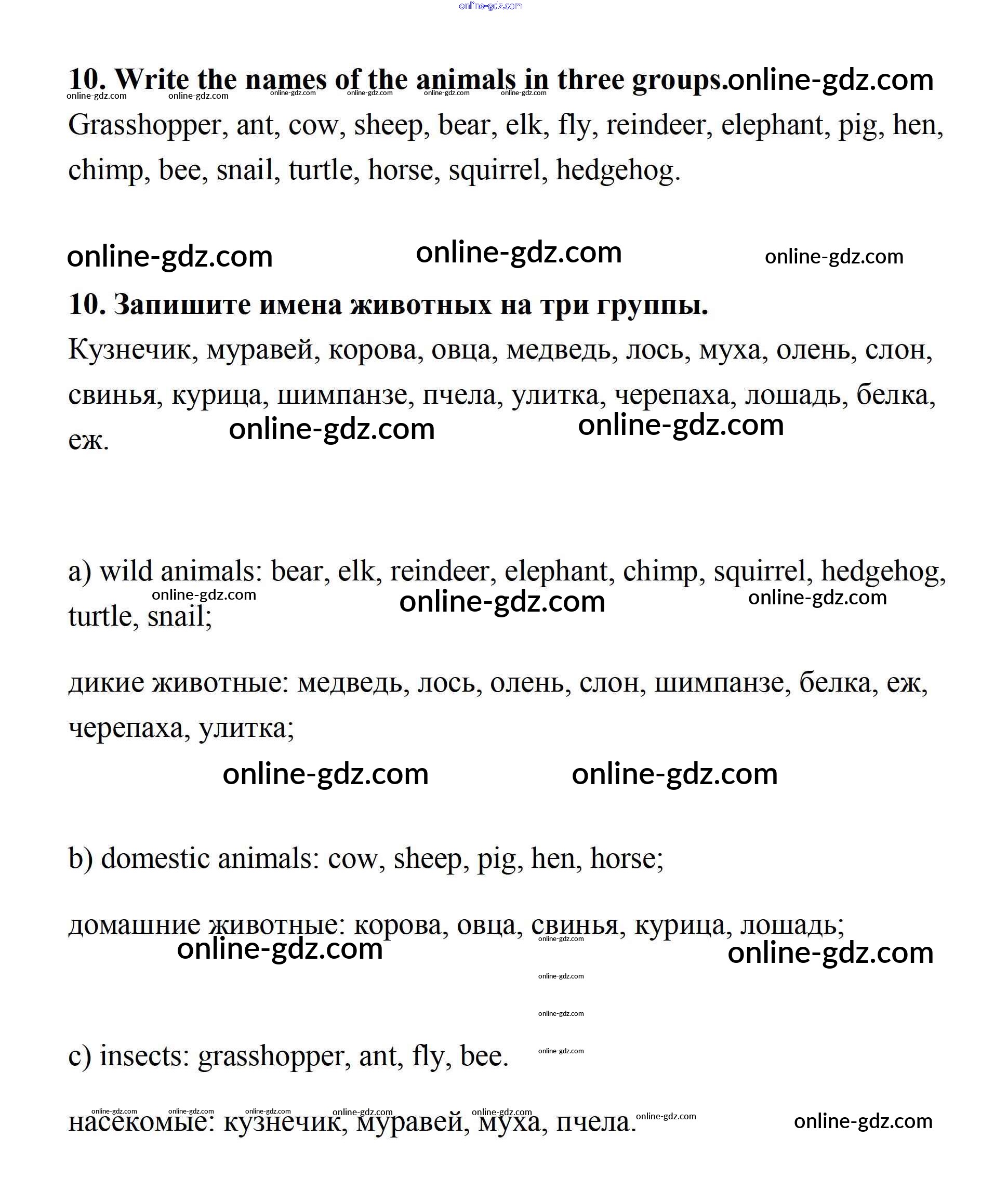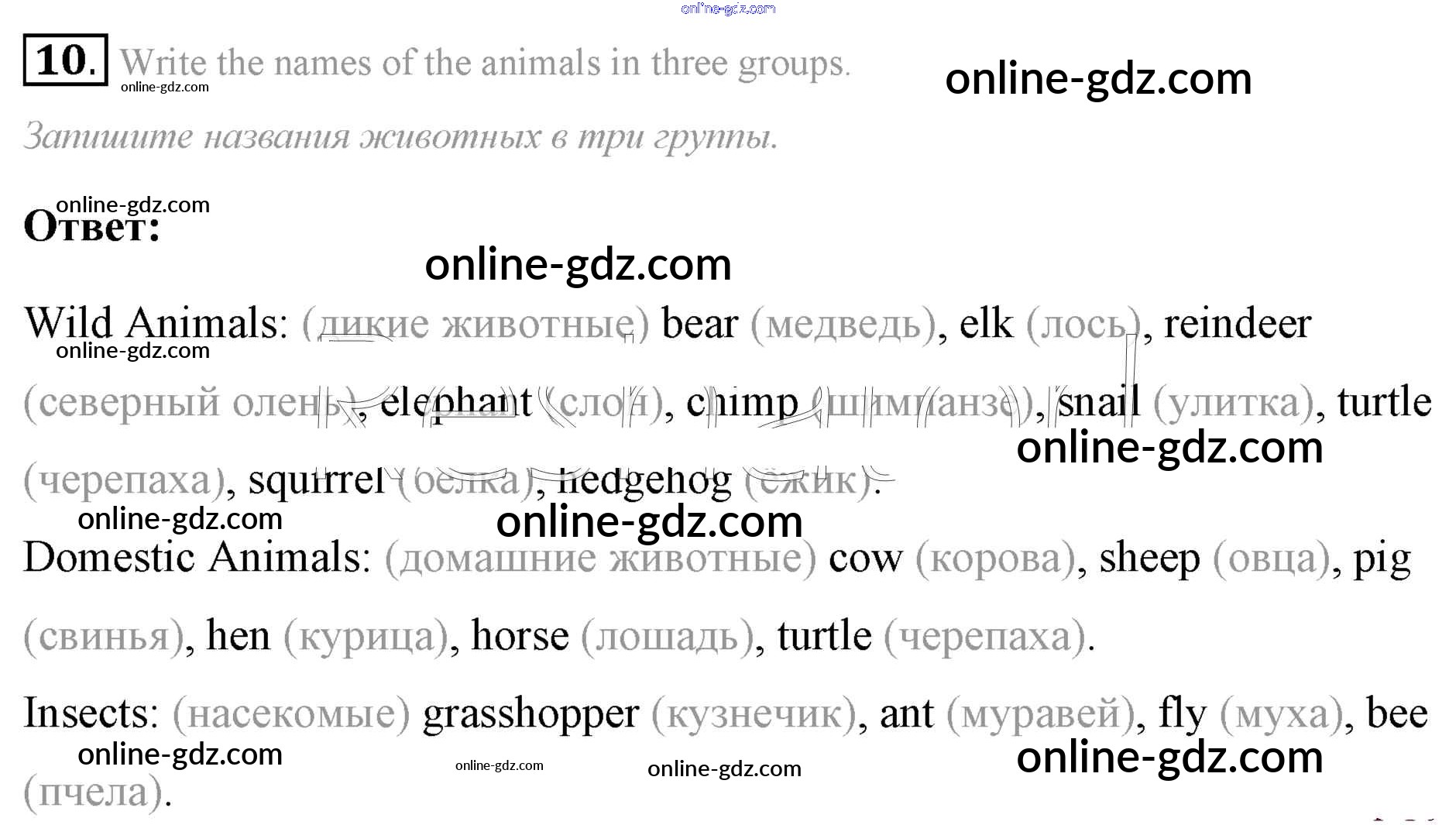 Готовые домашние задания по Английскому языку за 7 класс Учебник Афанасьева, Михеева Rainbow 2019 - Step 4 UNIT 4. LIVING THINGS AROUND US. 10