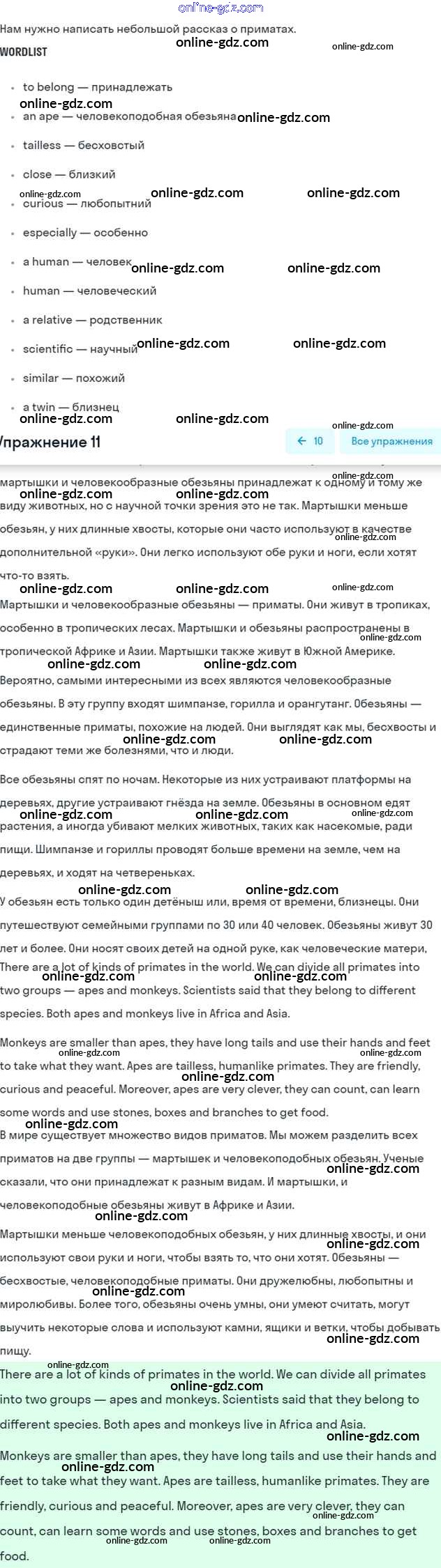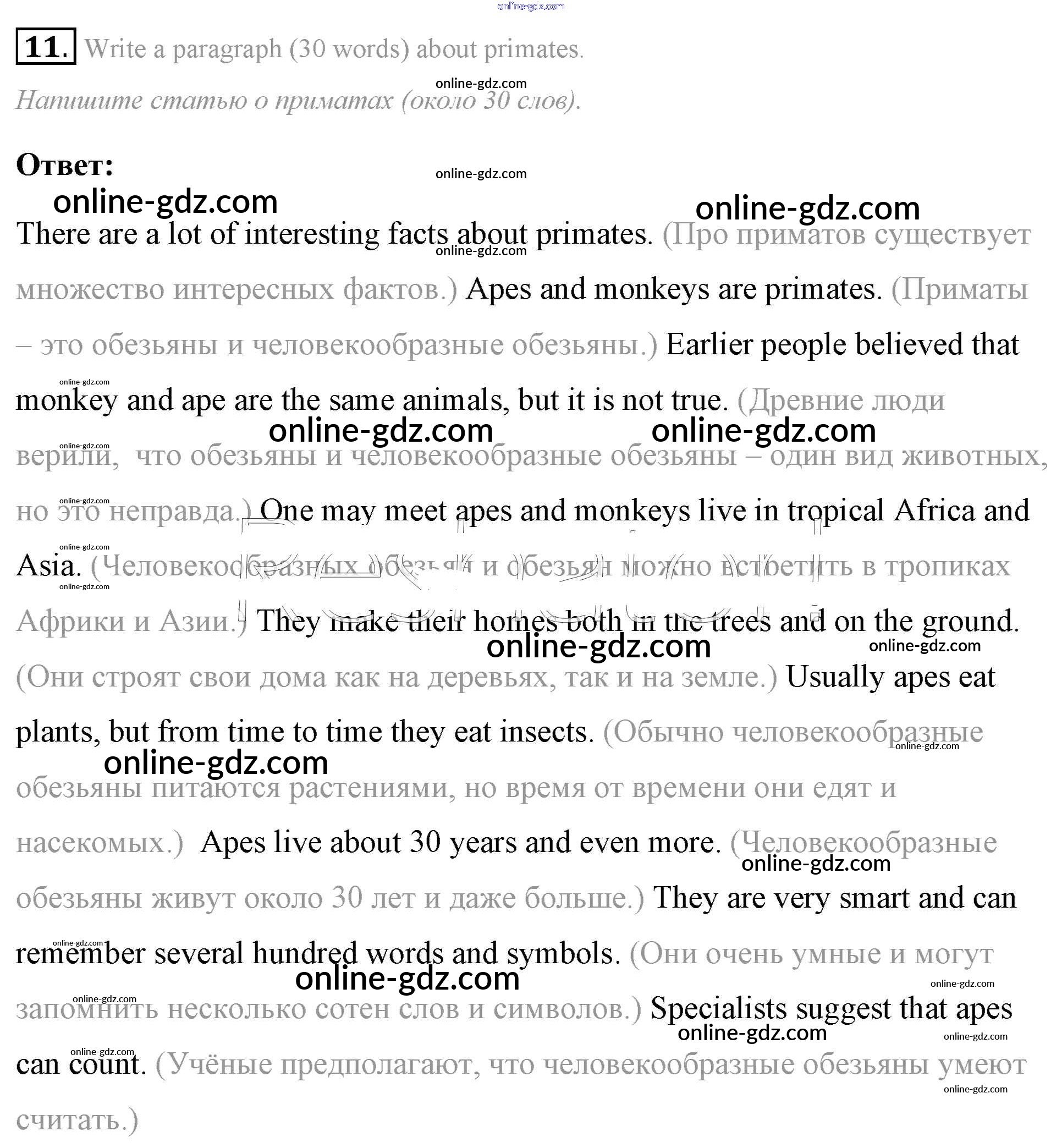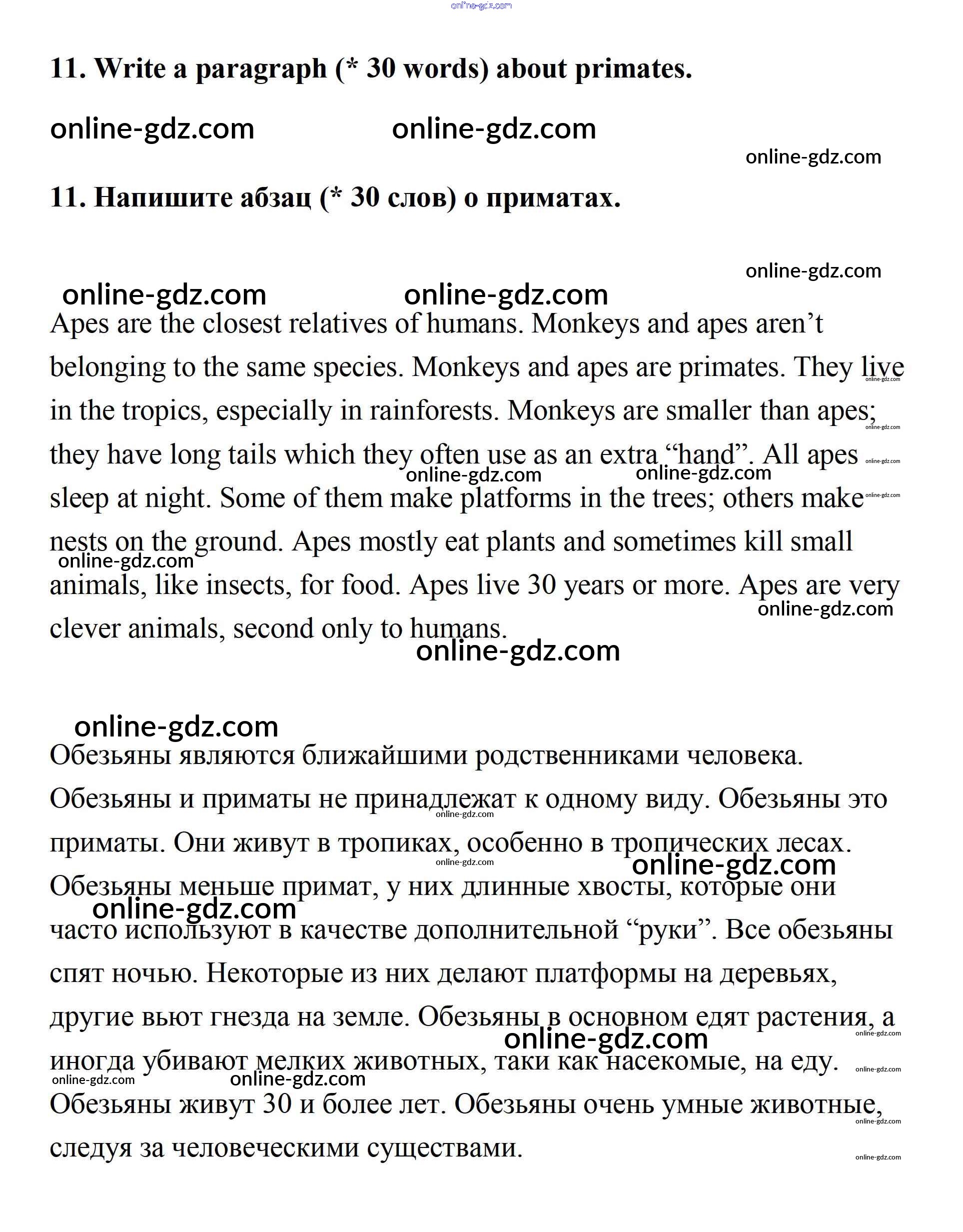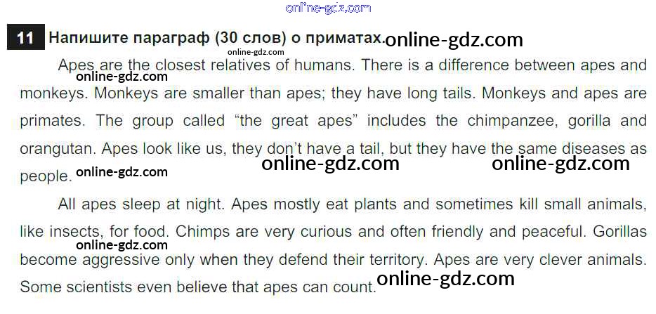 Готовые домашние задания по Английскому языку за 7 класс Учебник Афанасьева, Михеева Rainbow 2019 - Step 5 UNIT 4. LIVING THINGS AROUND US. 11