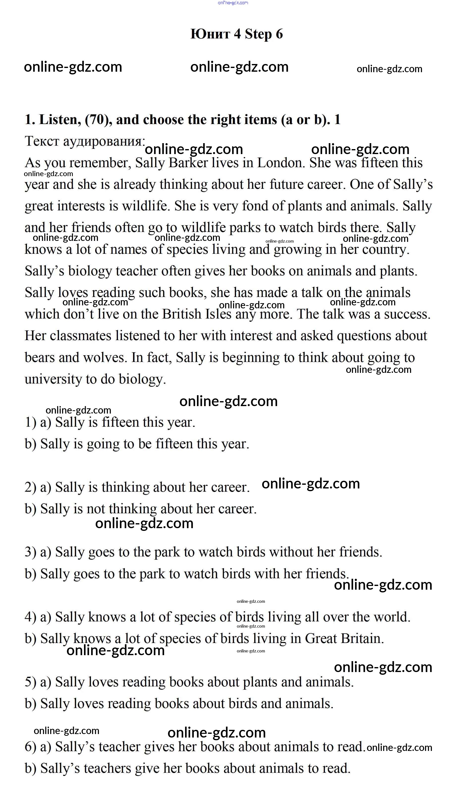 Готовые домашние задания по Английскому языку за 7 класс Учебник Афанасьева, Михеева Rainbow 2019 - Step 6 UNIT 4. LIVING THINGS AROUND US. 1