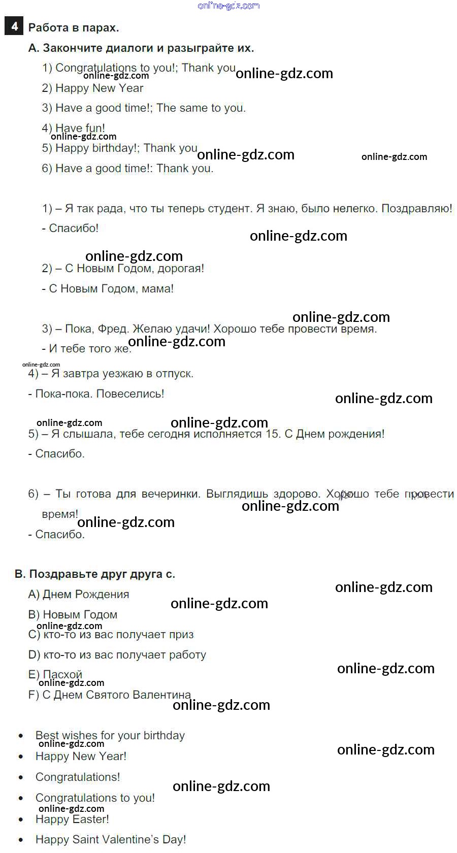 Готовые домашние задания по Английскому языку за 7 класс Учебник Афанасьева, Михеева Rainbow 2019 - Step 6 UNIT 4. LIVING THINGS AROUND US. 4