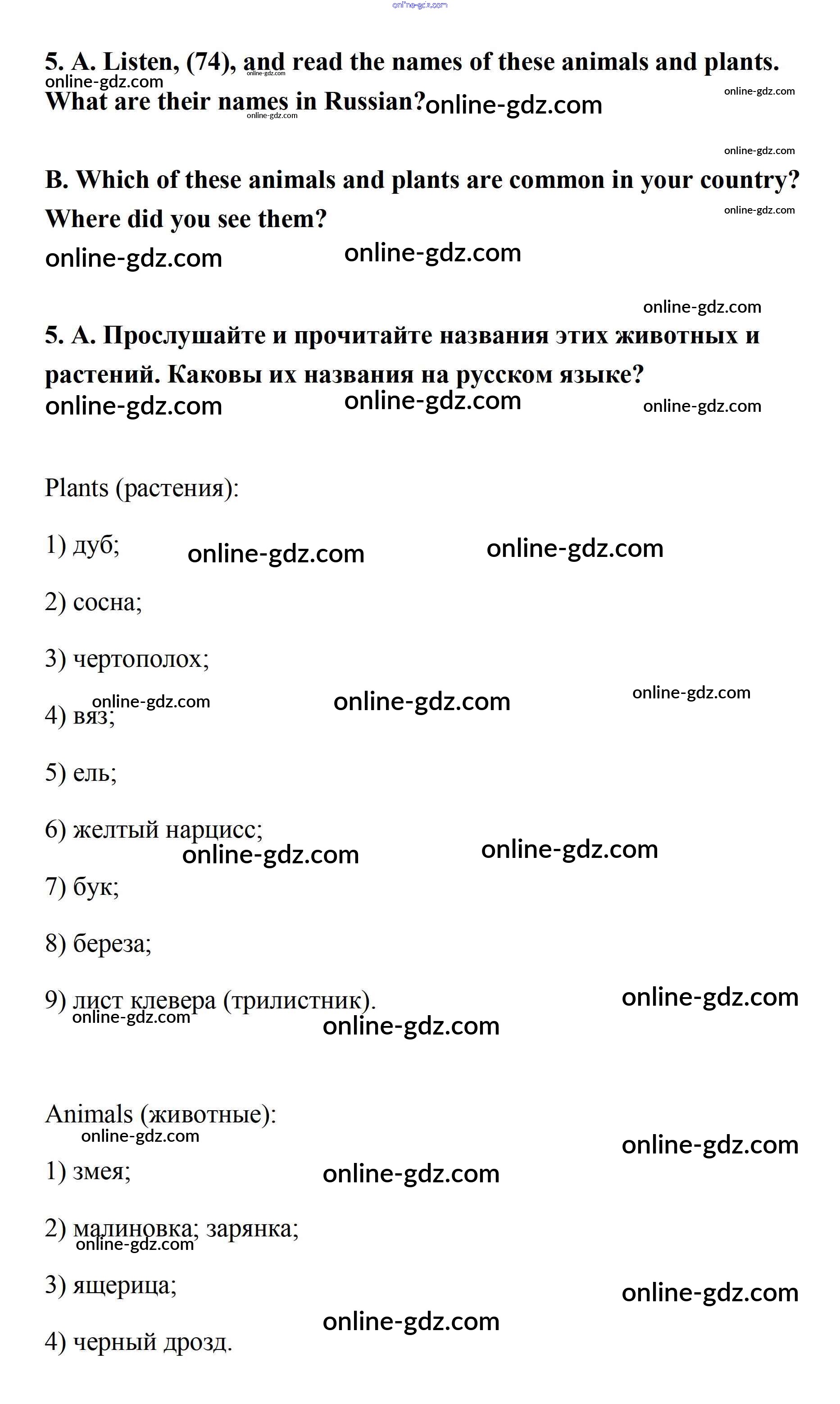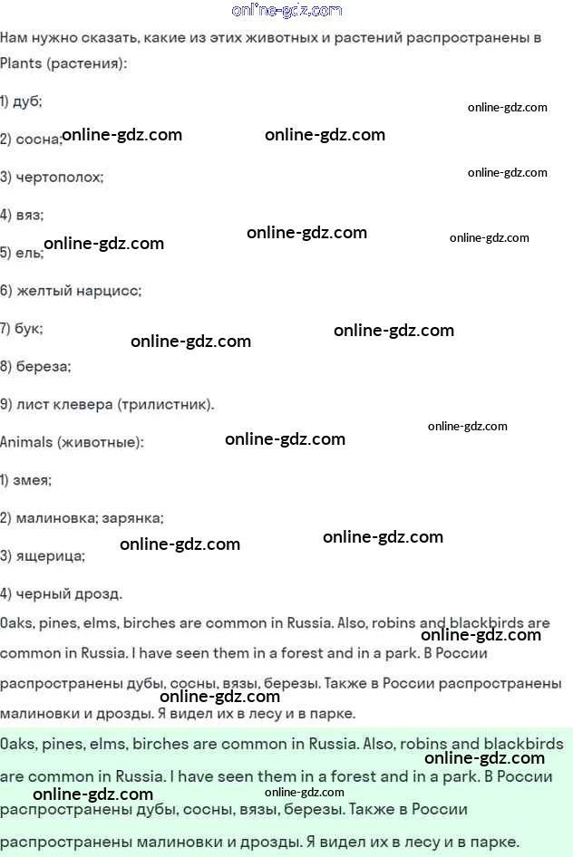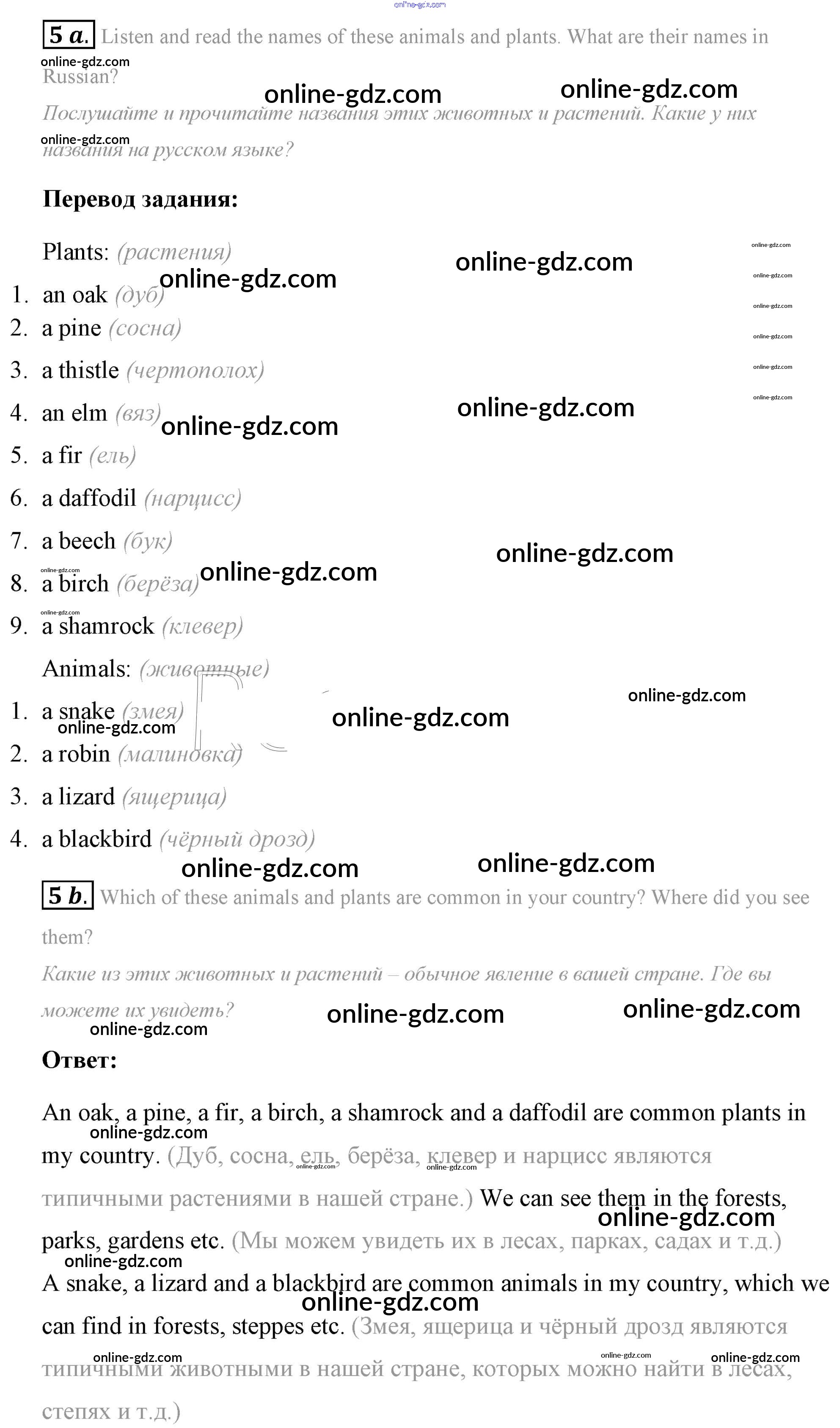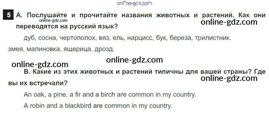 Готовые домашние задания по Английскому языку за 7 класс Учебник Афанасьева, Михеева Rainbow 2019 - Step 7 UNIT 4. LIVING THINGS AROUND US. 5