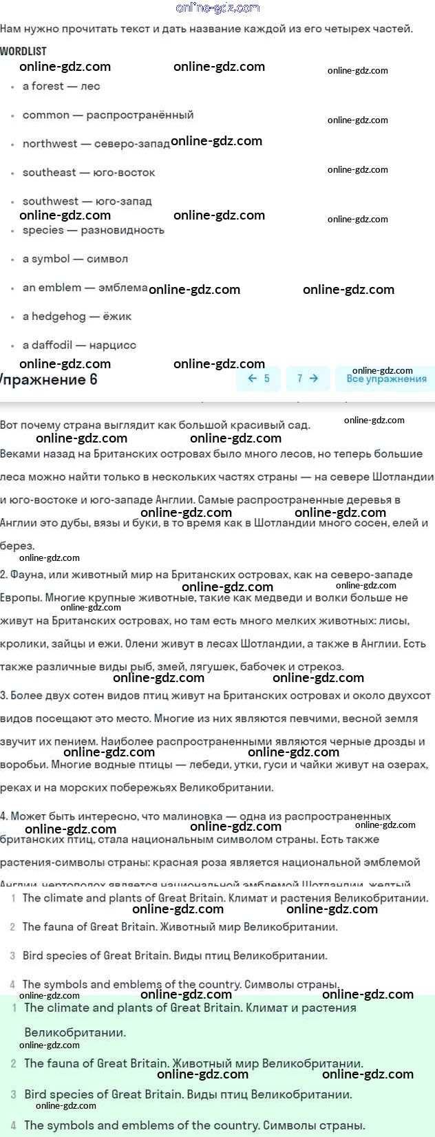 Готовые домашние задания по Английскому языку за 7 класс Учебник Афанасьева, Михеева Rainbow 2019 - Step 7 UNIT 4. LIVING THINGS AROUND US. 6