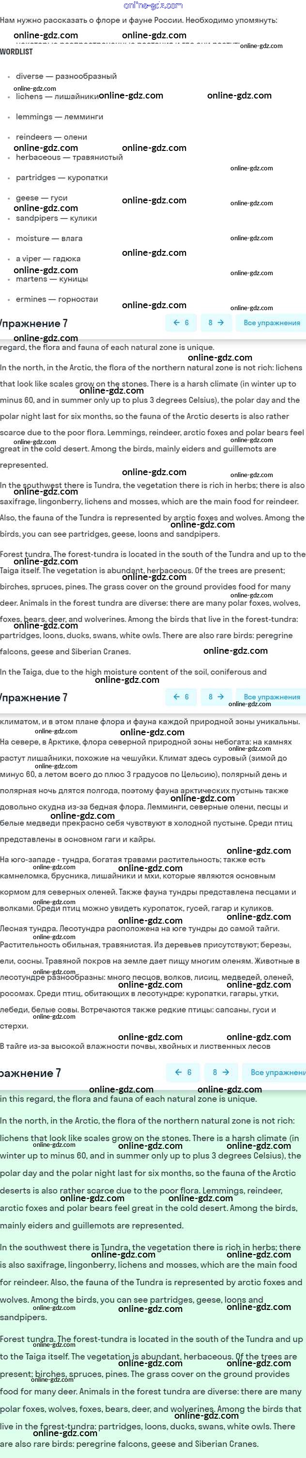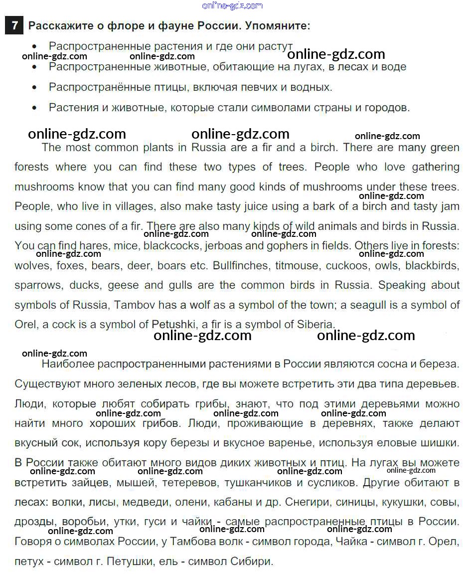 Готовые домашние задания по Английскому языку за 7 класс Учебник Афанасьева, Михеева Rainbow 2019 - Step 7 UNIT 4. LIVING THINGS AROUND US. 7