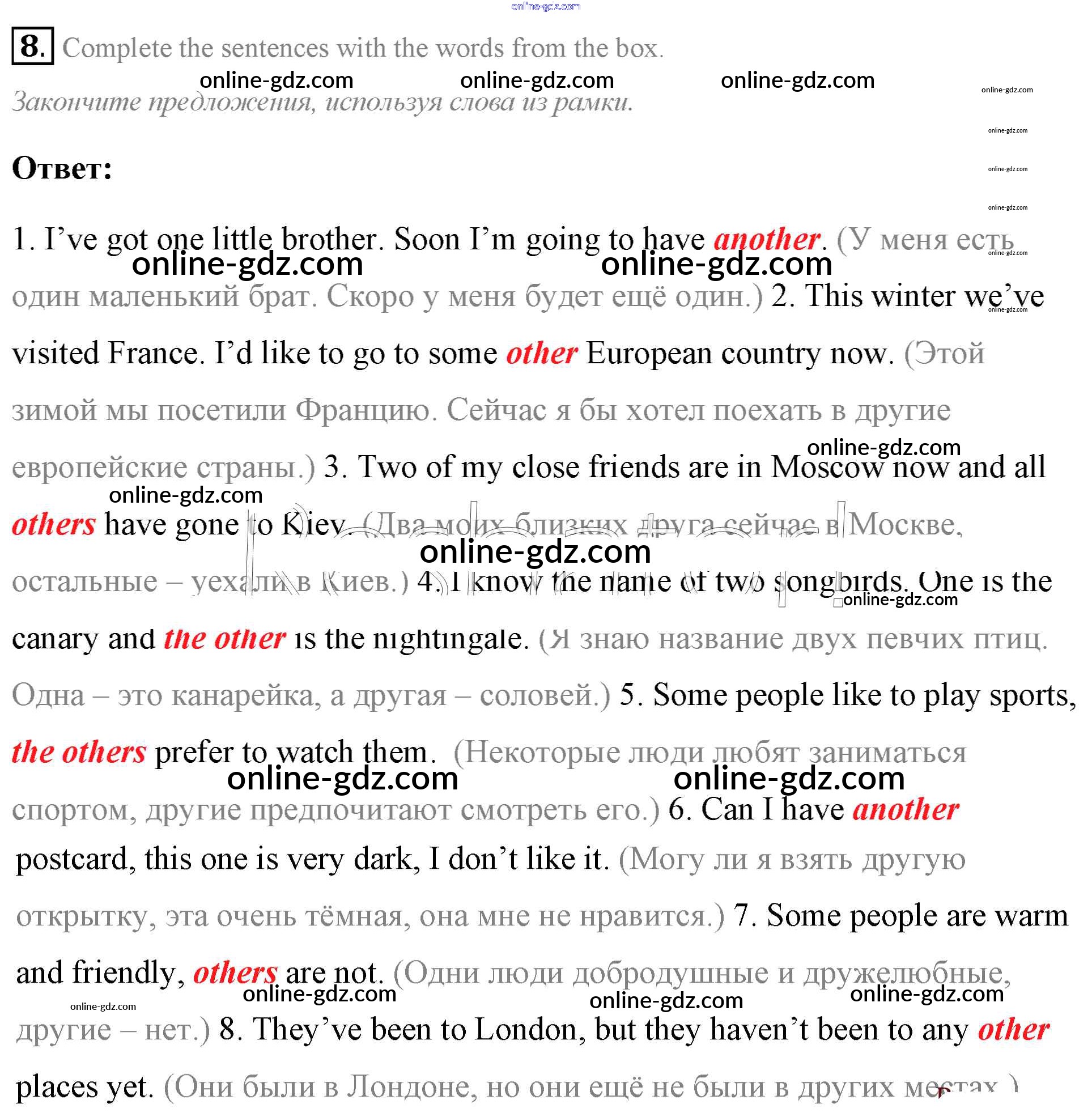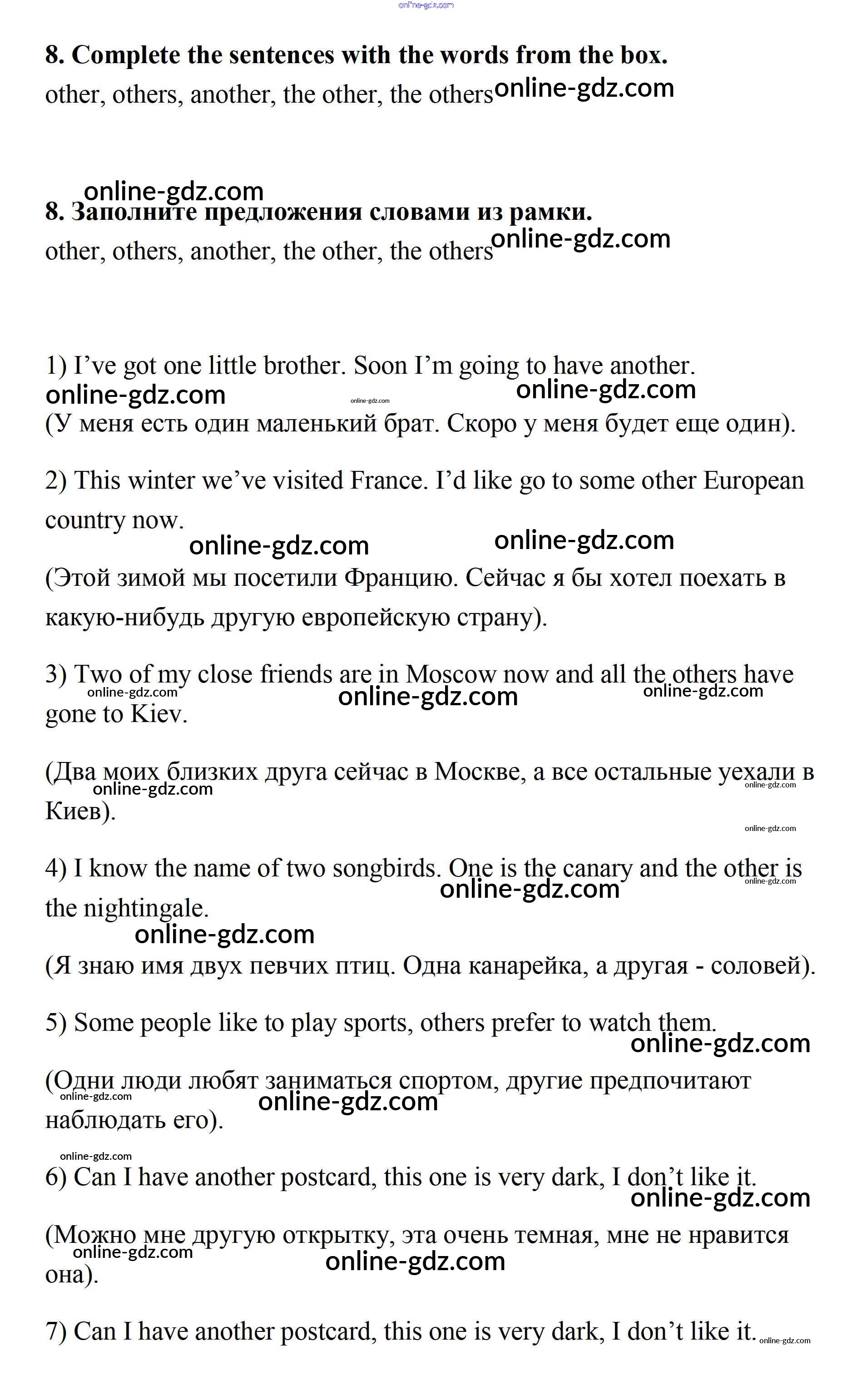 Готовые домашние задания по Английскому языку за 7 класс Учебник Афанасьева, Михеева Rainbow 2019 - Step 8 UNIT 4. LIVING THINGS AROUND US. 8
