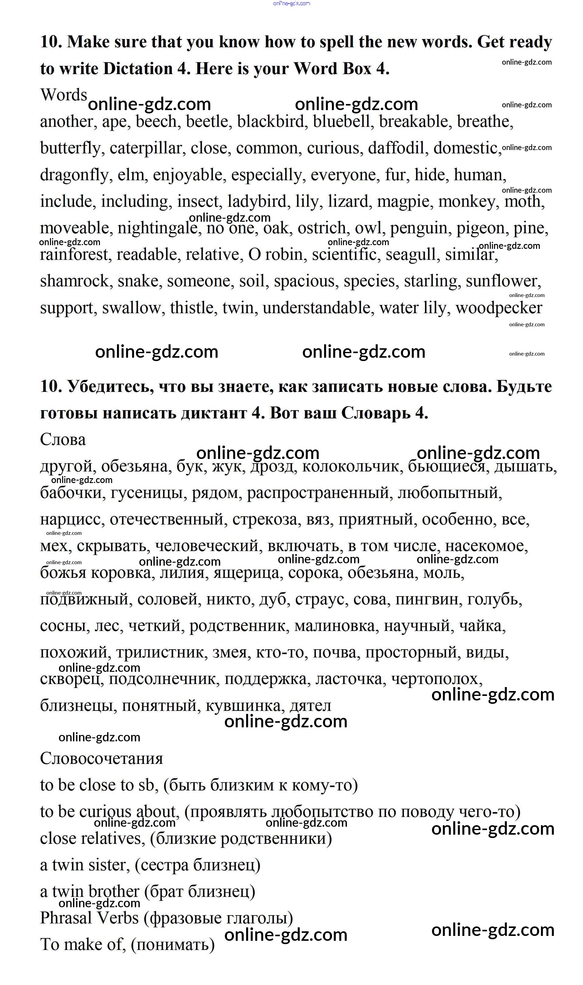 Готовые домашние задания по Английскому языку за 7 класс Учебник Афанасьева, Михеева Rainbow 2019 - Step 9 Consolidation Class: UNIT 4. LIVING THINGS AROUND US. 10